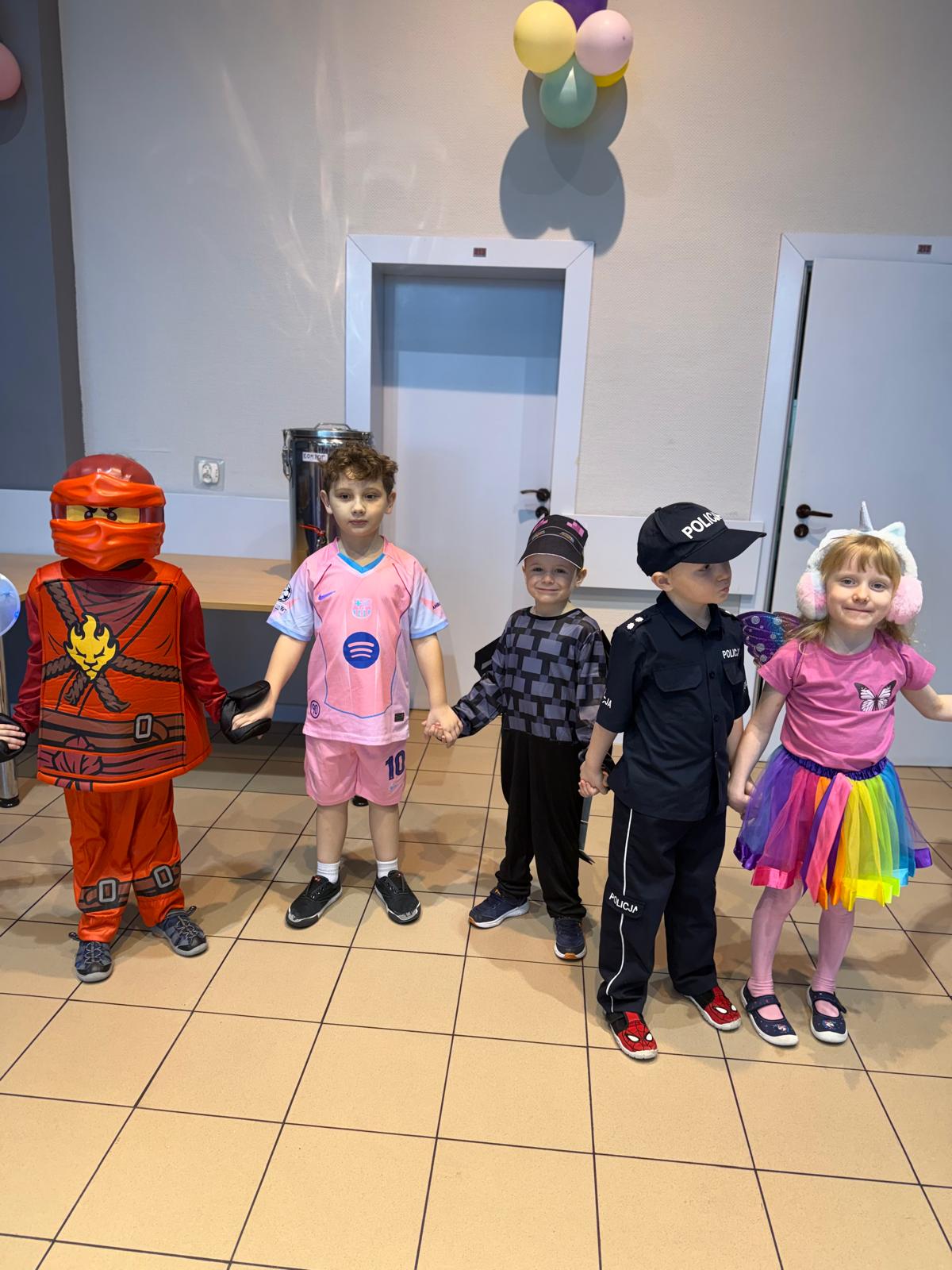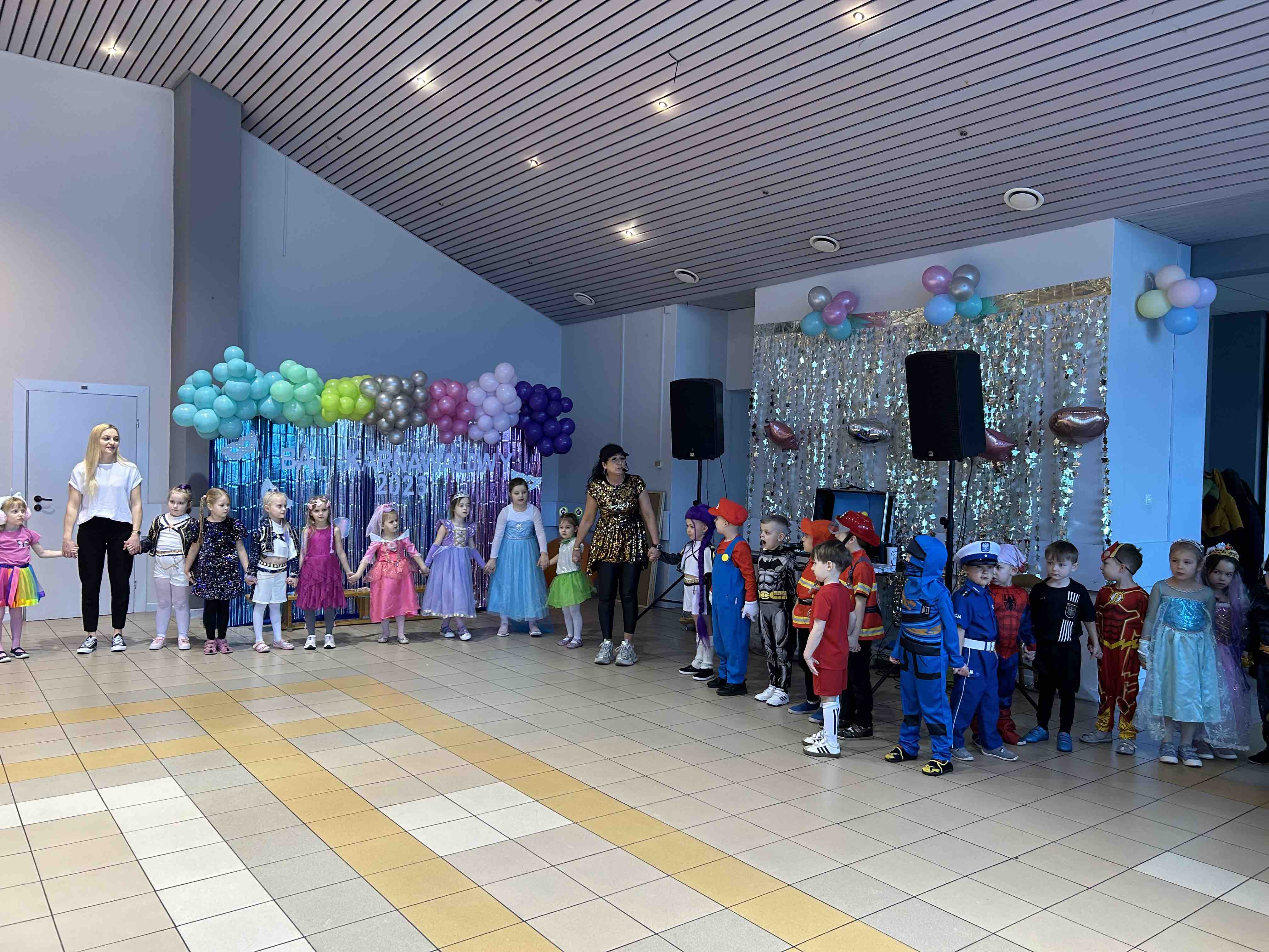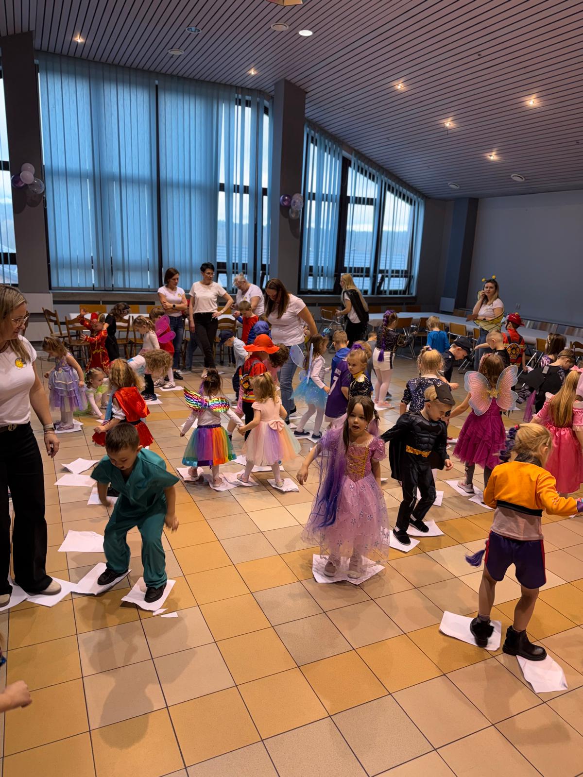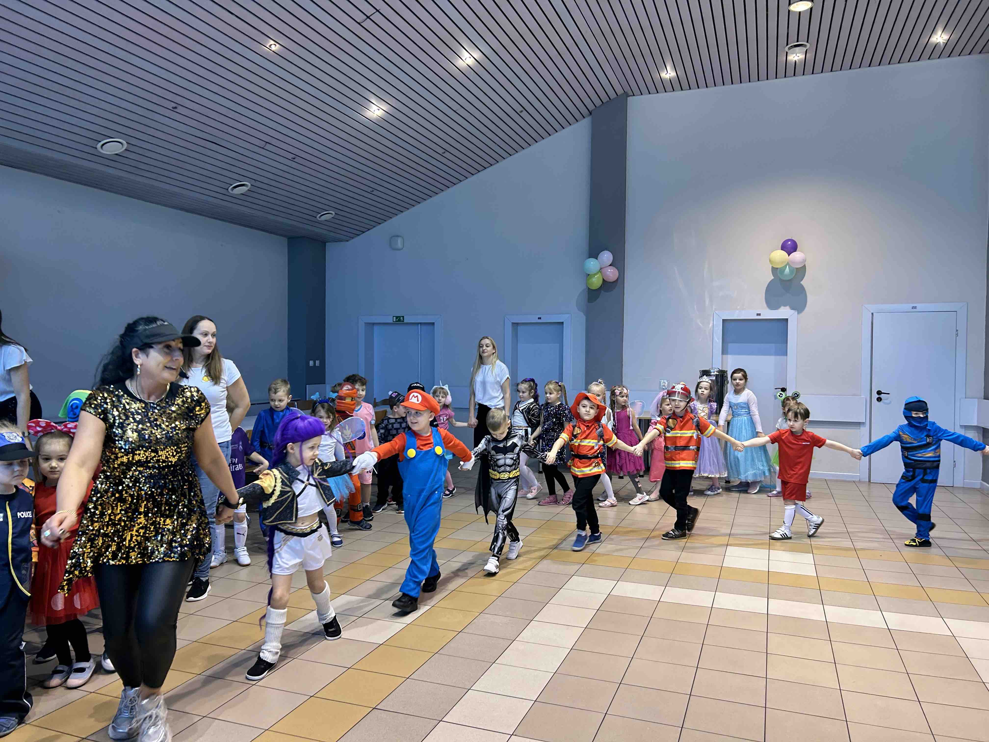 Na miejscu przedszkolaki przebrały się w swoje piękne stroje - można było spotkać księżniczki, super bohaterów, zwierzątka, policjantów, strażaków i wiele innych bajkowych postaci. Każde dziecko z dumą prezentowało swój kostium podczas wspólnych tańców i zabaw przy muzyce. O doskonałą zabawę zadbali profesjonalni animatorzy, którzy przygotowali mnóstwo konkursów, gier i tanecznych niespodzianek. Były wspólne pląsy, zabawy ruchowe, a także wesołe wyzwania, które wywołały dużo śmiechu. Ogromną atrakcją balu była wizyta gości - wesołego Bałwanka oraz sympatycznej Pandy. Maskotki wspólnie z dziećmi tańczyły, przytulały się i pozowały do pamiątkowych zdjęć.