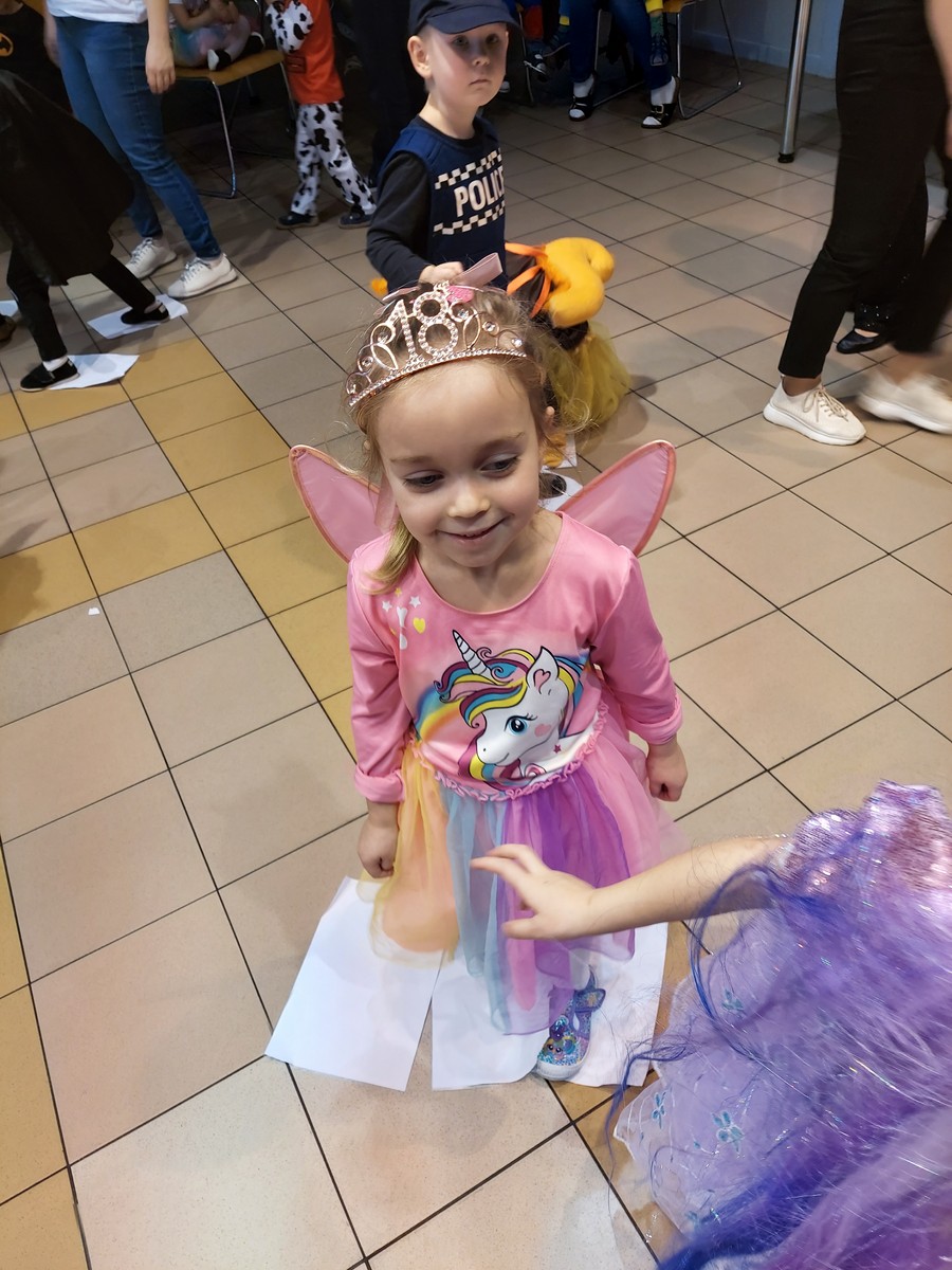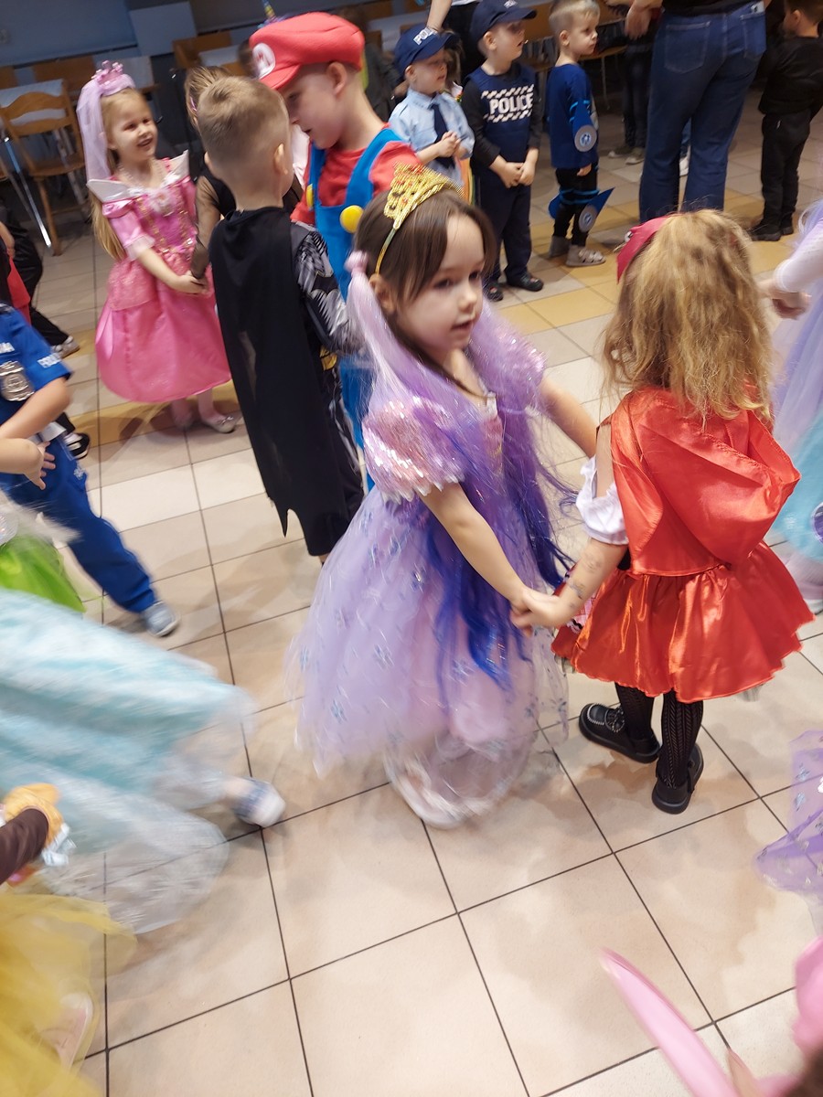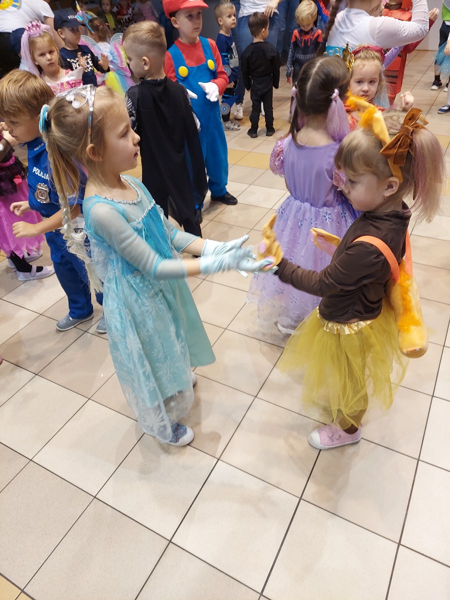 Czterolatki świetnie się bawiły i uczestniczyły we wspólnych zabawach organizowanych przez grupę Rytmiks, a skoczna i rytmiczna muzyka zachęcała do tańca. Wszystkim towarzyszył uśmiech na twarzy, a kiedy czas zabawy dobiegł końca dzieci z żalem opuszczały salę balową. Tego dnia nie mogło się obyć bez słodkiego i owocowego poczęstunku oraz pamiątkowych zdjęć.