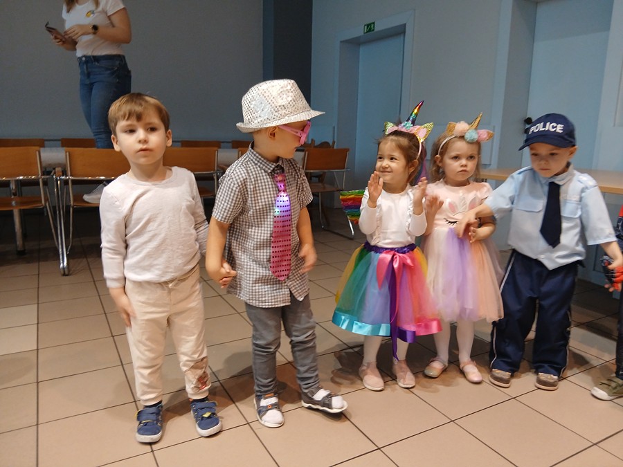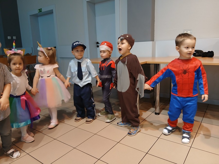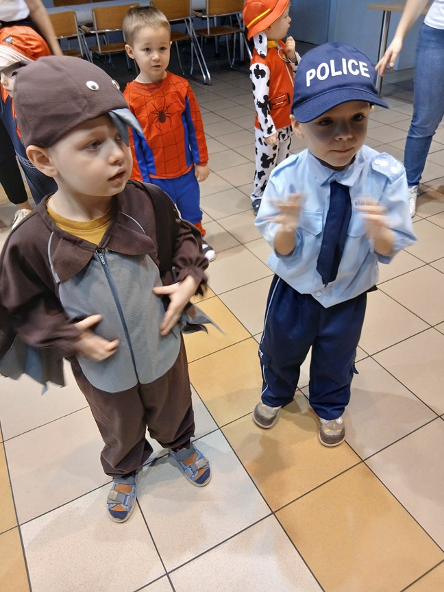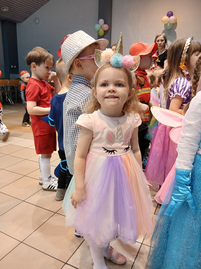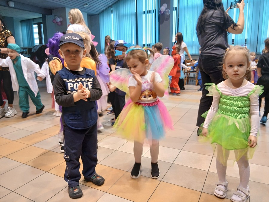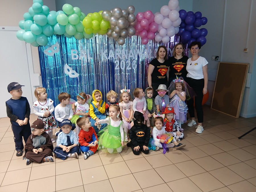 Bal karnawałowy w grupie 3-latków był radosnym i kolorowym wydarzeniem. Dzieci przyszły ubrane w barwne stroje – były księżniczki, zwierzątka, superbohaterowie i postacie z bajek. Już od rana na twarzach maluchów widać było uśmiech i ogromne podekscytowanie.