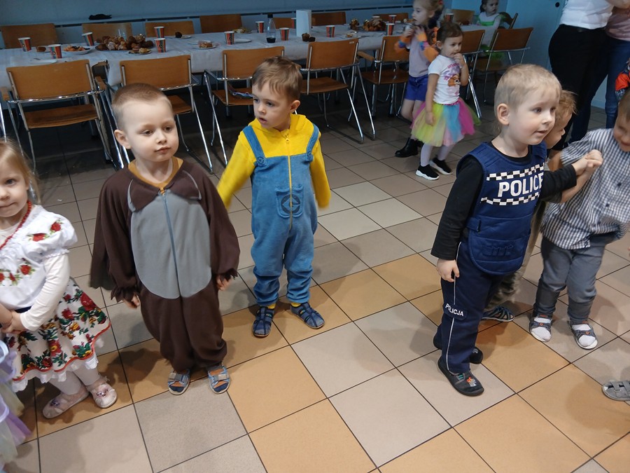 Podczas balu dzieci bawiły się przy wesołej muzyce, tańczyły, klaskały i brały udział w prostych zabawach ruchowych. Nie zabrakło chwili na odpoczynek i mały poczęstunek.