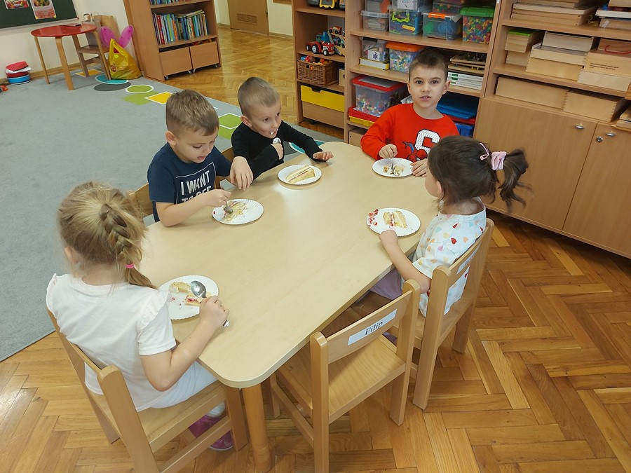 Na zakończenie tego magicznego wydarzenia przedszkolaki zajadały się pysznym tortem przygotowanym przez Radę Rodziców.