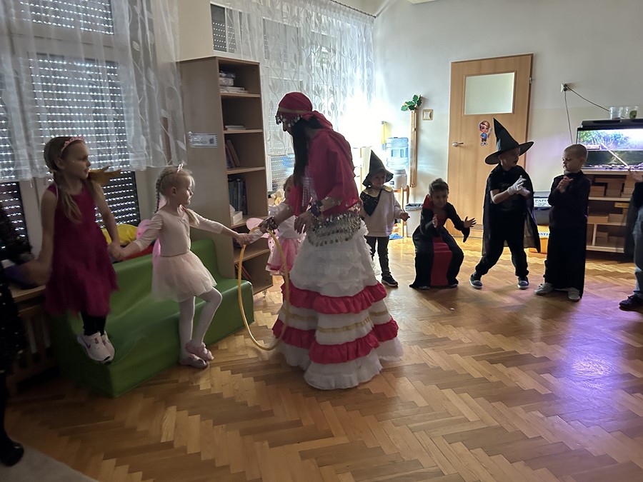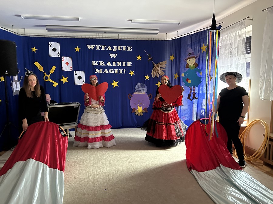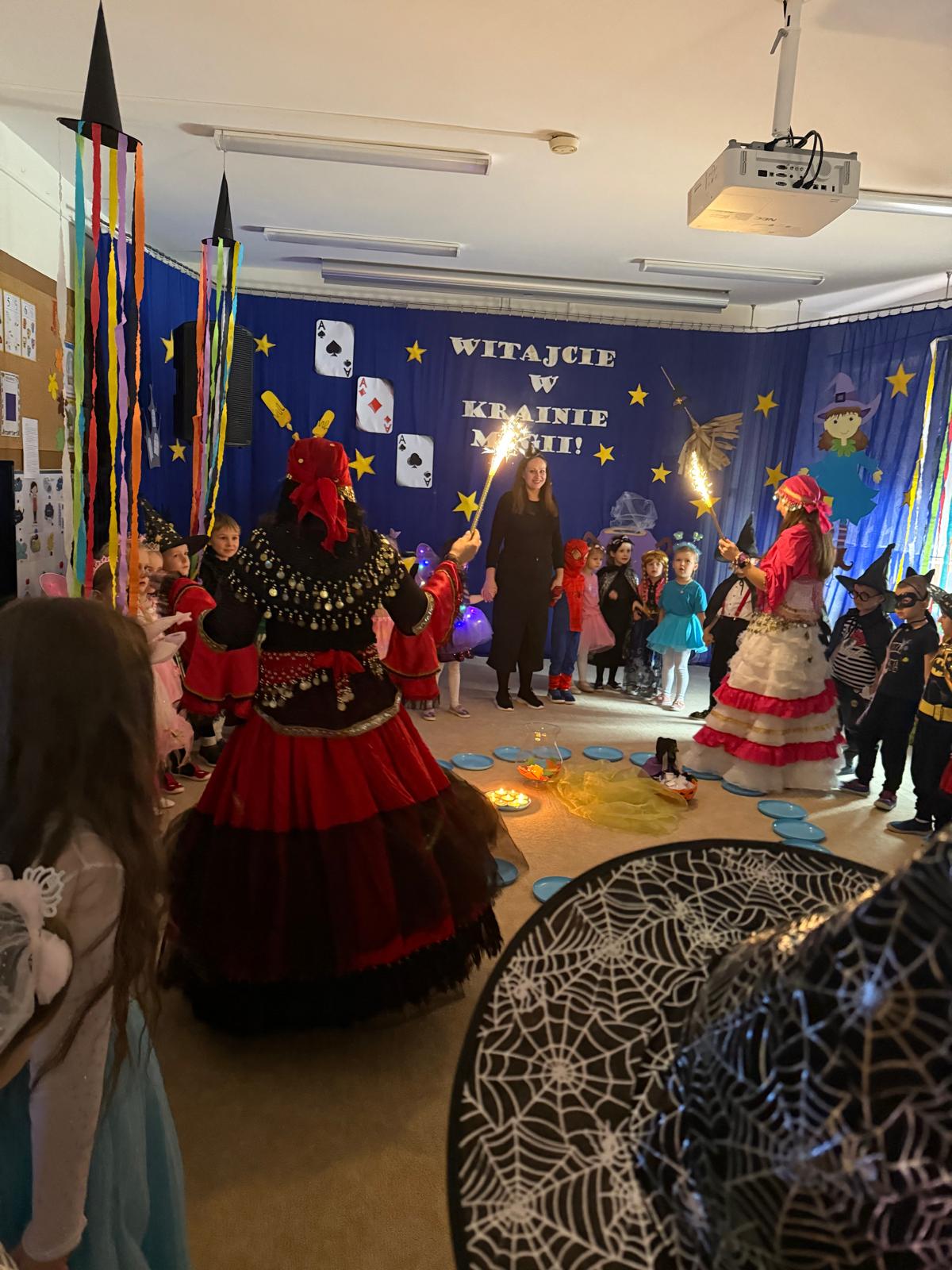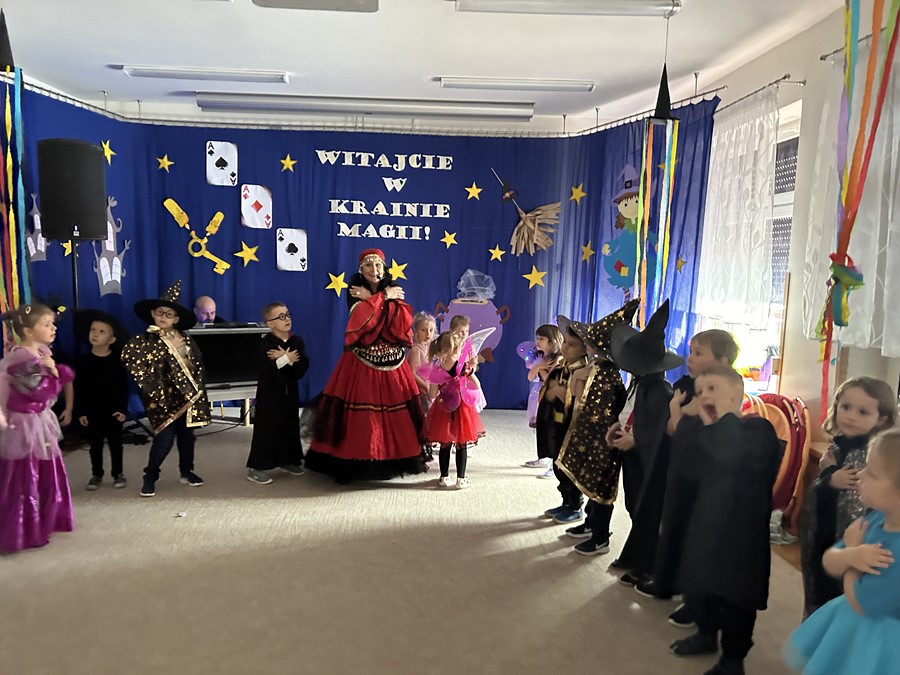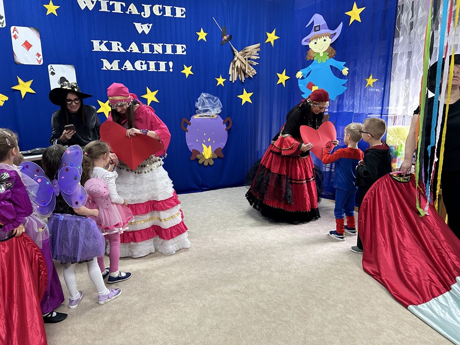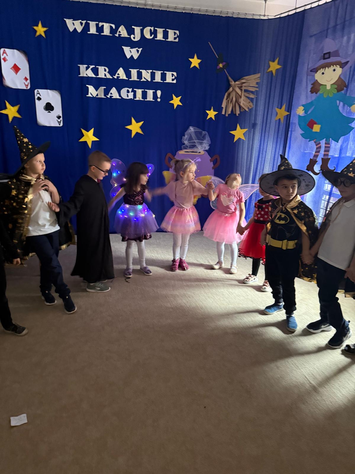 Tego dnia odbył się niezwykły bal wróżek i czarodziei, na którym pojawiły się bajkowe postacie: migoczące wróżki, tajemniczy czarodzieje oraz wiele innych fantastycznych bohaterów. Kolorowe stroje, błyszczące rekwizyty i radosny nastrój sprawiły, że sala wyglądała jak zaczarowana. Zabawę poprowadzili pełni energii amatorzy z grupy Rytmiks, którzy przenieśli dzieci w świat tańca, czarów i radosnych wróżb.