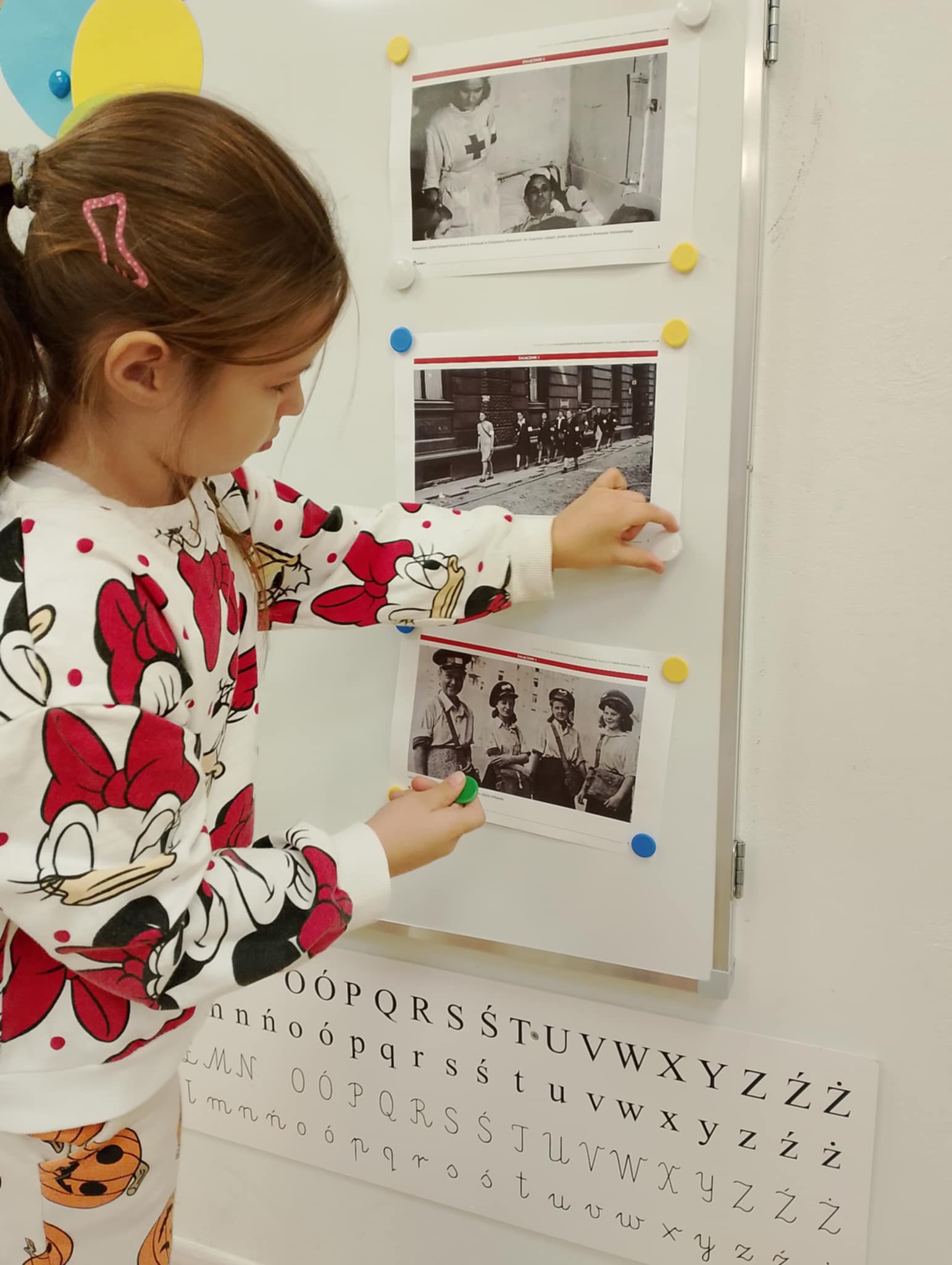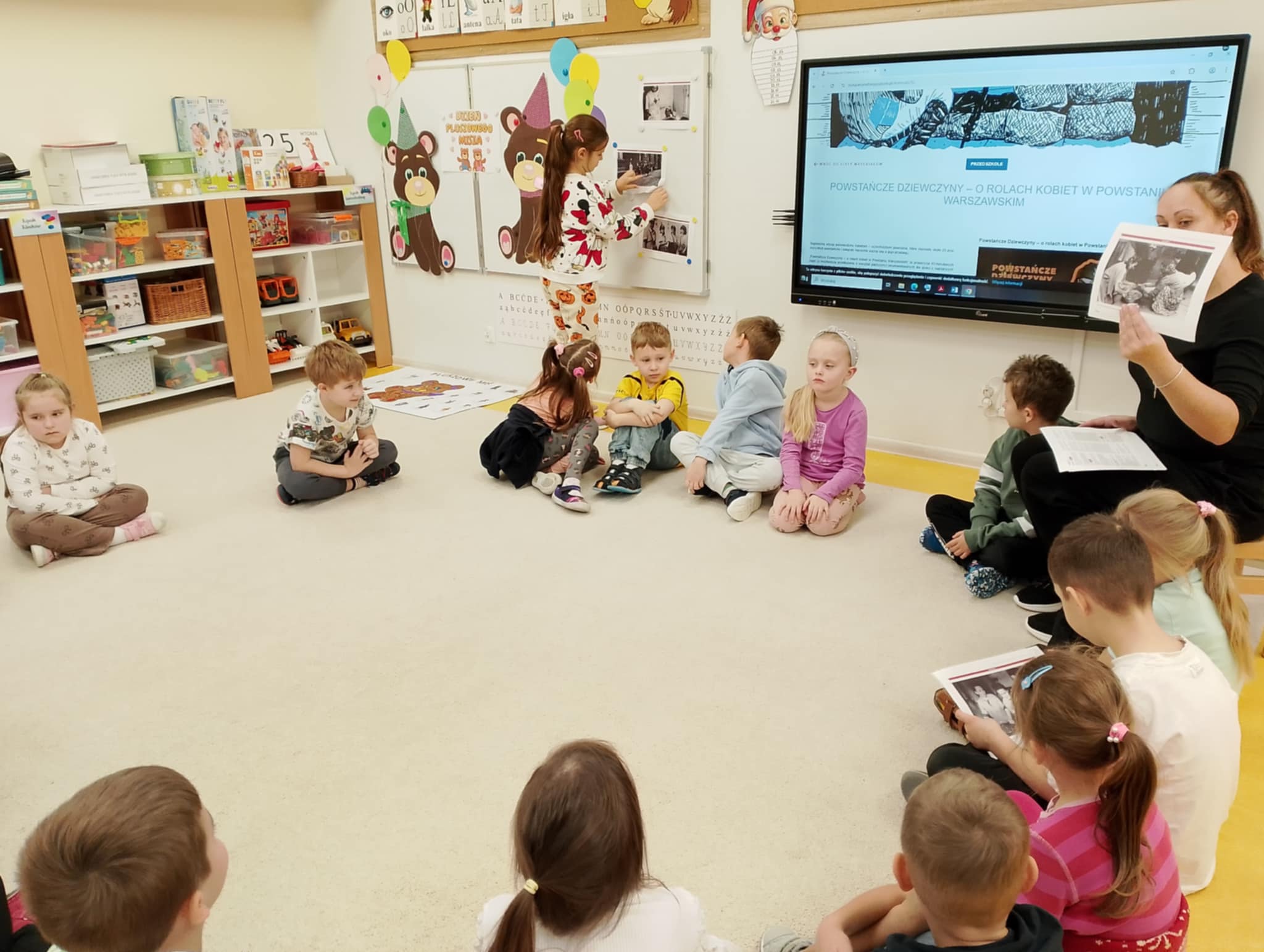 Podczas zajęć przedszkolaki poznały różnorodne zadania, jakie wykonywały kobiety w czasie powstania – od sanitariuszek i łączniczek po kurierki. Dowiedziały się także, jak wyglądały ich stroje oraz z jakimi trudnościami mierzyły się na co dzień. Dzieci obejrzały film edukacyjny i archiwalne fotografie z tamtego okresu, dzięki czemu mogły lepiej zrozumieć realia życia powstańców. W ramach zajęć wykonały również karty pracy, które pomogły im utrwalić zdobytą wiedzę.
