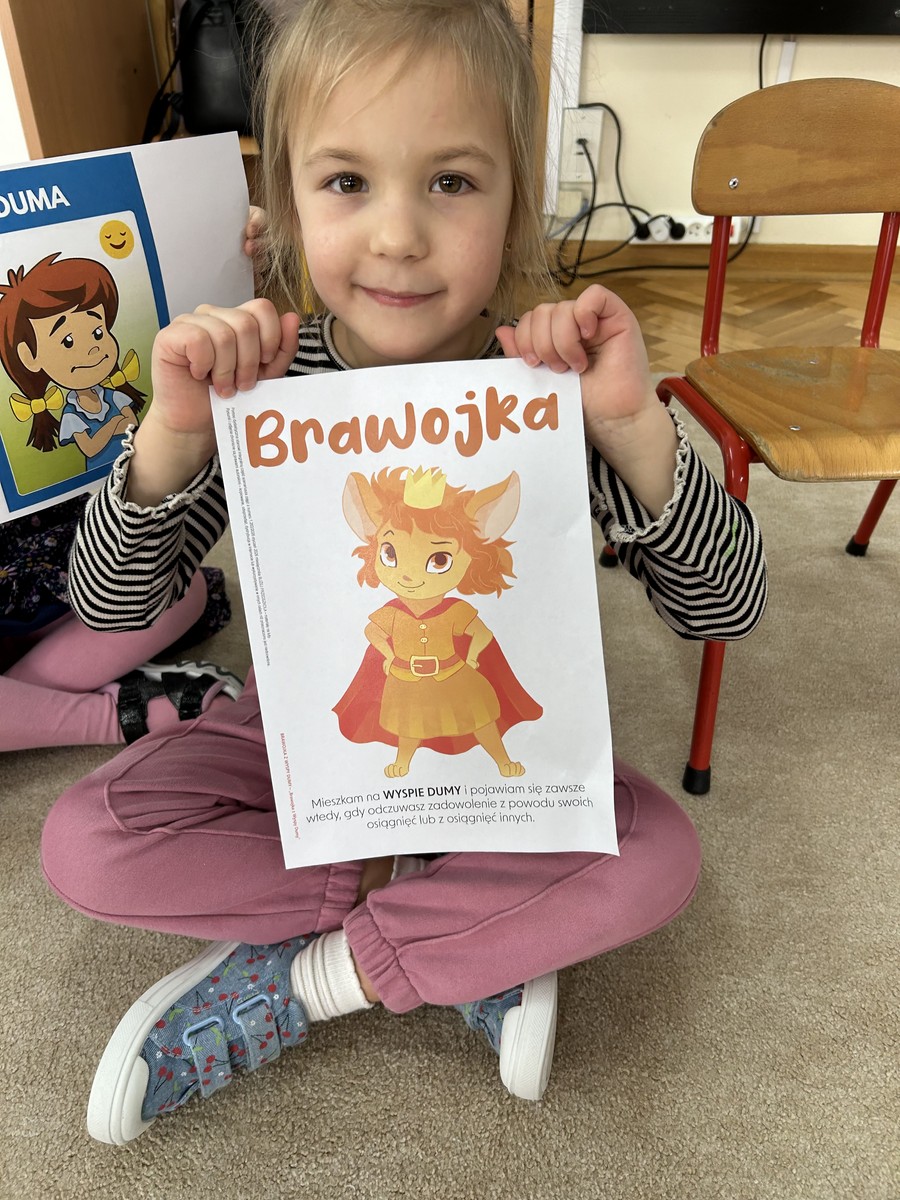 Kolejnym Czuciakiem jakiego poznały dzieci z grupy II była Brawojka, która uczy rozpoznawania i radzenia sobie z emocją dumy oraz budowania poczucia własnej wartości. Po wysłuchaniu opowiadania dzieci rozmawiały o tym, czym jest duma. Na podstawie tego opowiadania dowiedziały się, jak chwalić siebie i innych – nawet za najmniejsze osiągnięcia. Każde dziecko miało okazję zaprezentować swój talent przed grupą, wzmacniając wiarę w siebie.