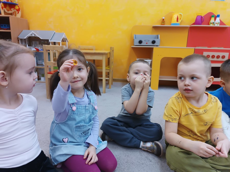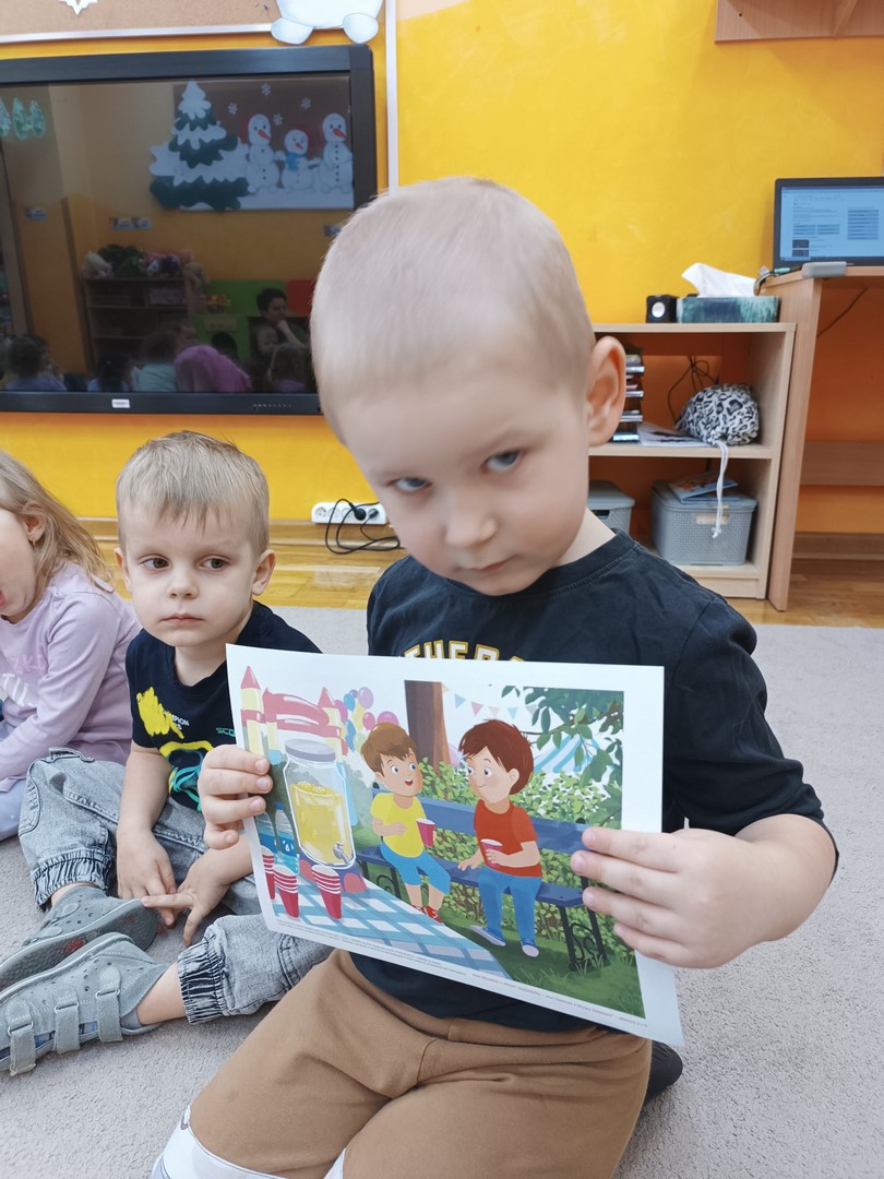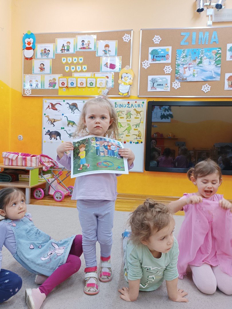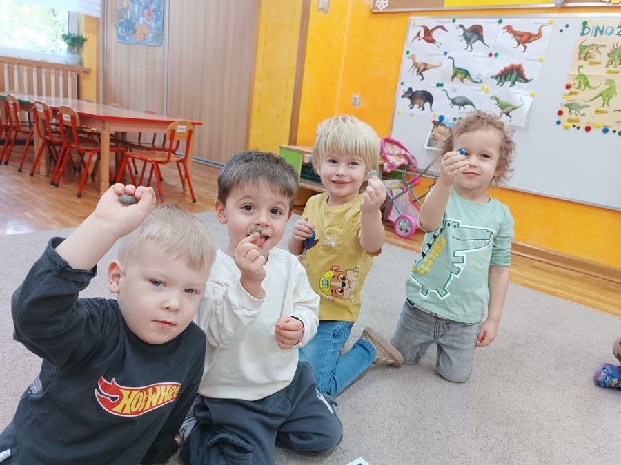 Dzieci wysłuchały opowiadania o panu Zielonku i jego przeżyciach. Następnie brały udział w zabawach ruchowych, podczas których w bezpieczny i twórczy sposób mogły zaprezentować emocję zazdrości poprzez gest, ruch i mimikę. W dalszej części zajęć dzieci losowały swój „wymarzony kamyczek”. Każde dziecko miało możliwość powiedzieć, jak się w danym momencie czuje i podzielić się swoimi przemyśleniami.