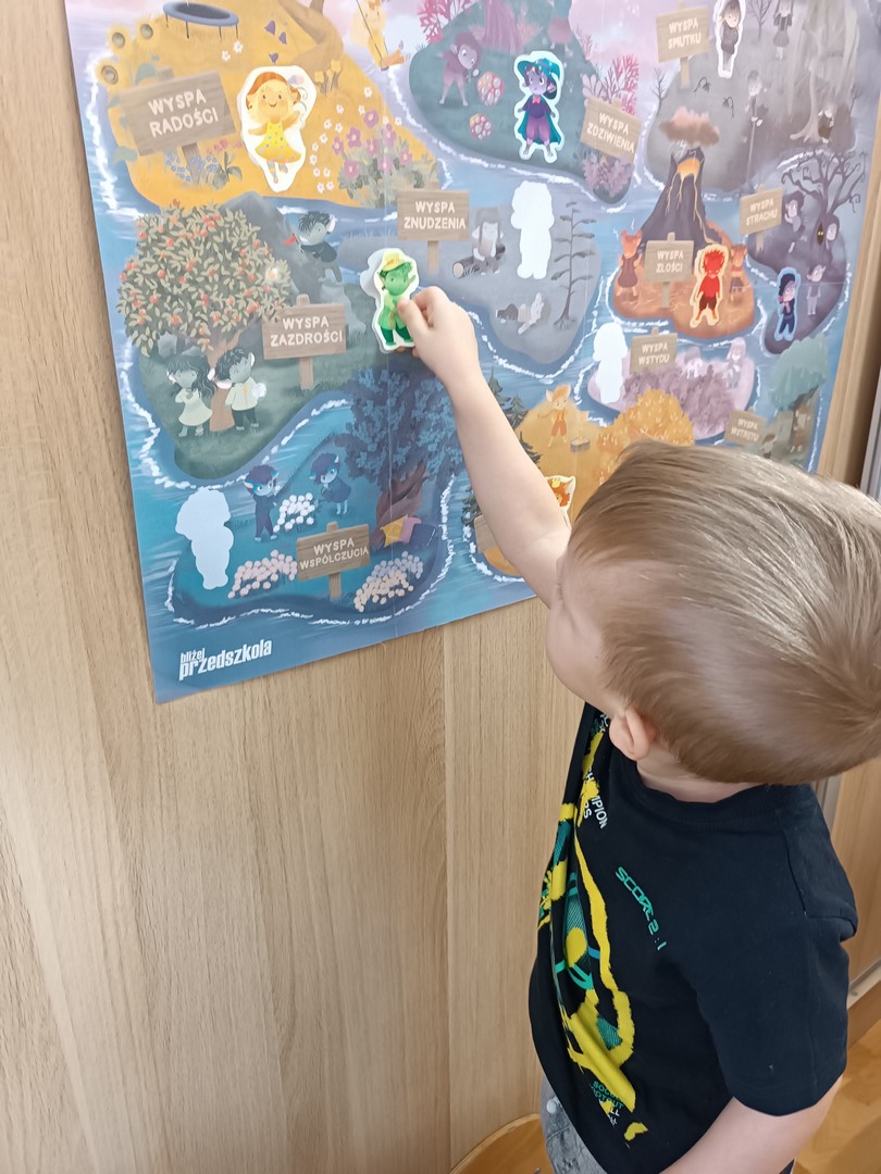 Wyspa ta jest miejscem, gdzie czasem pojawia się uczucie zazdrości – wtedy, gdy ktoś ma coś, czego my bardzo pragniemy, gdy ktoś wygra zawody albo otrzyma pochwałę. Rozmawialiśmy o tym, że zazdrość jest naturalnym uczuciem i każdy może ją odczuwać, jednak ważne jest, aby umieć ją rozpoznać i właściwie wyrazić.