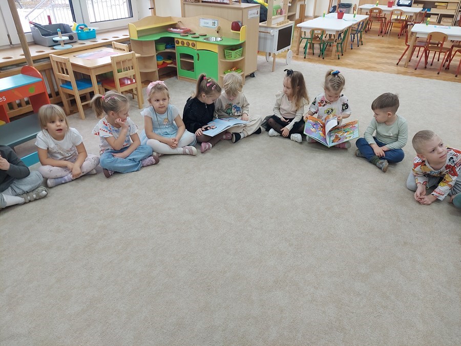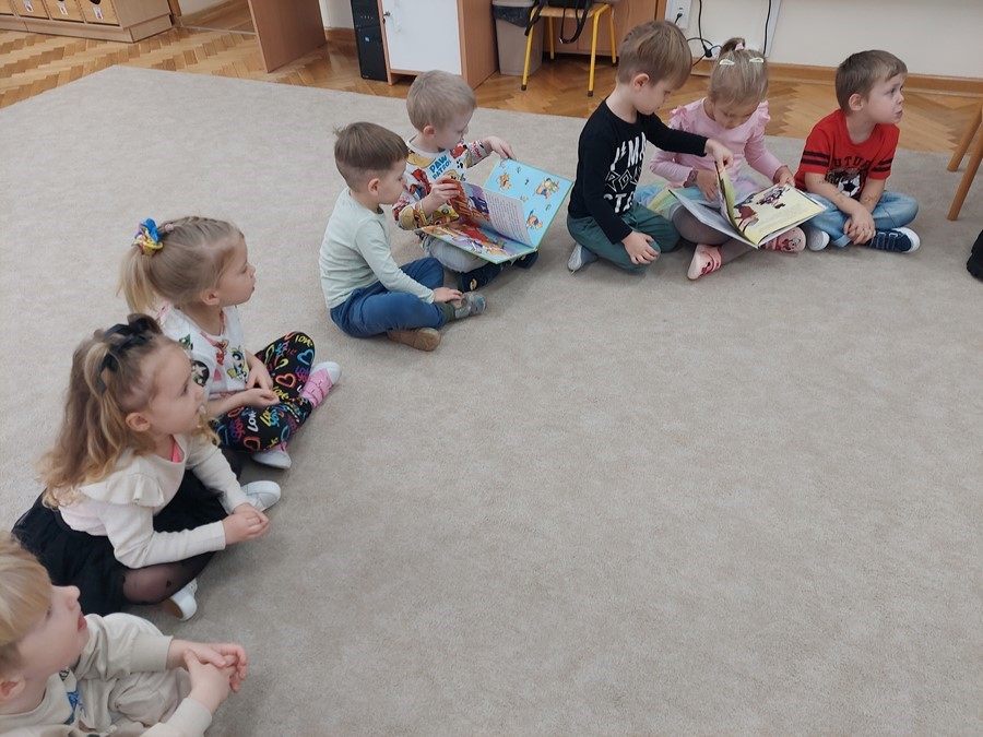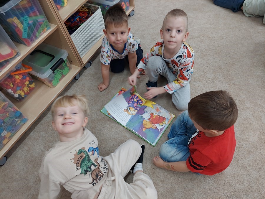 Czterolatki miały również okazje do obejrzenia książek przyniesionych przez panią Paulinę ze swojej biblioteki. Była to doskonała okazja, aby poznając ciekawą historię i dyskutując o książce, miło spędzić czas. Czekamy z niecierpliwią na kolejne spotkanie.