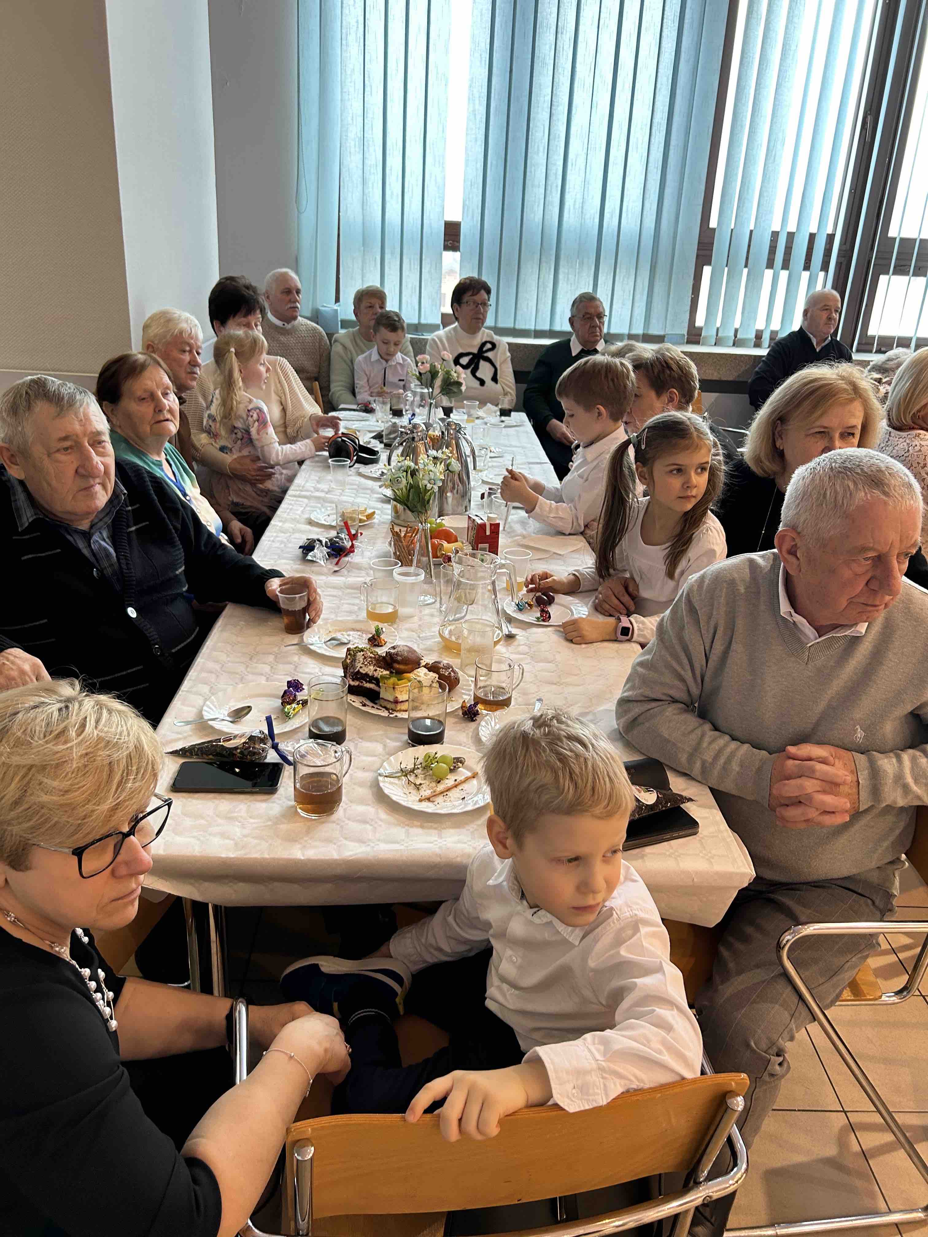 Po części artystycznej przyszedł czas na wspólne świętowanie. Na gości czekał słodki poczęstunek, przy którym można było porozmawiać, odpocząć i nacieszyć się obecnością najbliższych. Dzieci z dumą prezentowały swoje prace, rekwizyty i stroje, a Babcie i Dziadkowie z radością fotografowali każdą chwilę, tworząc wspomnienia, które zostaną z nimi na długo.