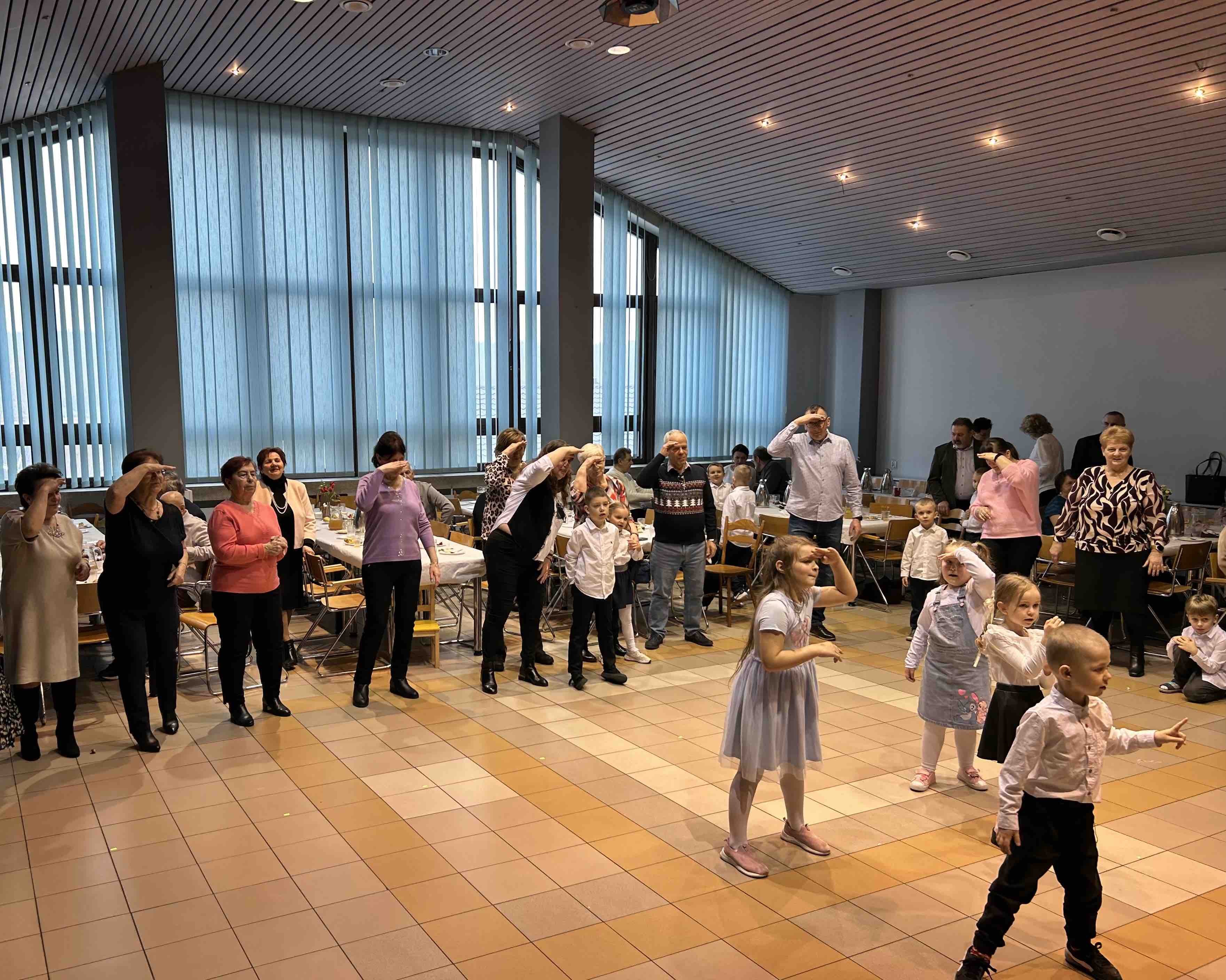 Zwieńczeniem uroczystości była pełna energii zabawa z DJ Pająkiem, który porwał wszystkich do tańca. Atmosferę dodatkowo podkreślała muzyka grana na żywo na akordeonie i gitarze, dzięki czemu sala wypełniła się śpiewem, rytmem i spontaniczną radością. Wspólne tańce, zabawy i śmiech sprawiły, że ten dzień stał się prawdziwym świętem rodzinnej bliskości - takim, które pamięta się z ciepłem w sercu.