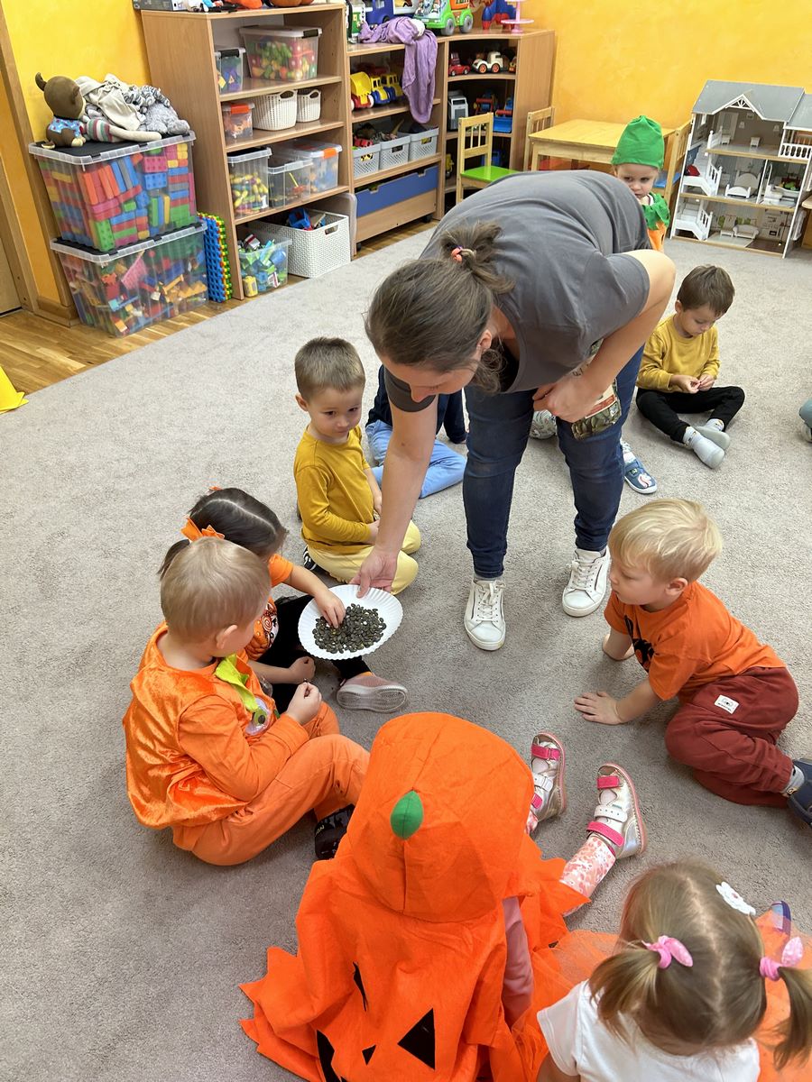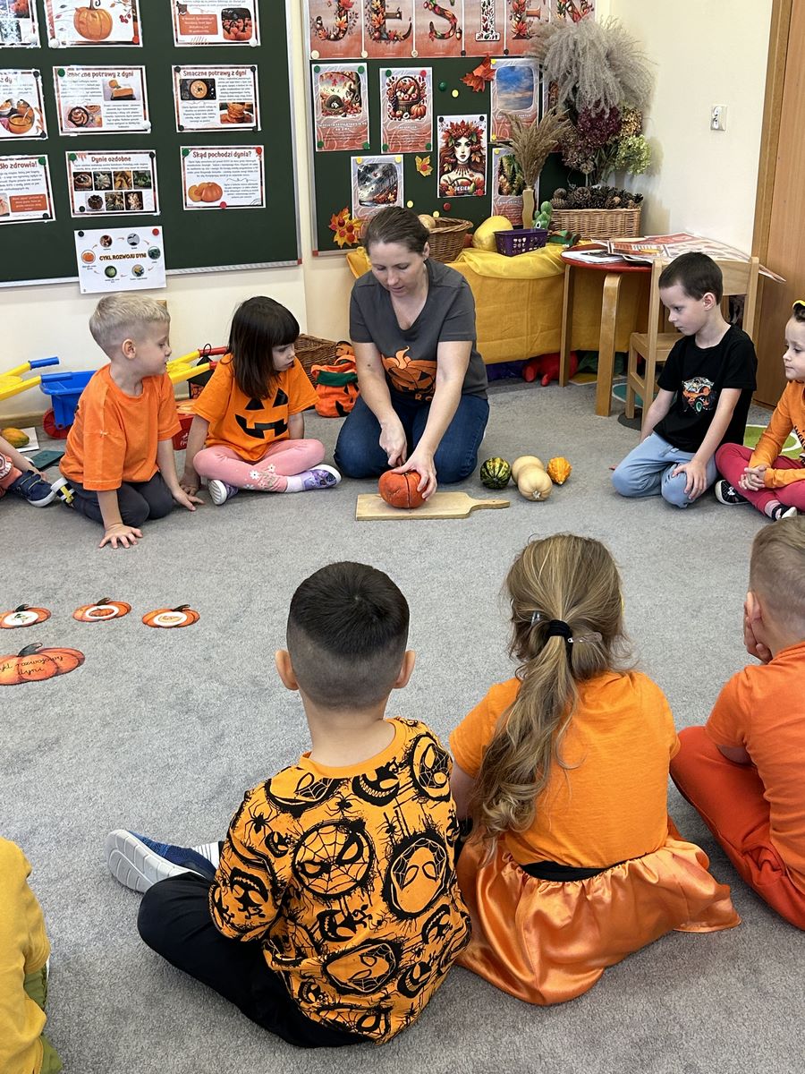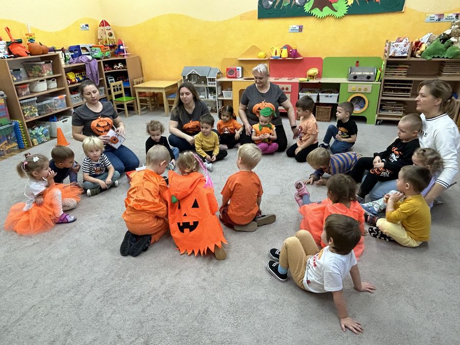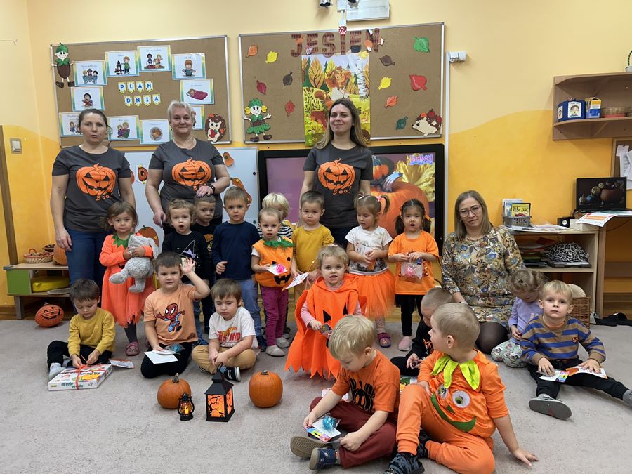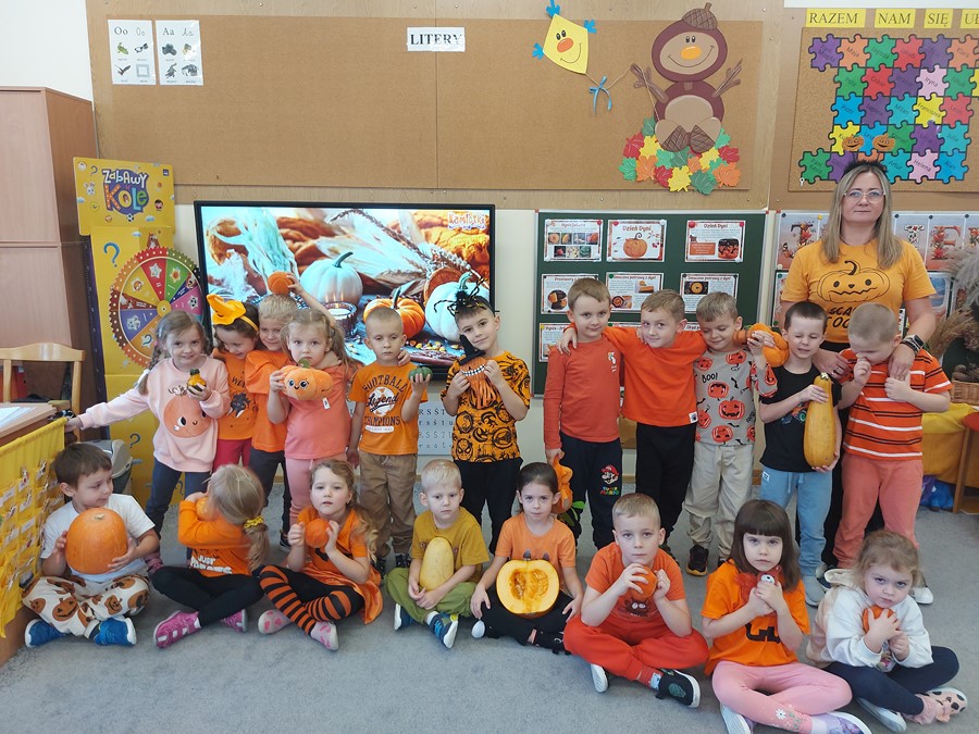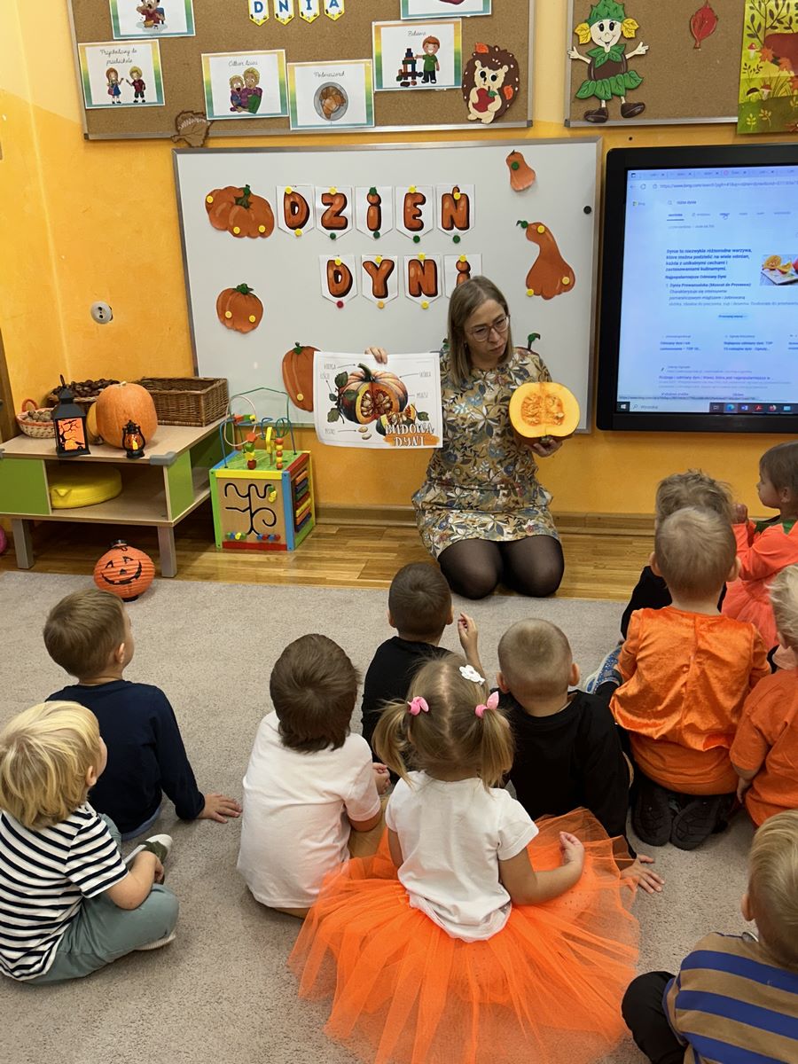 31 października w naszym przedszkolu odbył się wyjątkowy Dzień Dyni, pełen radości, zabawy i jesiennych kolorów. Już od rana w salach królował pomarańczowy kolor, a dzieci przyszły ubrane w stroje inspirowane dynią.