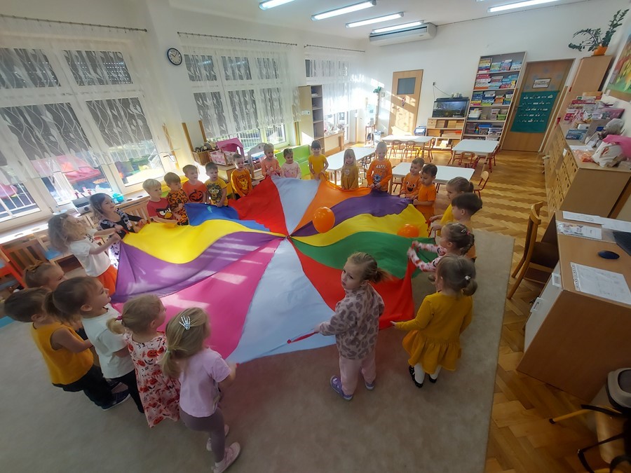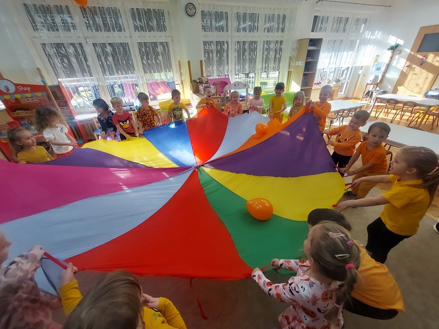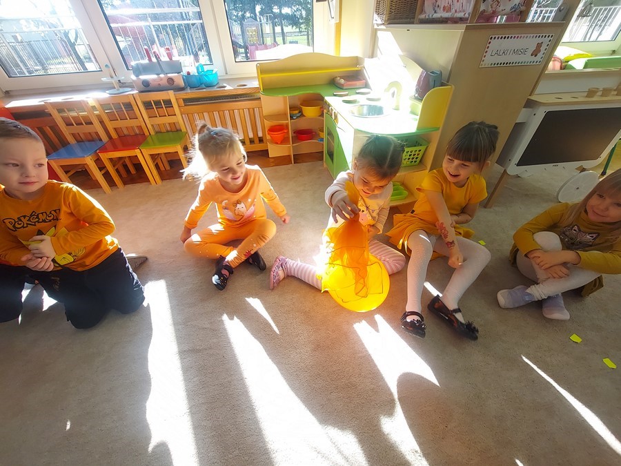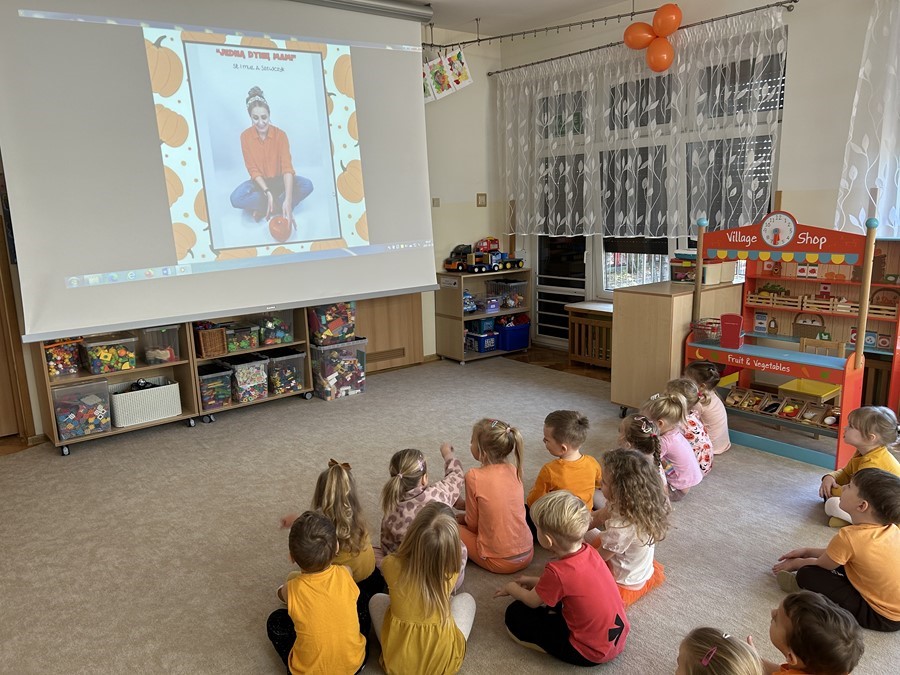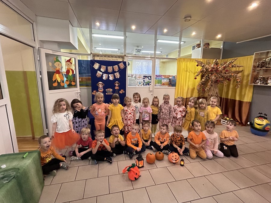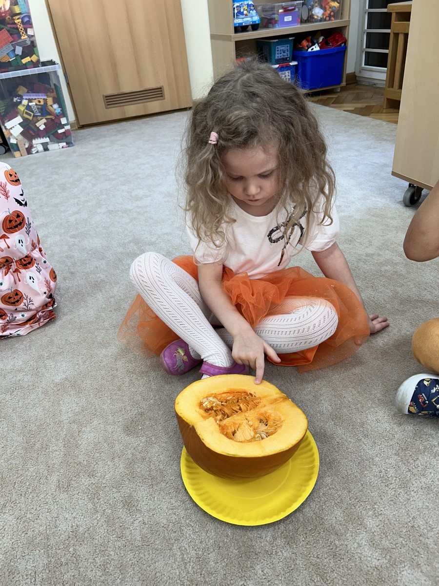 Podczas wspólnych zabaw dzieci brały udział w zabawach z udziałem dyni. Ten dzień przyniósł wiele niezapomnianych wrażeń, ciekawości, odkrywania i zabawy, co widać na zdjęciach poniżej.