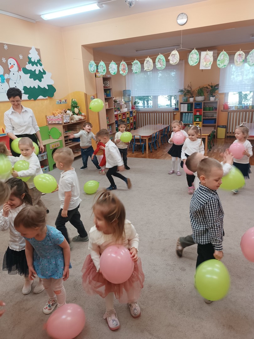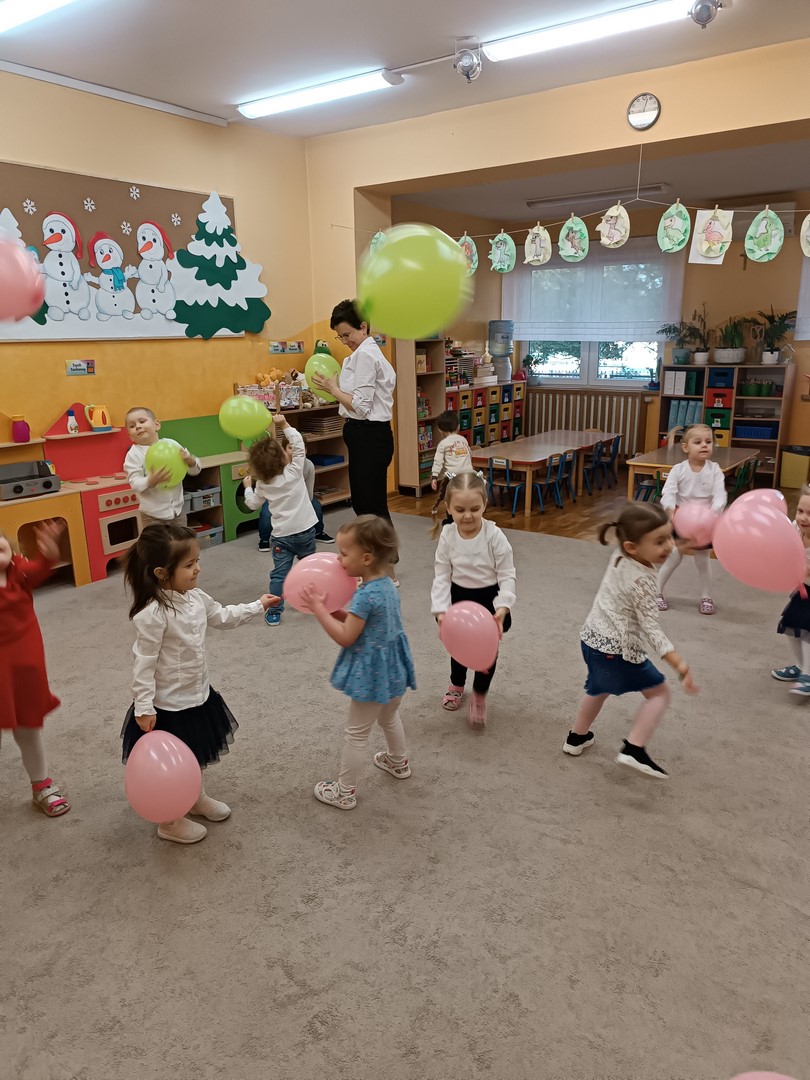 W naszej grupie Słoneczek radośnie świętowaliśmy Dzień Kobiet. Tego dnia w sali panowała wyjątkowa, wesoła atmosfera. Dzieci bawiły się przy muzyce kolorowymi balonami, tańczyły i wspólnie spędzały czas.
