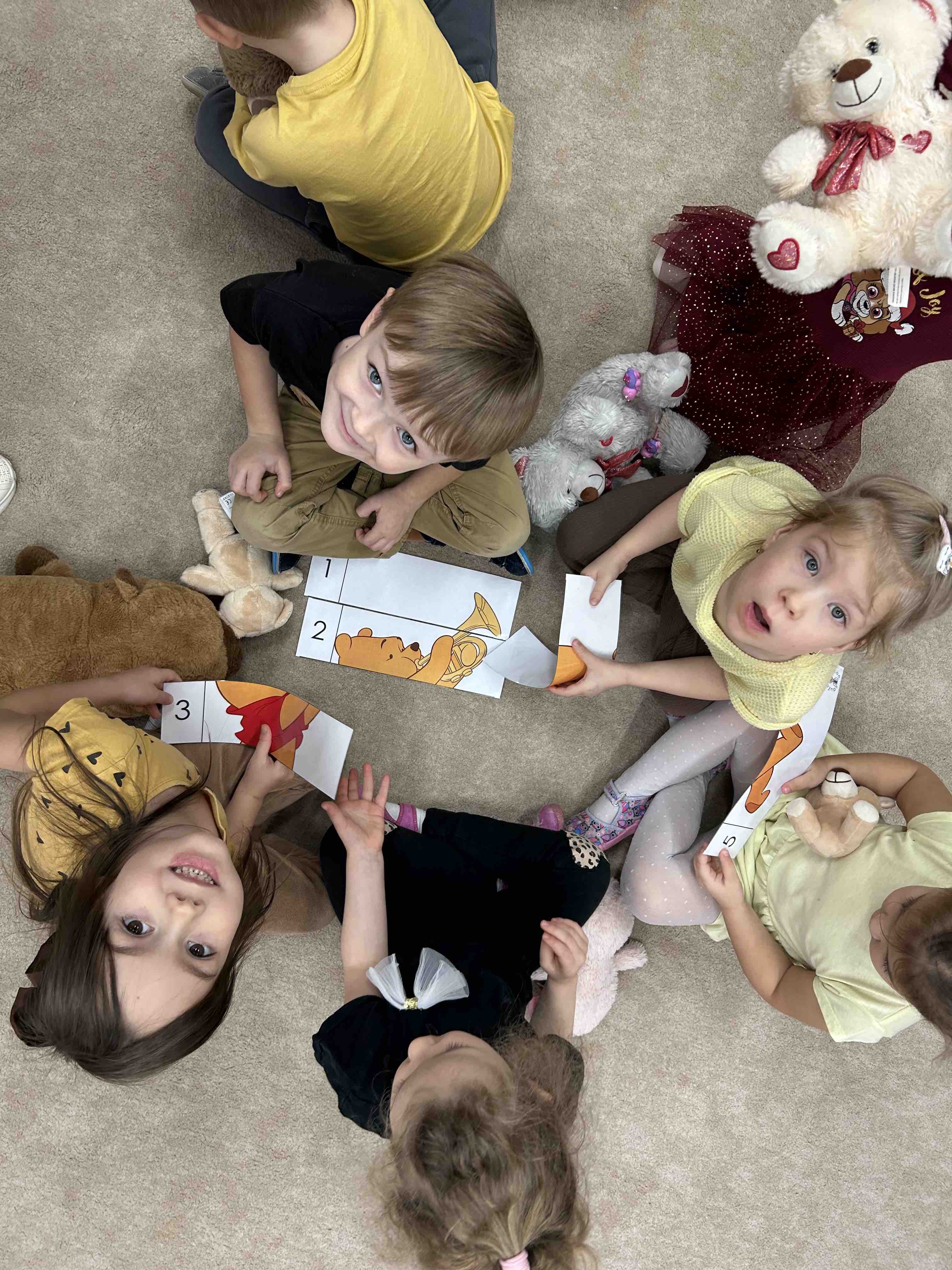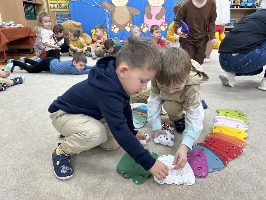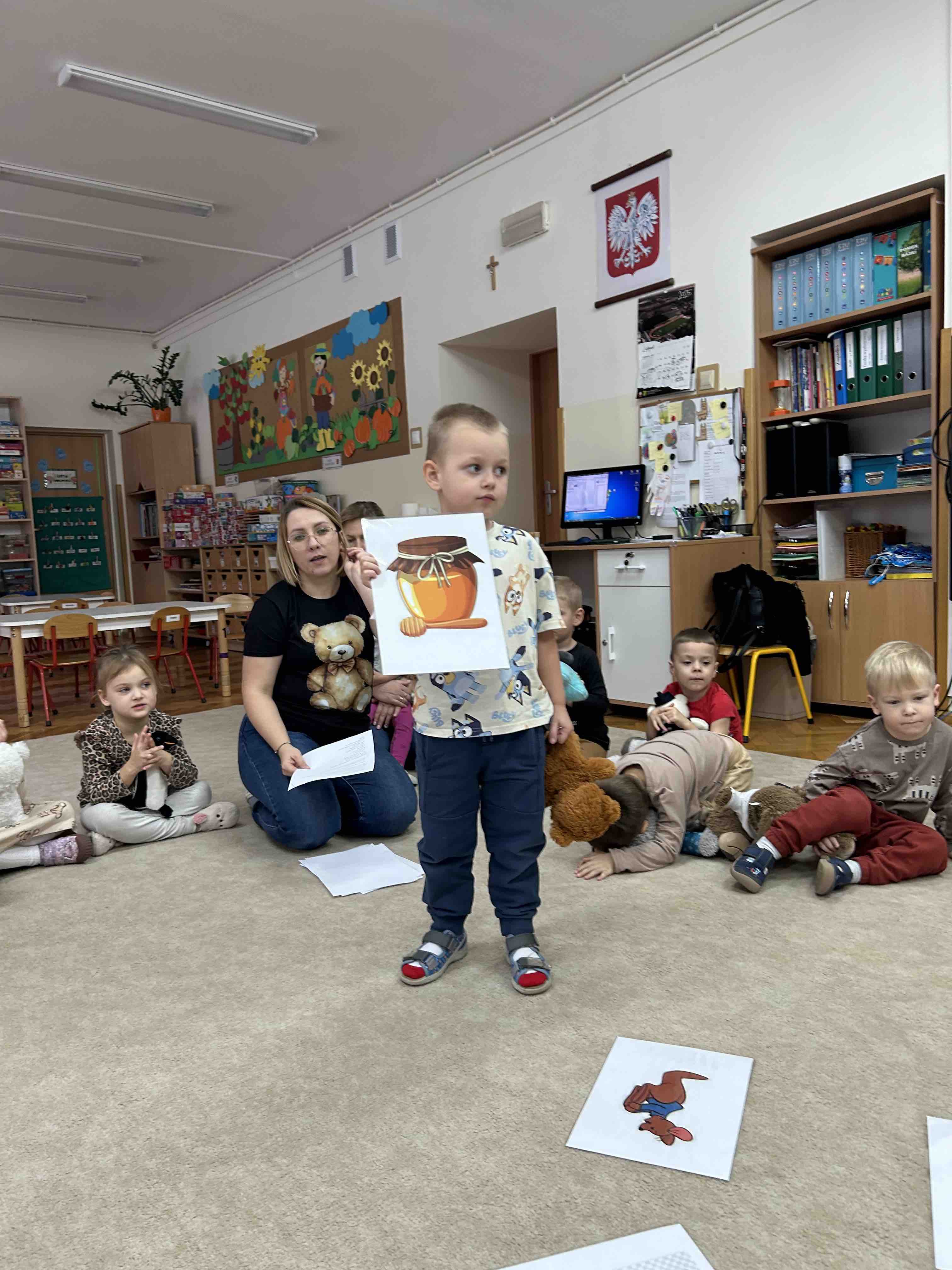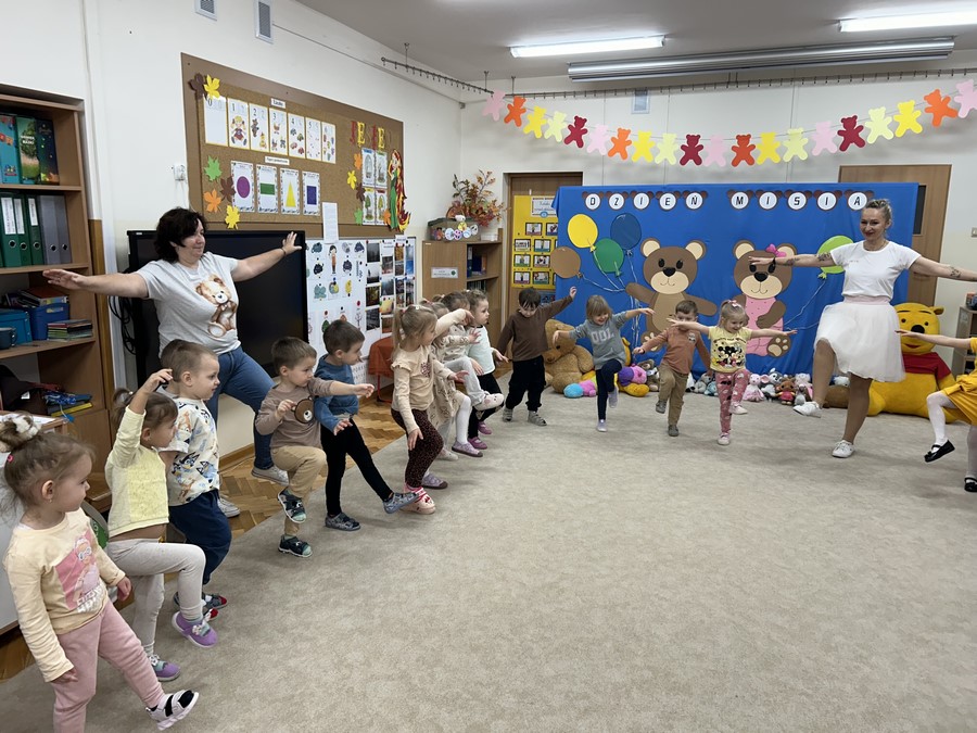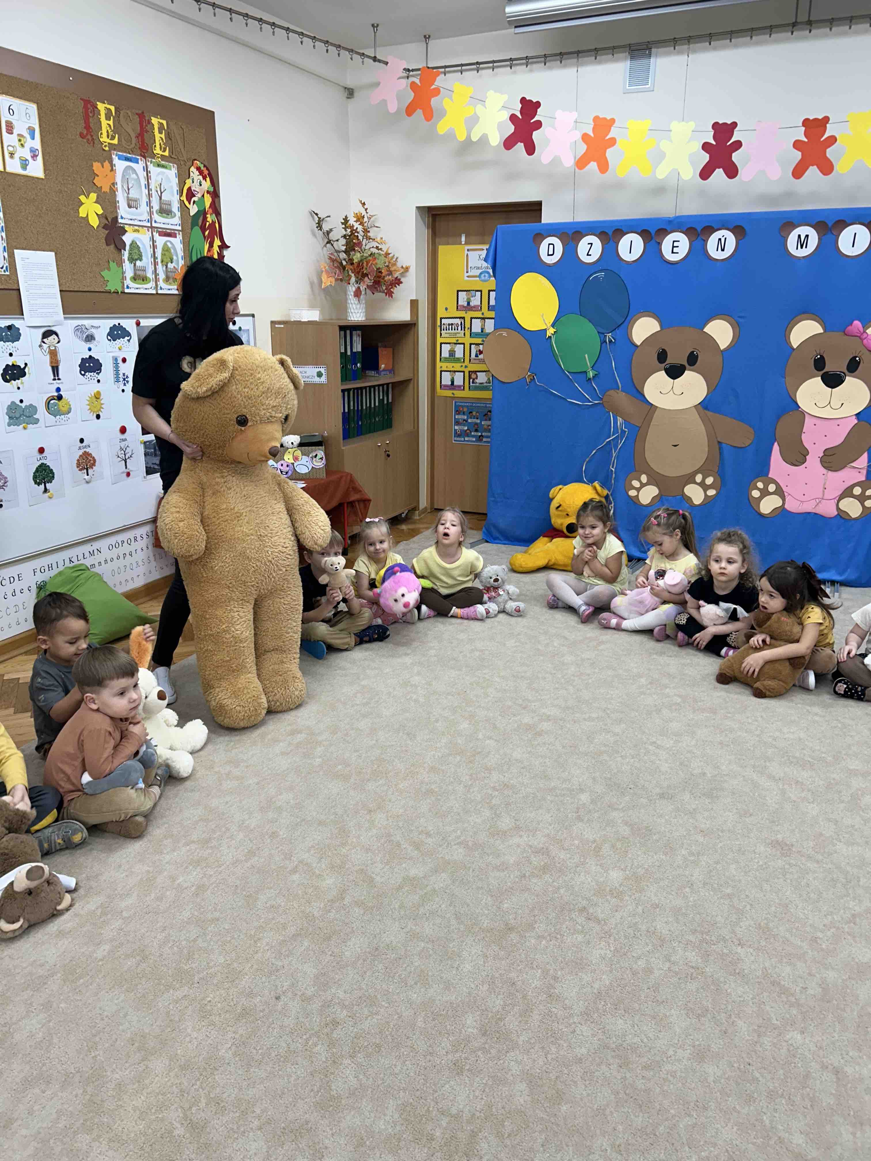 W tym wesołym dniu przedszkolaki czekało wiele atrakcji. Zostały zaproszone do wspólnej zabawy ze swoimi misiami, poznały również historię ich święta i bawiły się do znanych misiowych przebojów. Mogliśmy go przedstawić wszystkim: powiedzieć jak się nazywa i co lubimy z nim robić. Misie wzięły udział w zabawach z kolorową chustą: jeździły na karuzeli, a ich właściciele układały misiowe puzzle i spróbowały misiowego przysmaku: miodu.