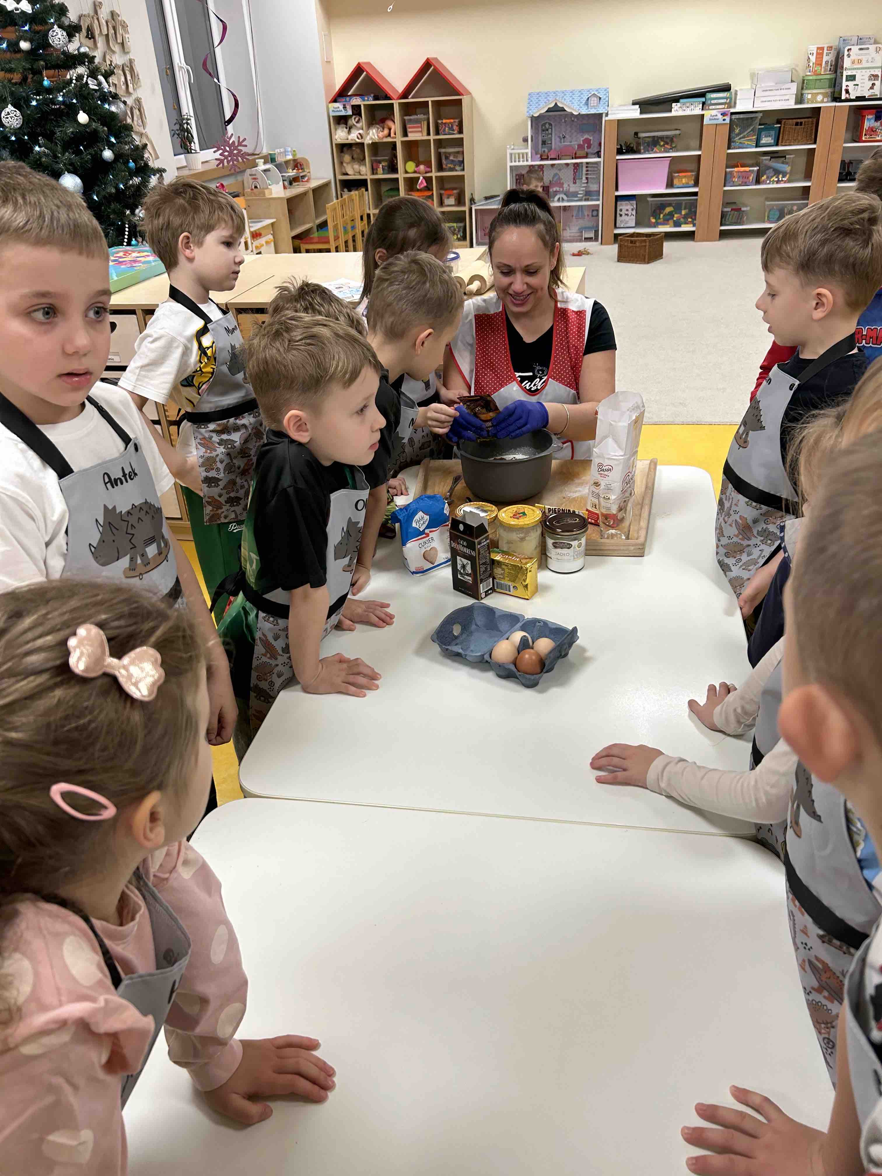 Święta tuż, tuż… czas więc na pieczenie pierników. I tak o grudniowym poranku przedszkolaki z grupy Chmurek zamieniły salę przedszkolną w prawdziwą Fabrykę Pierniczków.