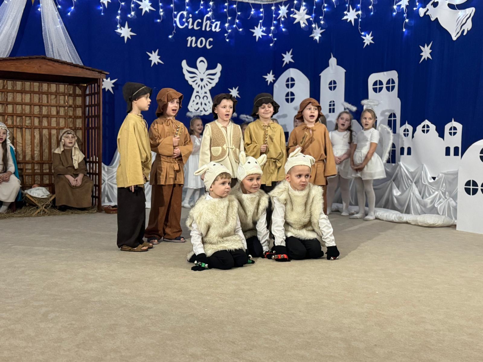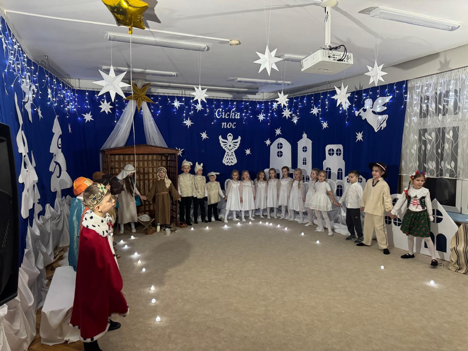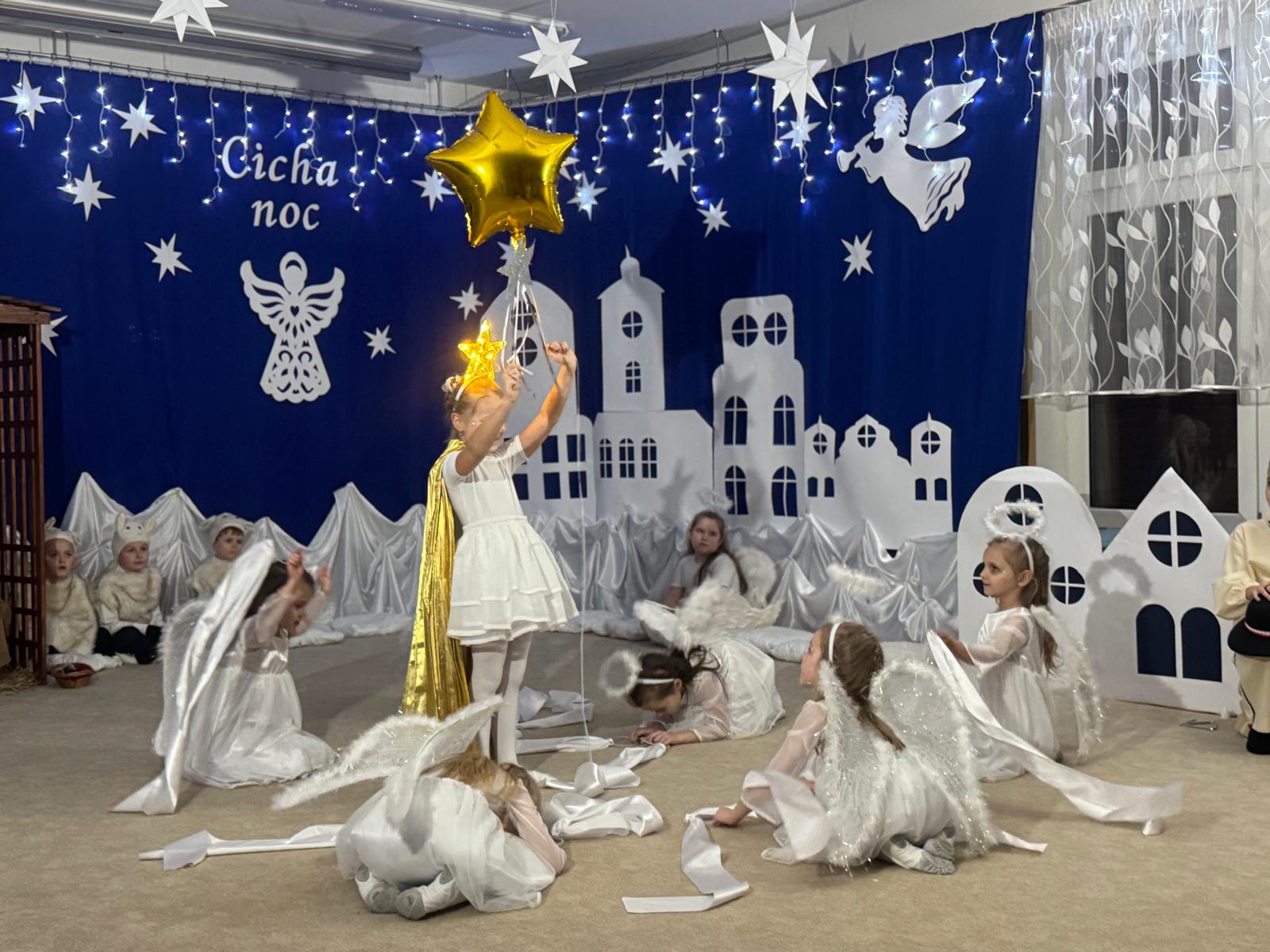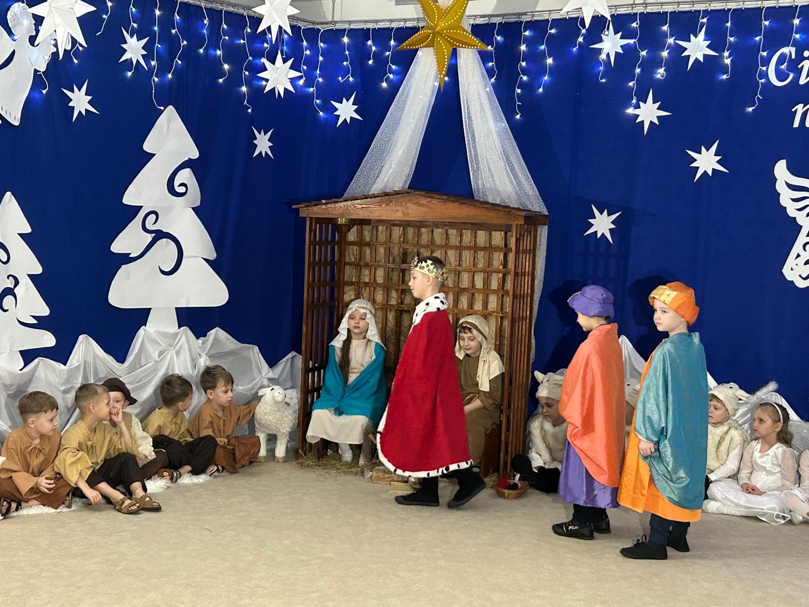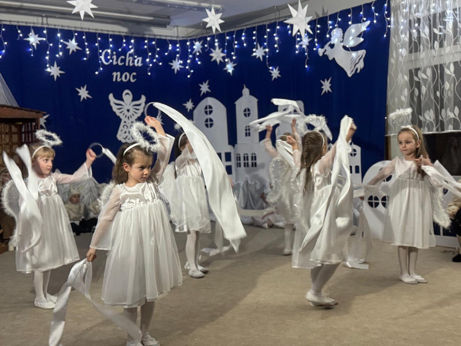 Niezwykłe stroje, bajkowa sceneria oraz starannie przygotowane dekoracje stworzyły nastrój podniosłości i wyjątkowości tego wydarzenia. Roztańczone anioły i pastuszkowie, śpiew kolęd i pastorałek oraz dopracowane układy taneczne zachwycały efektami świetlnymi, kolorowymi materiałami i lametami. Dzieci z wielkim przejęciem i radością odgrywały swoje role, tworząc widowisko pełne emocji, ciepła i wzruszeń.