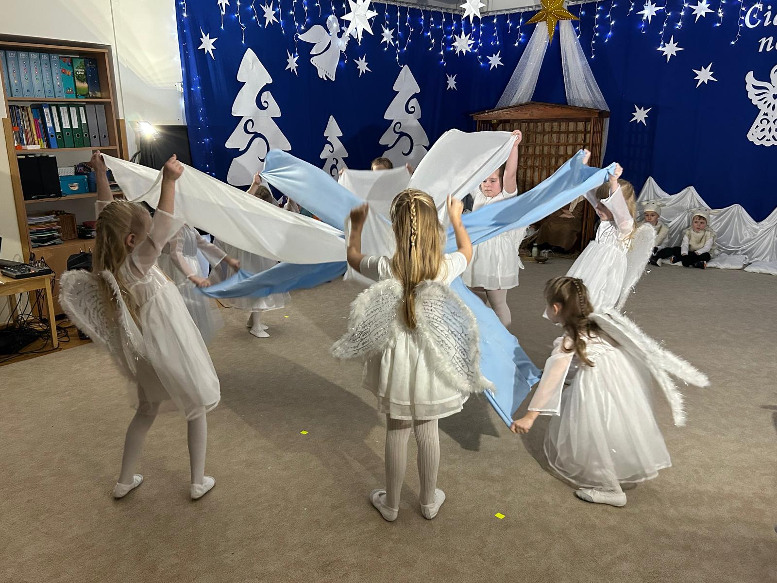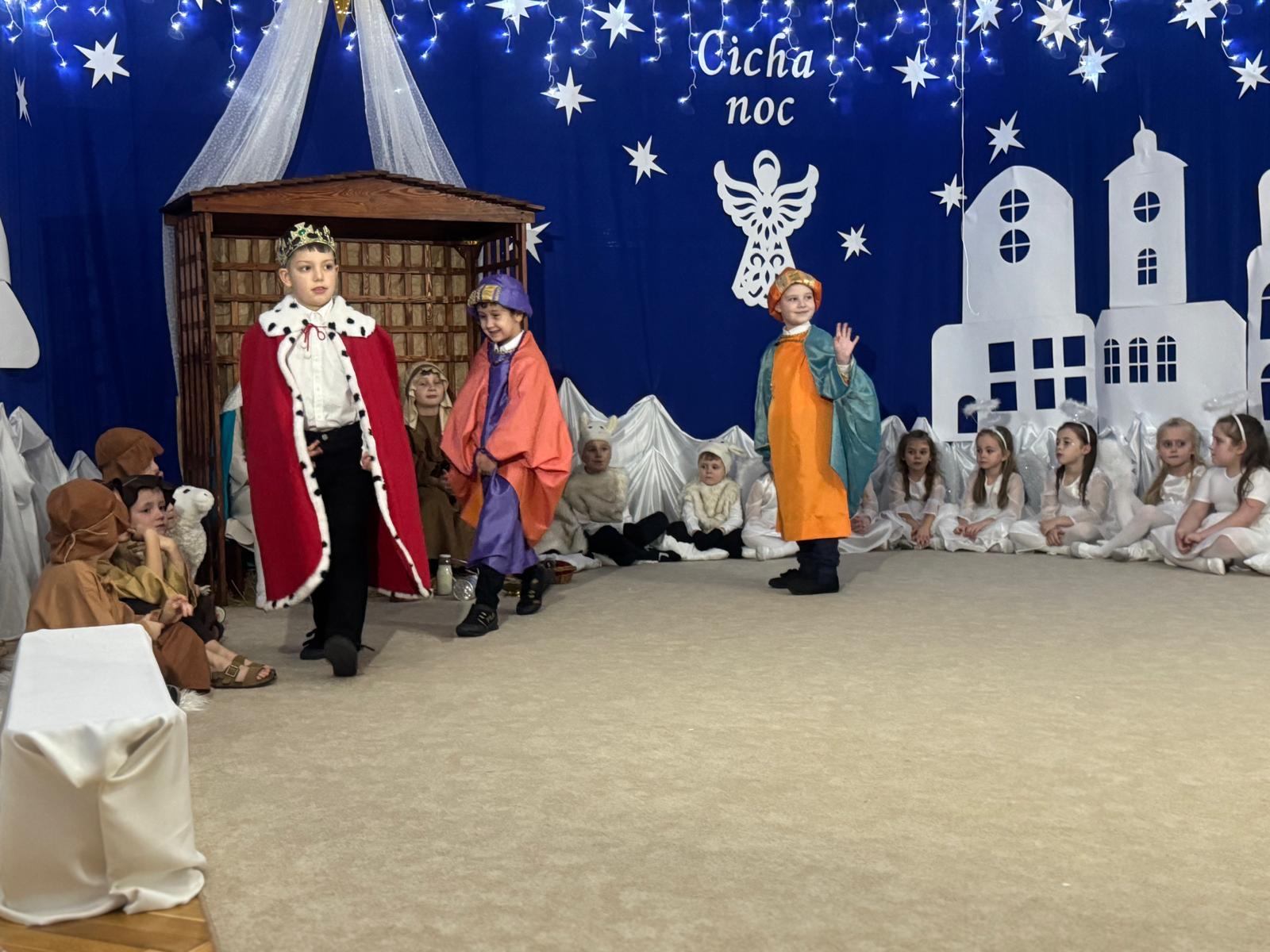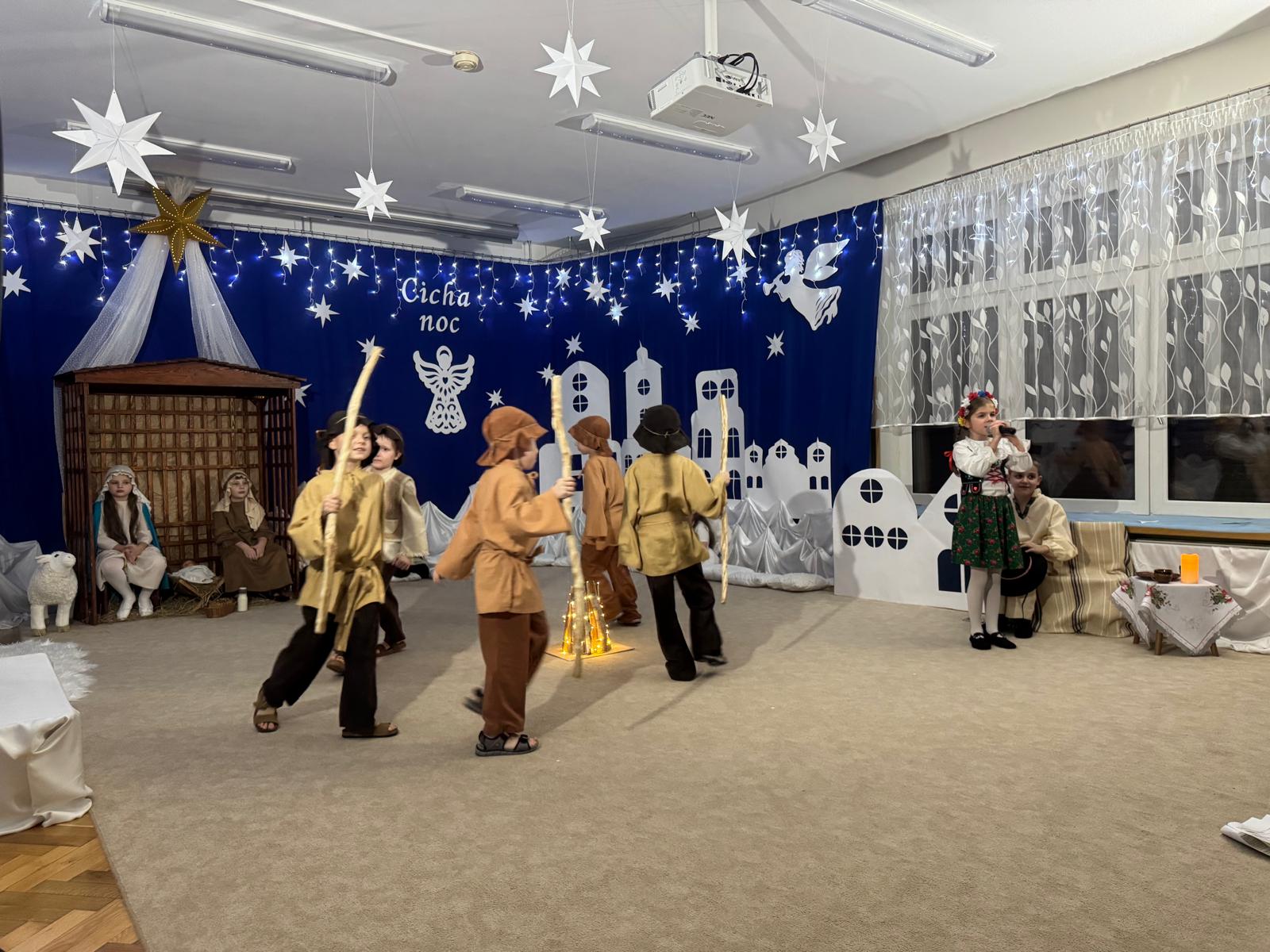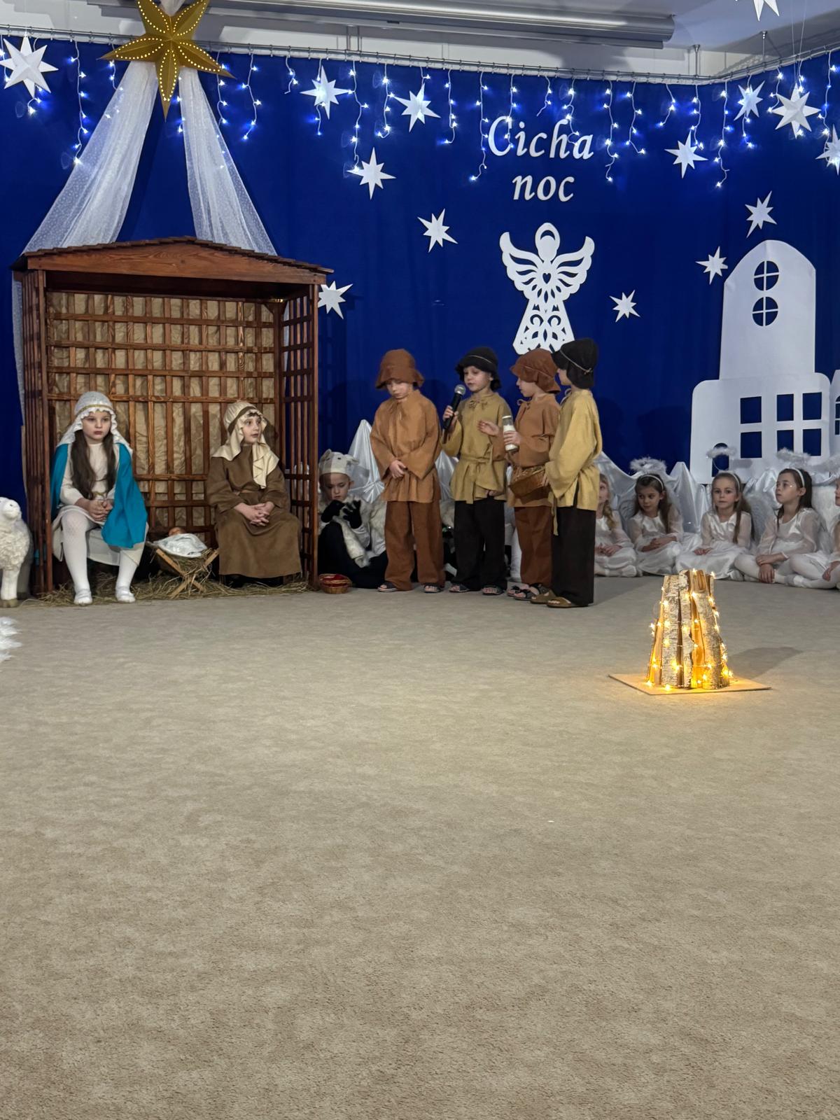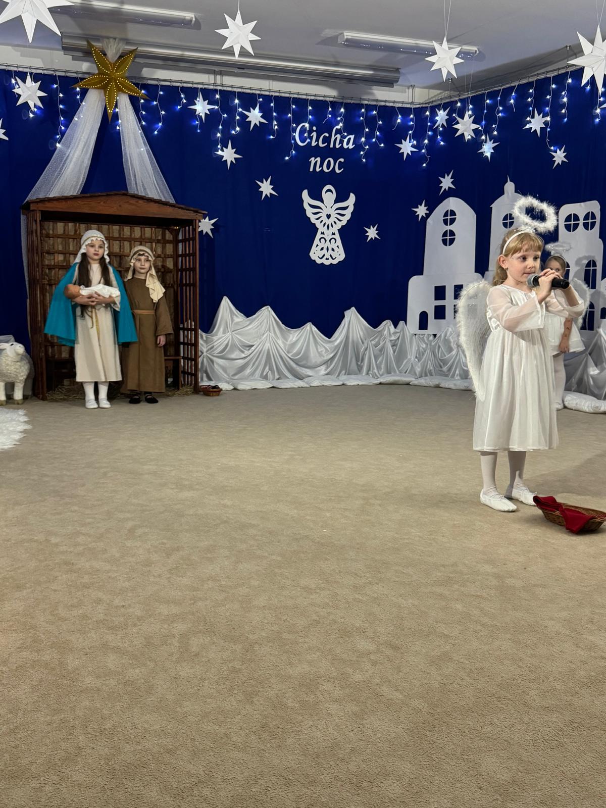 Niezwykłe stroje, bajkowa sceneria oraz starannie przygotowane dekoracje stworzyły nastrój podniosłości i wyjątkowości tego wydarzenia. Roztańczone anioły i pastuszkowie, śpiew kolęd i pastorałek oraz dopracowane układy taneczne zachwycały efektami świetlnymi, kolorowymi materiałami i lametami. Dzieci z wielkim przejęciem i radością odgrywały swoje role, tworząc widowisko pełne emocji, ciepła i wzruszeń.