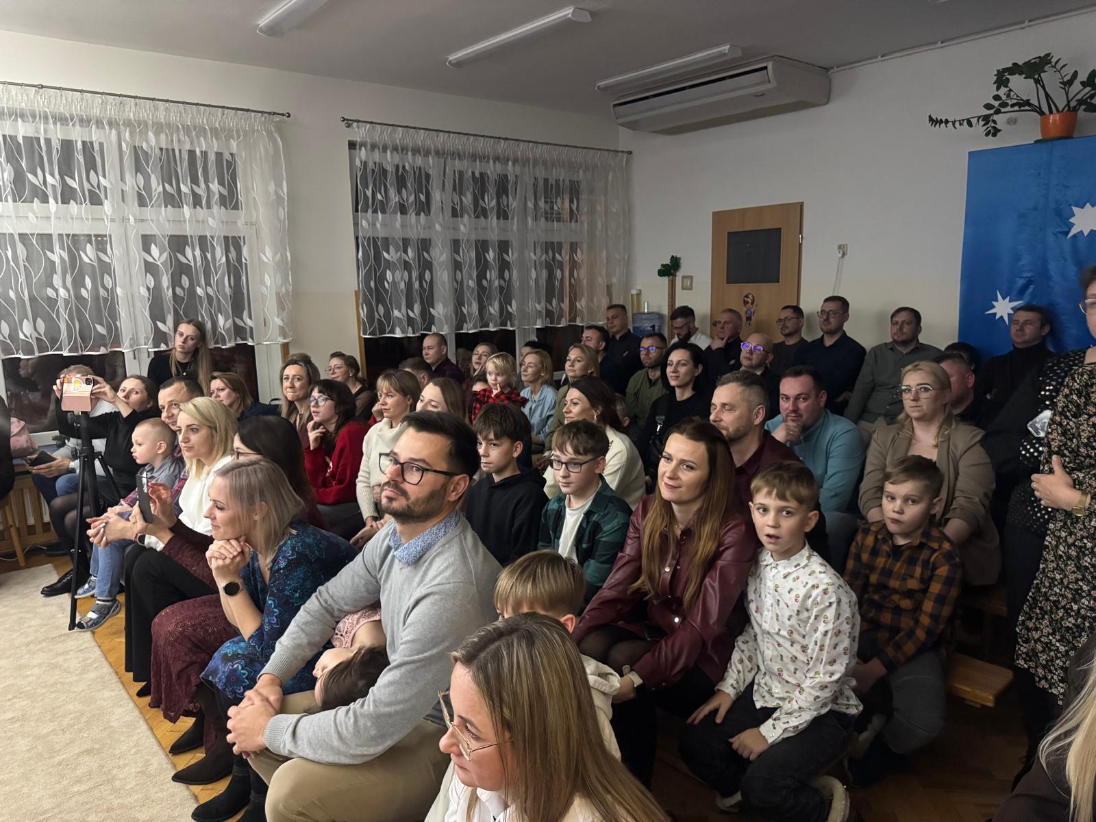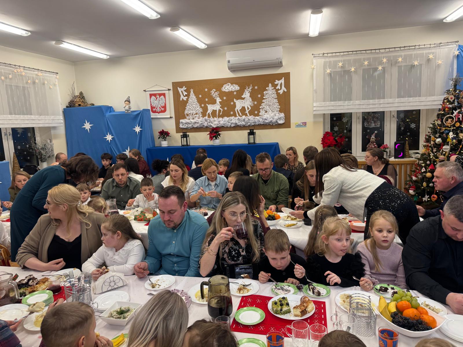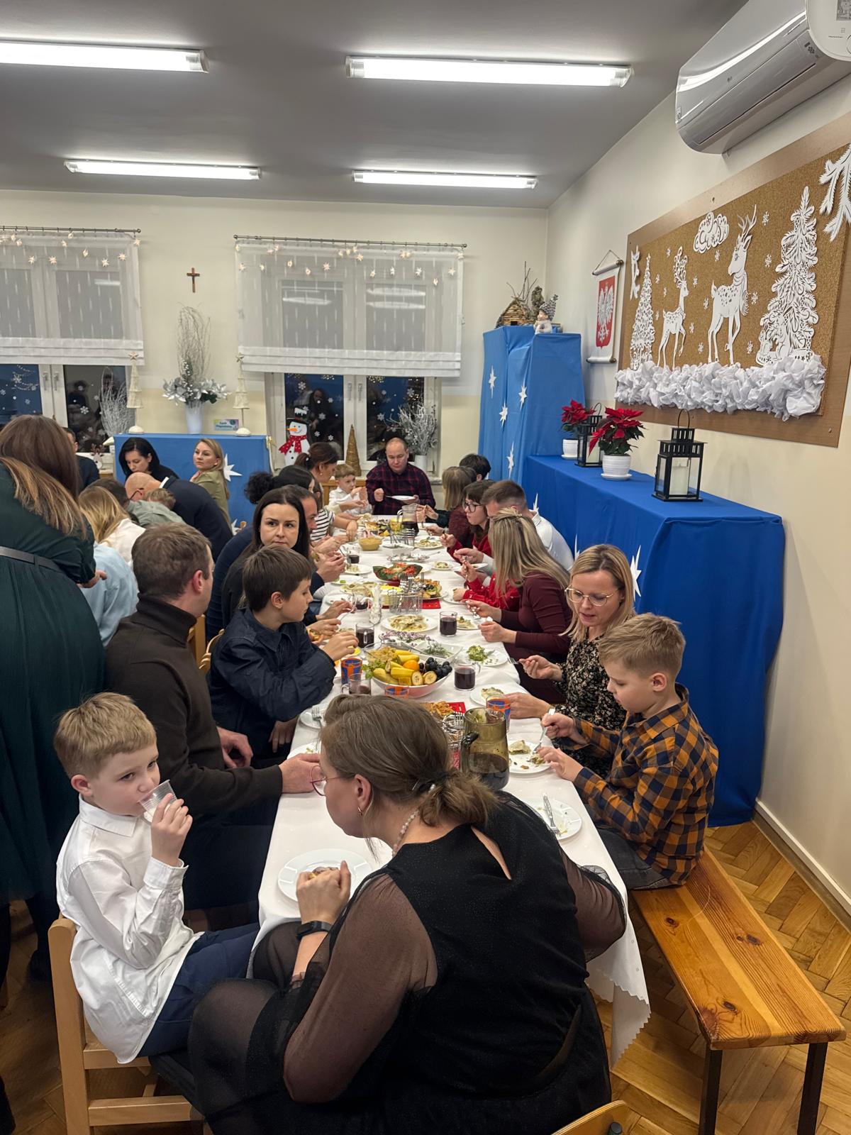 W tej magicznej, świątecznej atmosferze wspólnie z rodzicami odbyła się uroczysta kolacja wigilijna, która sprzyjała rozmowom, radości oraz wspólnemu przeżywaniu wyjątkowych chwil. Wydarzenie to na długo pozostanie w naszej pamięci, a uczucie ciepła, czułości i dobra — mamy nadzieję — zagości w naszych sercach na zawsze. Niech Maleńki Jezus błogosławi wszystkim, niosąc pokój, miłość i nadzieję.