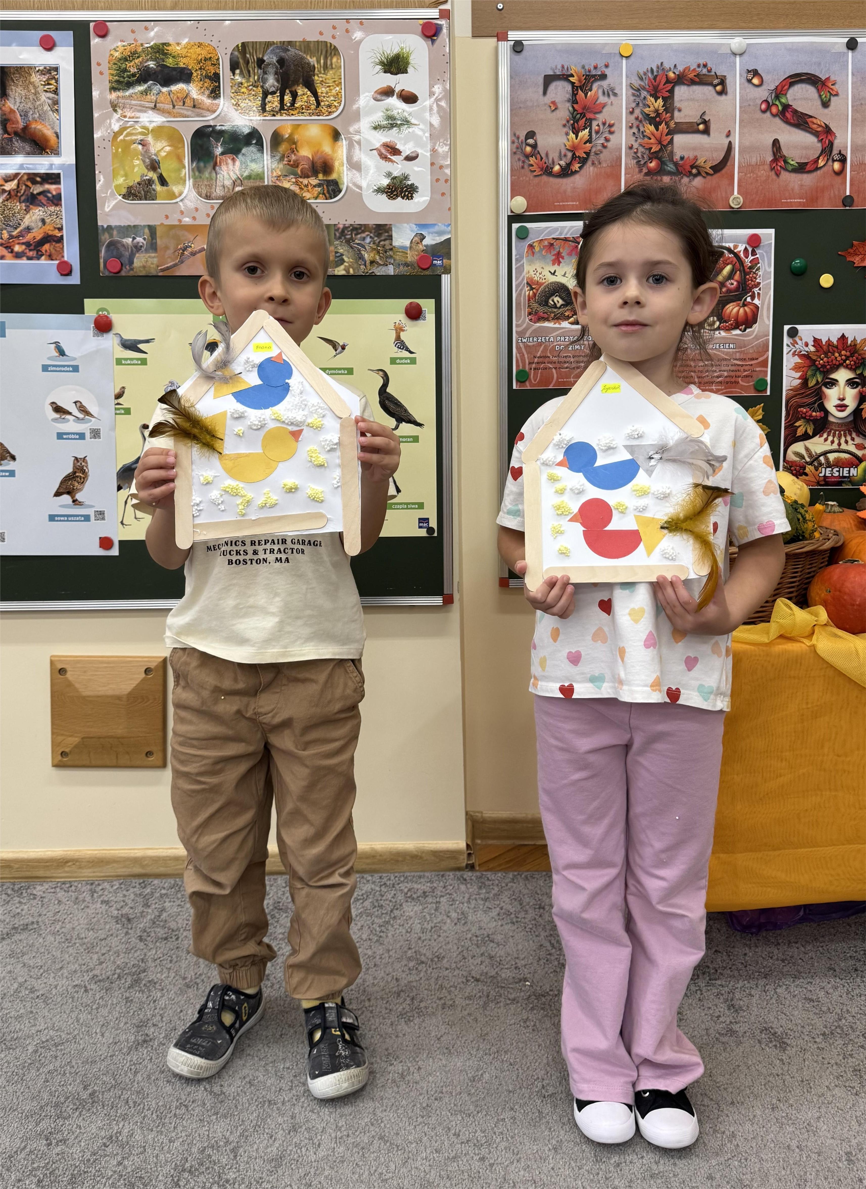 W grupie „Promyczki” odbyły się ciekawe zajęcia plastyczne, podczas których pięciolatki rozmawiały o tym, jak można pomagać ptakom jesienią i zimą. Dzieci dowiedziały się, dlaczego warto dokarmiać ptaki oraz jakie smakołyki są dla nich najlepsze.