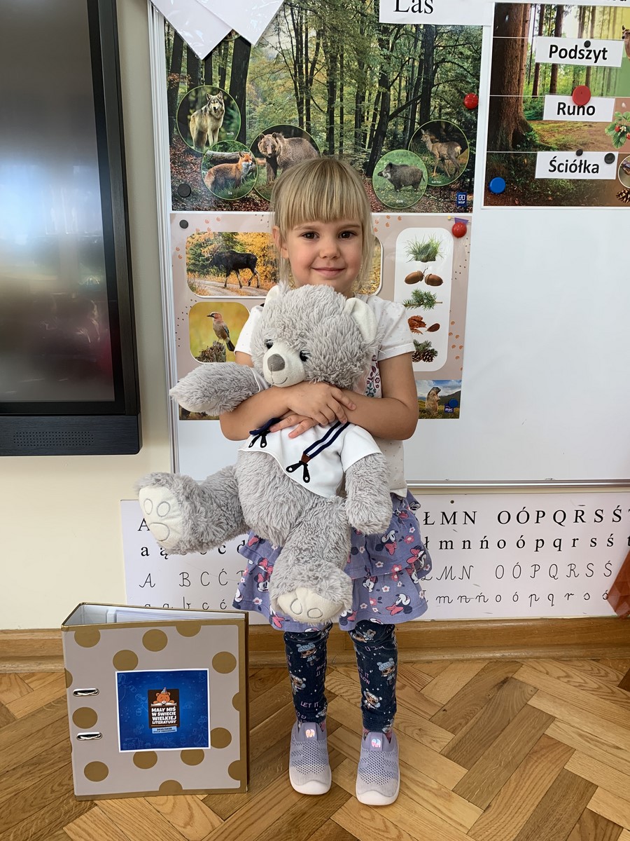 „Mały Miś w świecie wielkiej literatury” to projekt, który cieszy się dużym zainteresowaniem w naszym przedszkolu - uczestniczymy już w kolejnej edycji. Nasza grupa dopiero zaczyna przygodę z Misiem Karolem – właśnie się poznajemy! Ta wyjątkowa inicjatywa ma na celu rozwijanie pasji do czytania i wprowadzenie dzieci w fascynujący świat literatury. Miś Karol, nasz niezwykle sympatyczny i ciekawski bohater, wybiera się w każdy weekend w podróż do domów naszych przedszkolaków i gromadzi ilustracje do kroniki.