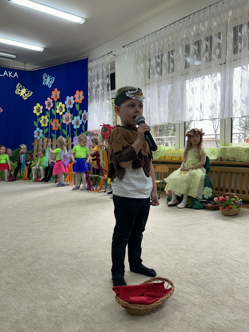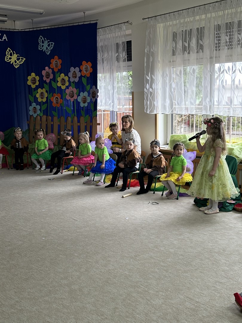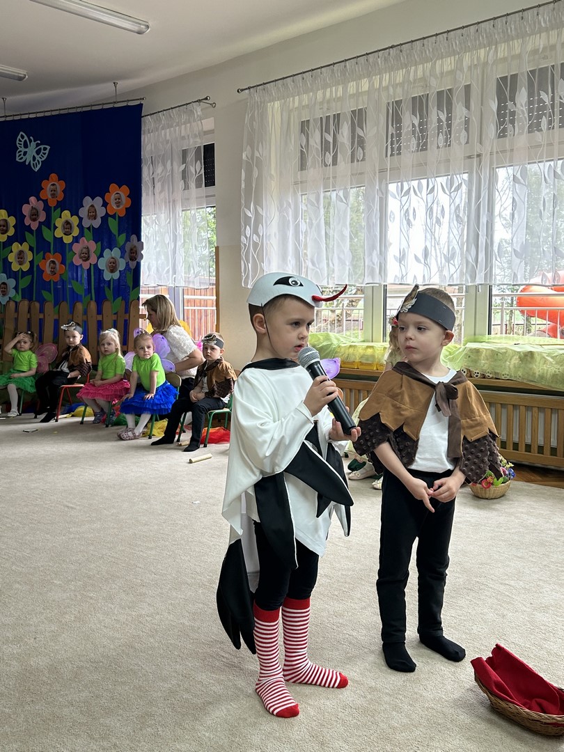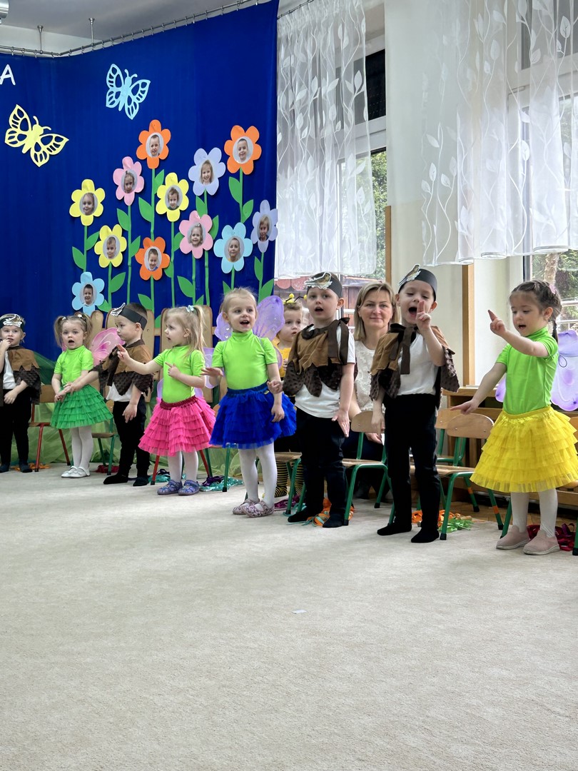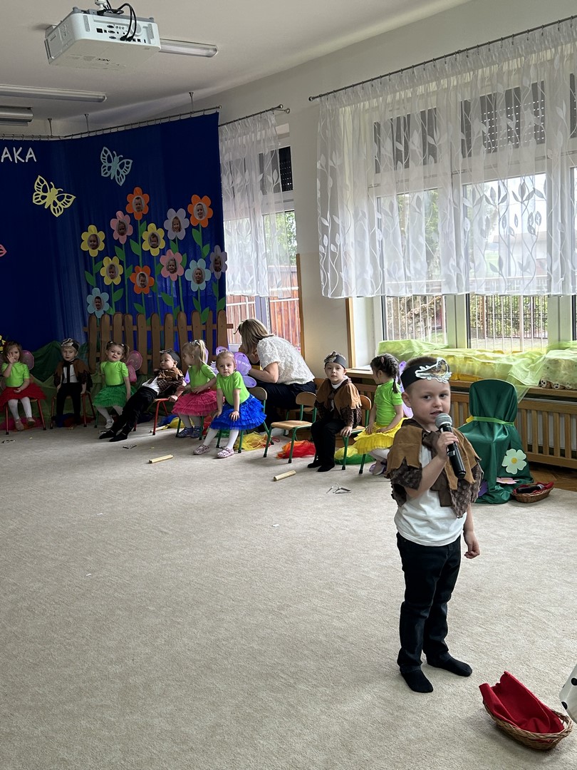 27.03.2026r. odbyło się uroczyste Pasowanie na Przedszkolaka. Była to wyjątkowa i barwna uroczystość utrzymana w wiosennym klimacie. Tego dnia sala przedszkolna zamieniła się w kolorową łąkę, a dzieci wystąpiły w pięknych strojach – można było zobaczyć motyle, pszczoły, ptaki oraz biedronki. Każde dziecko z dumą prezentowało swoje przebranie, wprowadzając wszystkich w radosny, wiosenny nastrój.