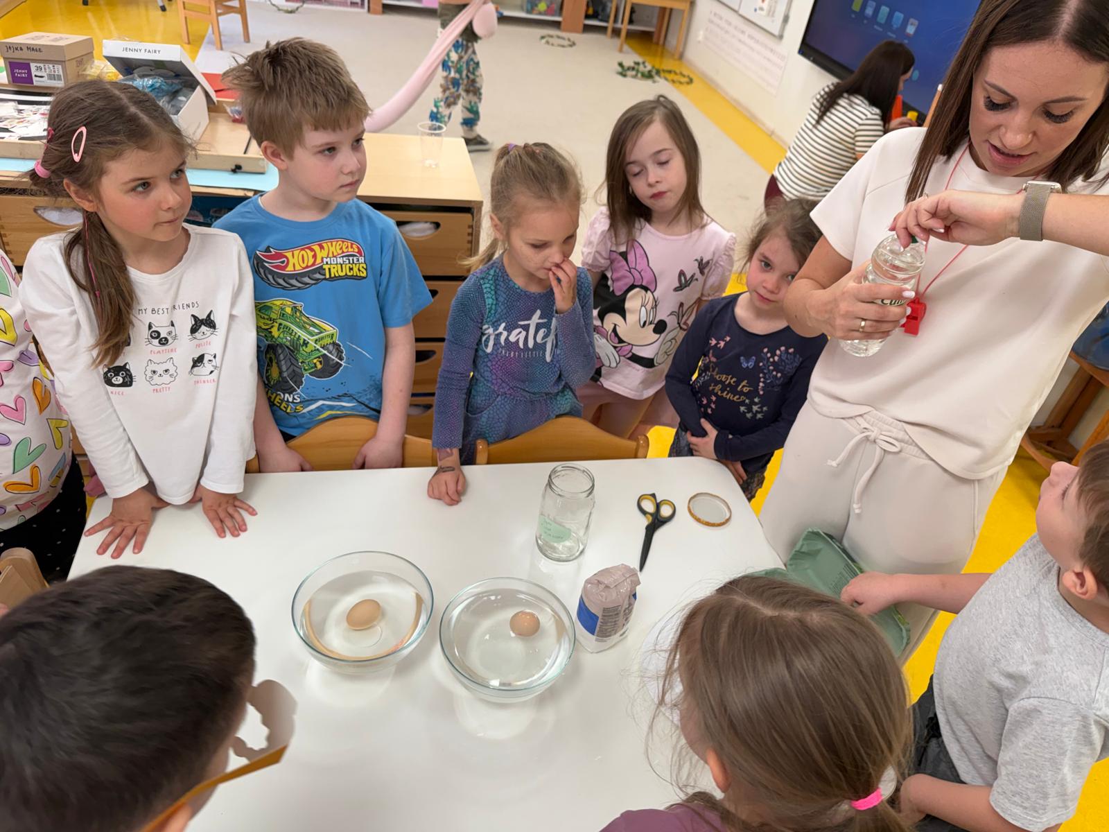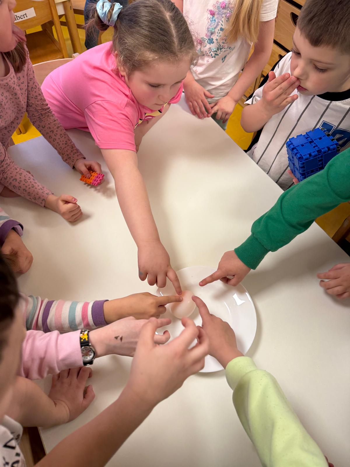 Dzieci z grupy Chmurek na początku kwietnia przeprowadziły wraz z panią projekt edukacyjny "Jajko".