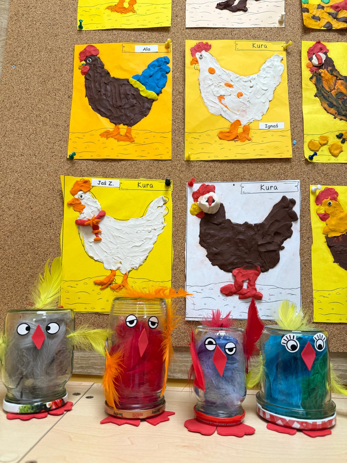 Podczas realizacji projektu wykonały również kilka ciekawych prac plastycznych z motywem jajka bądź kury. Dla naszych sześciolatków był to bardzo ciekawy projekt edukacyjny.