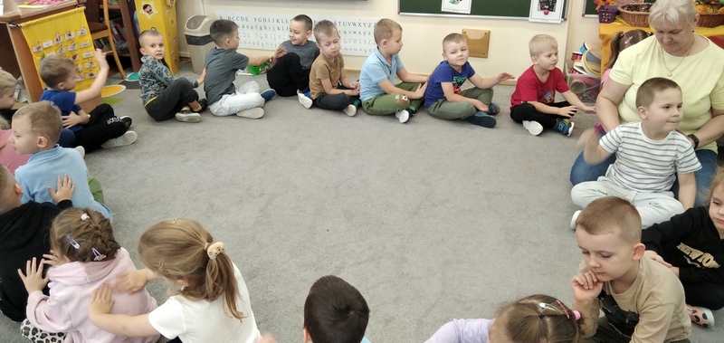 Dzieci poprzez zabawy ruchowe i muzyczno - ruchowe oraz wiersz poznały nawyki żywieniowe, budowę i środowisko życia jeża. Przedszkolaki obejrzały krótki film o jeżu, zaśpiewały o nim piosenkę i poznały jego miejsce zamieszkania.