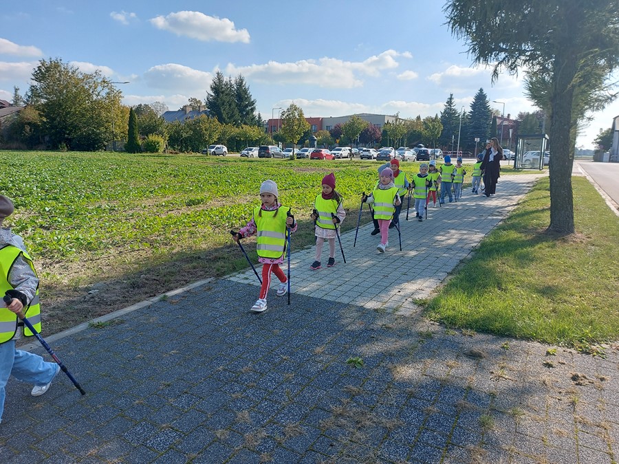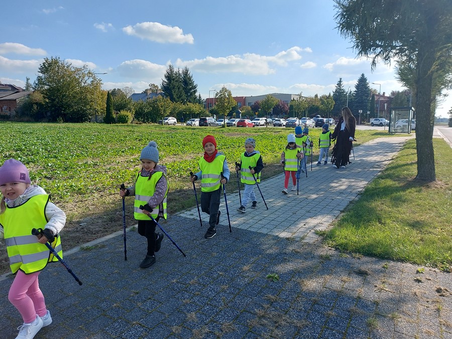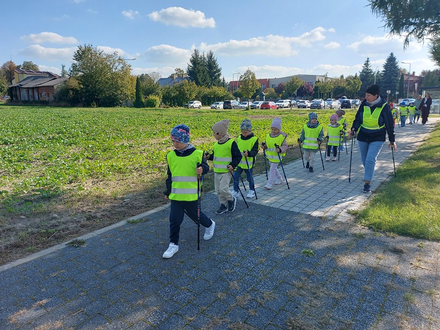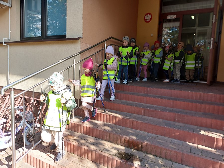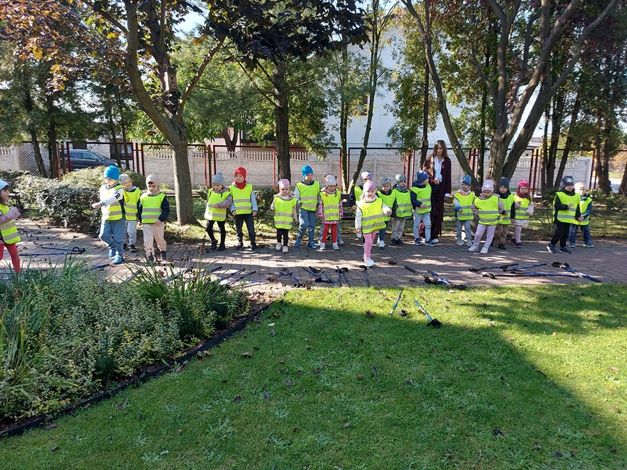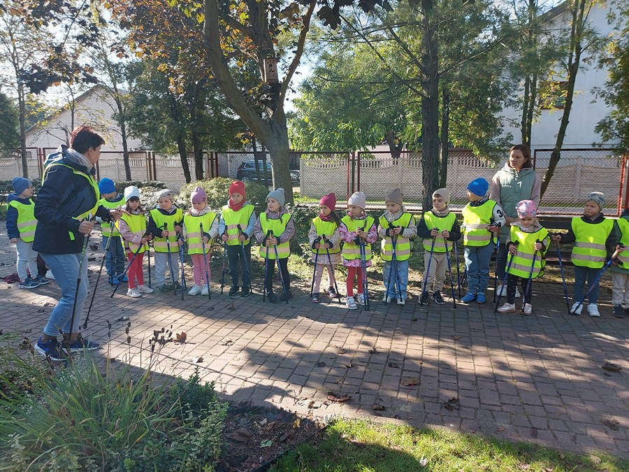 W piątek, 3 października, dzieci z grupy Promyczki przeżyły wyjątkową przygodę – odbyły swoją pierwszą lekcję nauki chodzenia z kijami Nordic Walking.