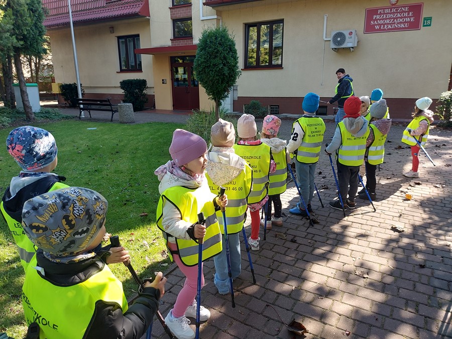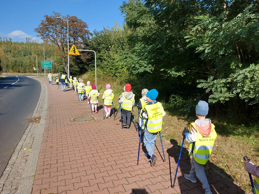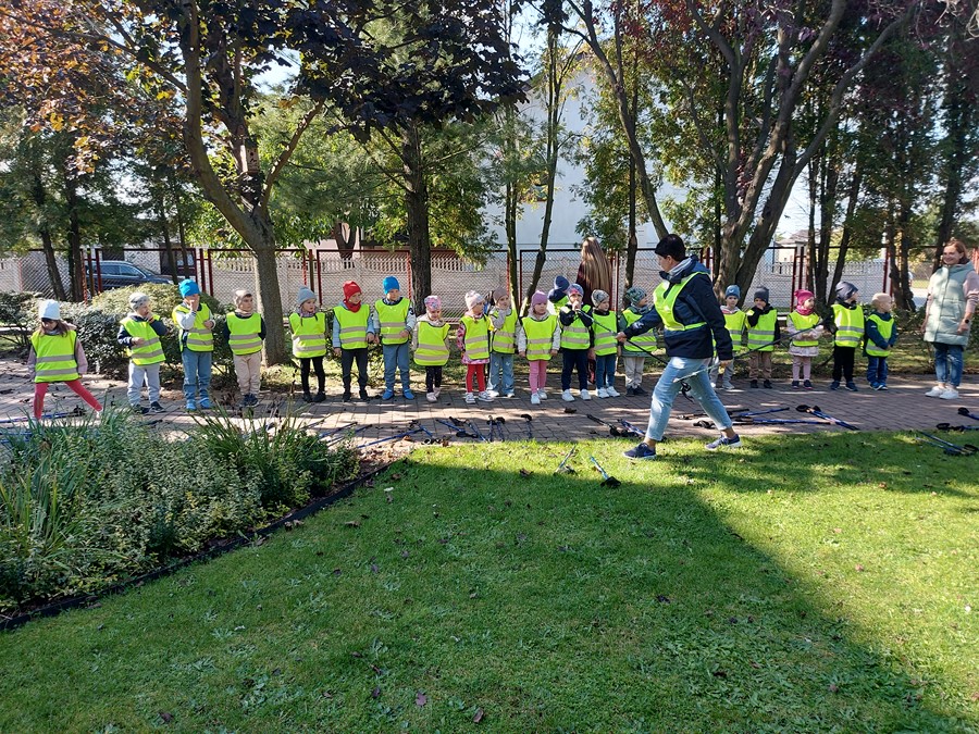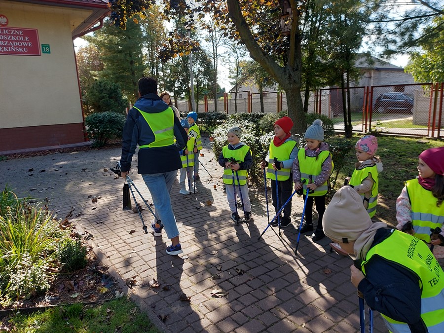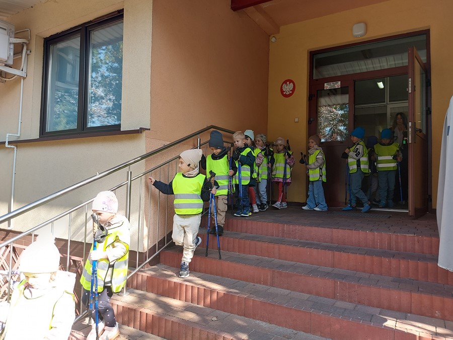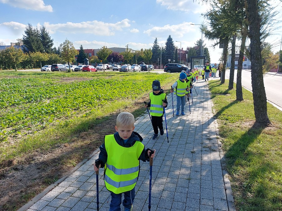 W piątek, 3 października, dzieci z grupy Promyczki przeżyły wyjątkową przygodę – odbyły swoją pierwszą lekcję nauki chodzenia z kijami Nordic Walking.