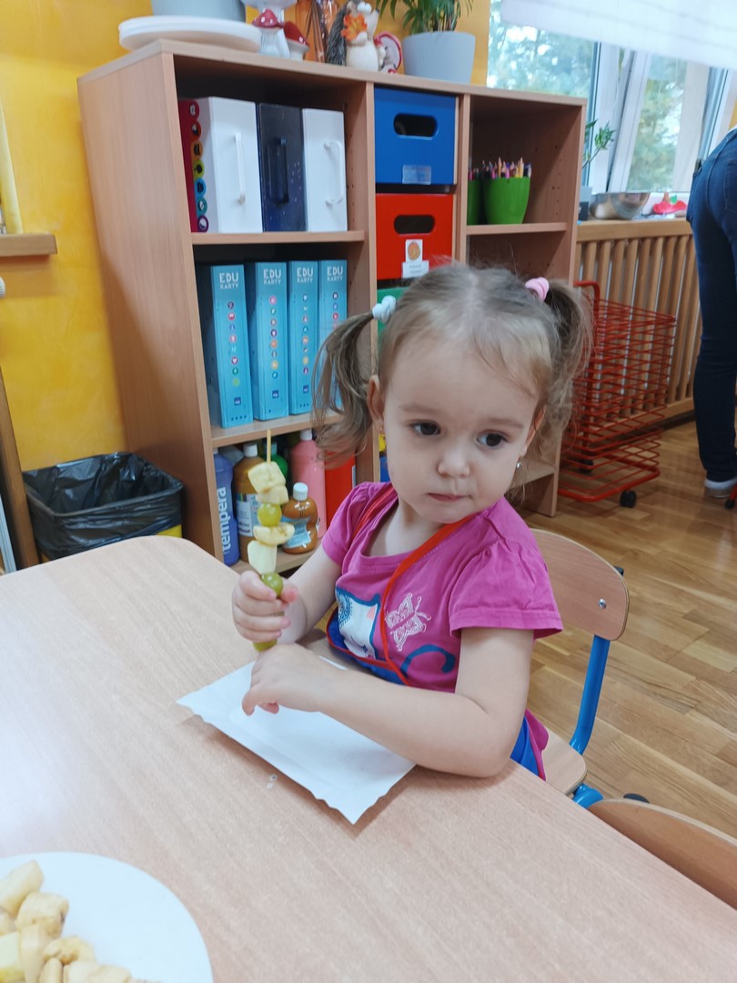 Słoneczka robią owocowe szaszłyki