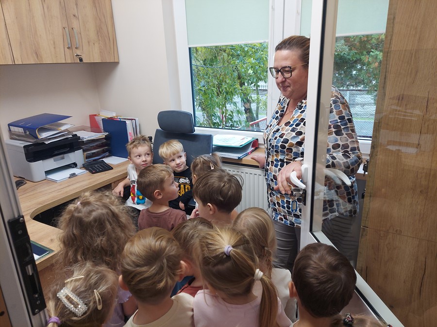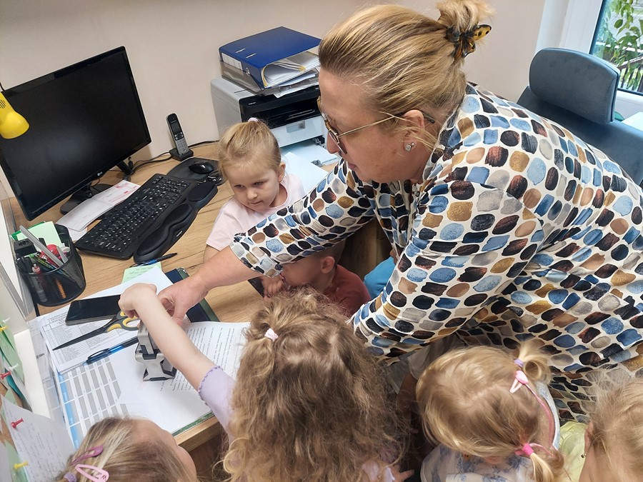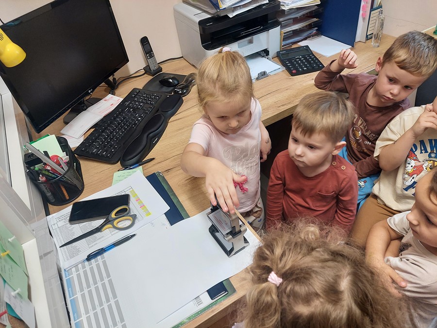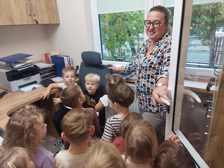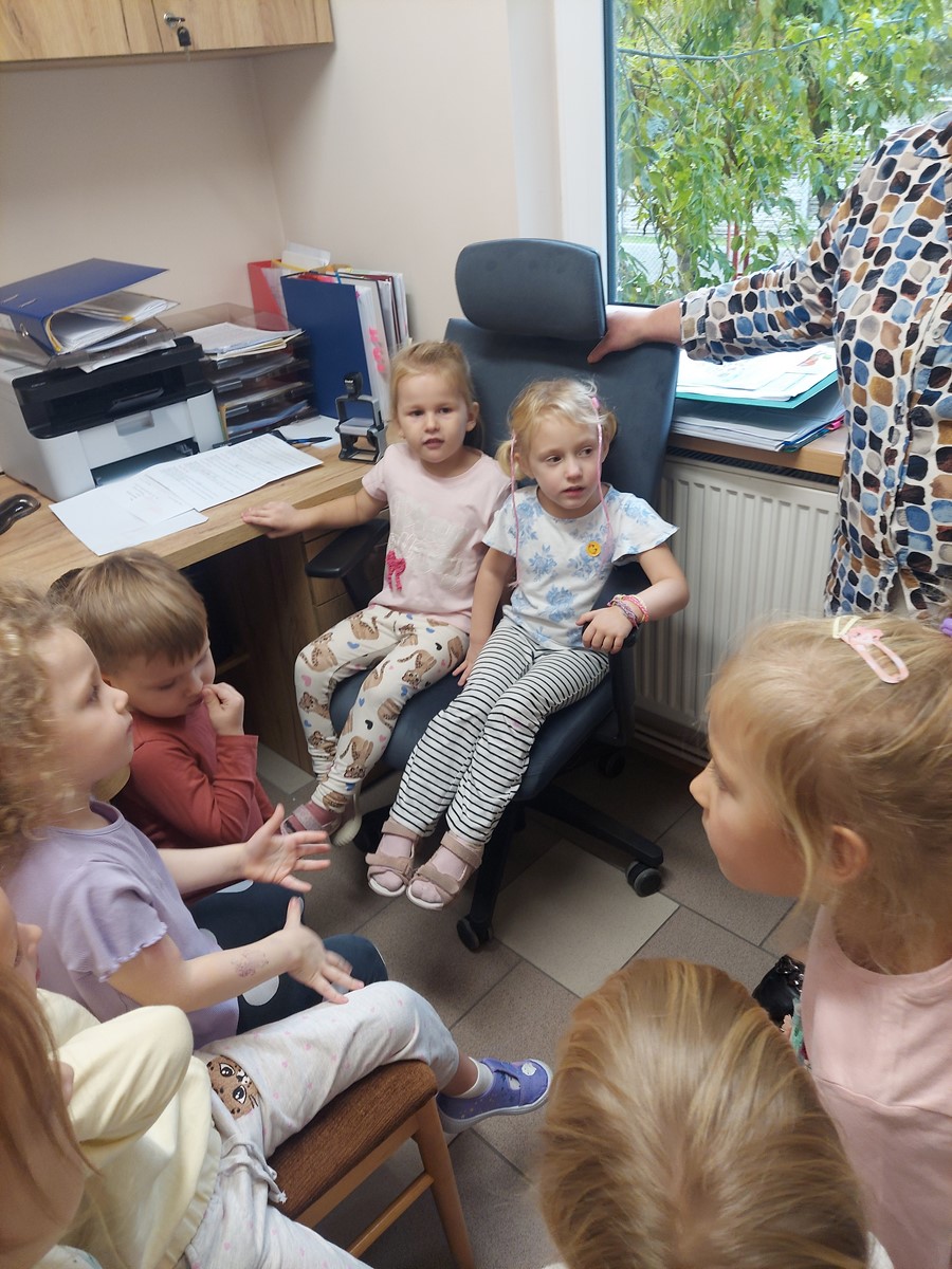 Podczas spotkania dzieci poznały przedmioty, które pani intendent używa w swojej pracy, mogły także usiąść na fotelu mieszczącym się w jej pomieszczeniu. Przedszkolaki rozmawiały również na temat produktów typu: słodycze, napoje gazowane, chipsy itp., które szkodzą naszemu zdrowiu. Temat zdrowego stylu życia nie był dzieciom obcy, gdyż wykazały się ogromną wiedzą podczas odpowiadania na pytania zadawane przez panią intendent.