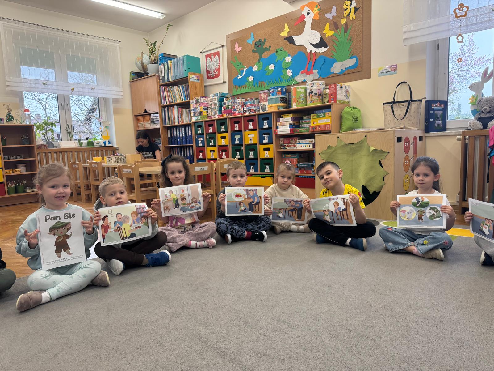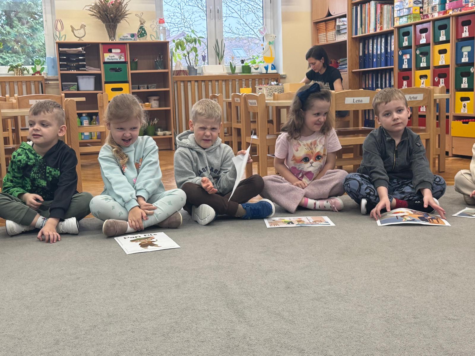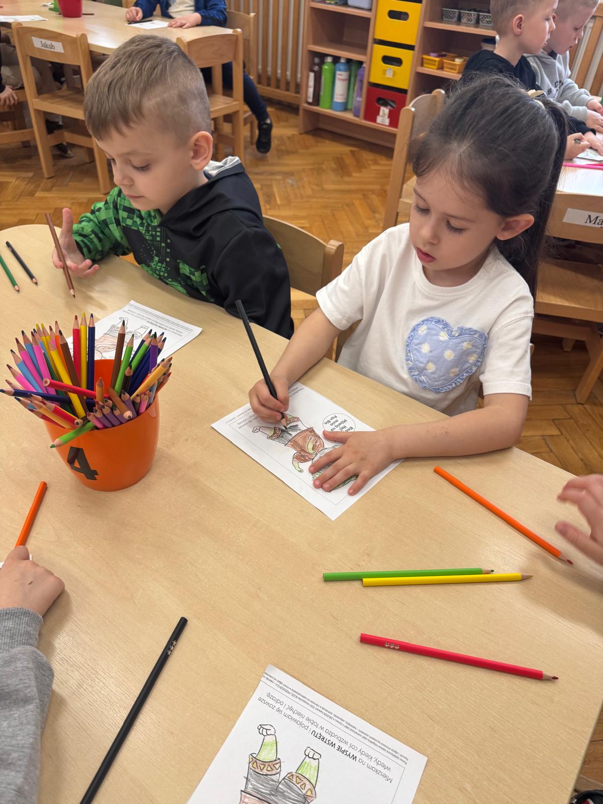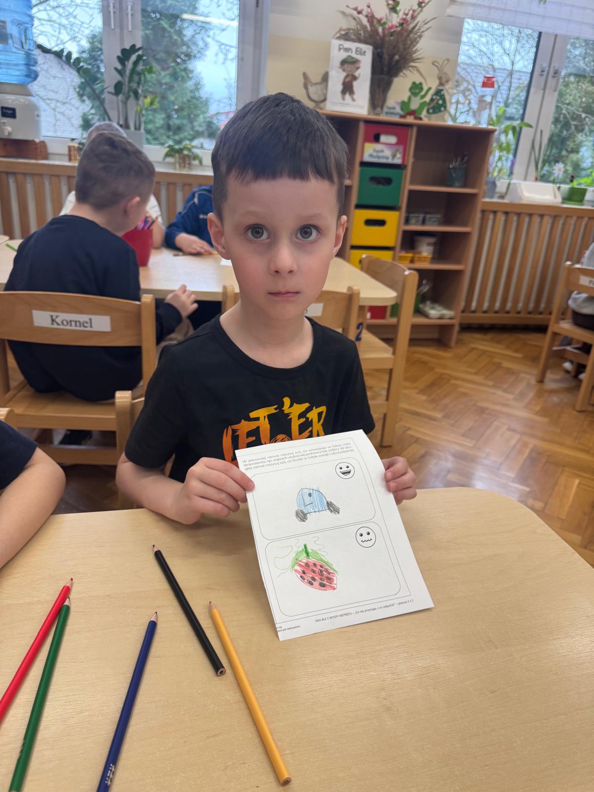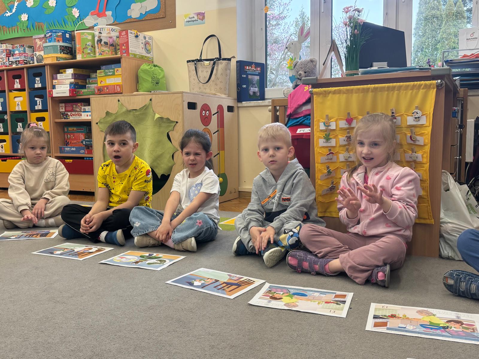 Na początku dzieci wysłuchały opowiadania o Filipie, który odczuwał wstręt wobec zapachu cebuli i ryby. Historia stała się punktem wyjścia do rozmowy o sytuacjach, które mogą wzbudzać w nas niechęć i odrazę. Następnie przedszkolaki aktywnie uczestniczyły w zabawie, wykonując miny ilustrujące emocję wstrętu - było przy tym dużo śmiechu i zaangażowania.