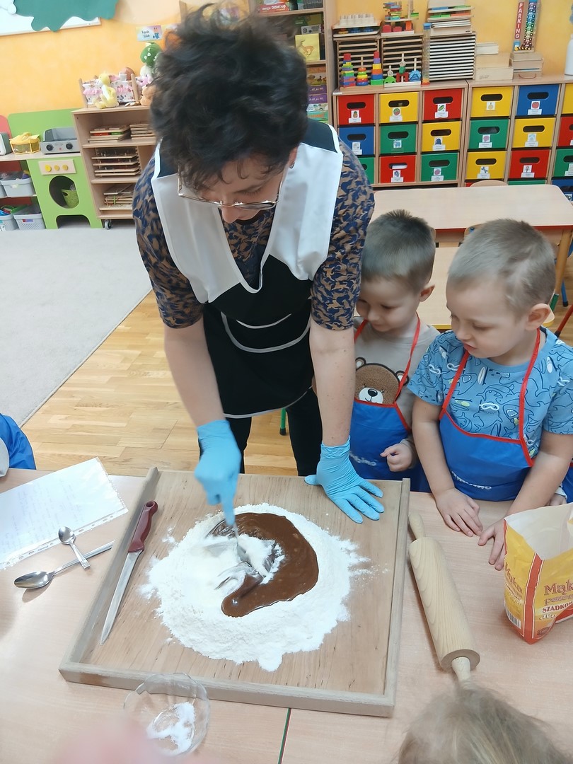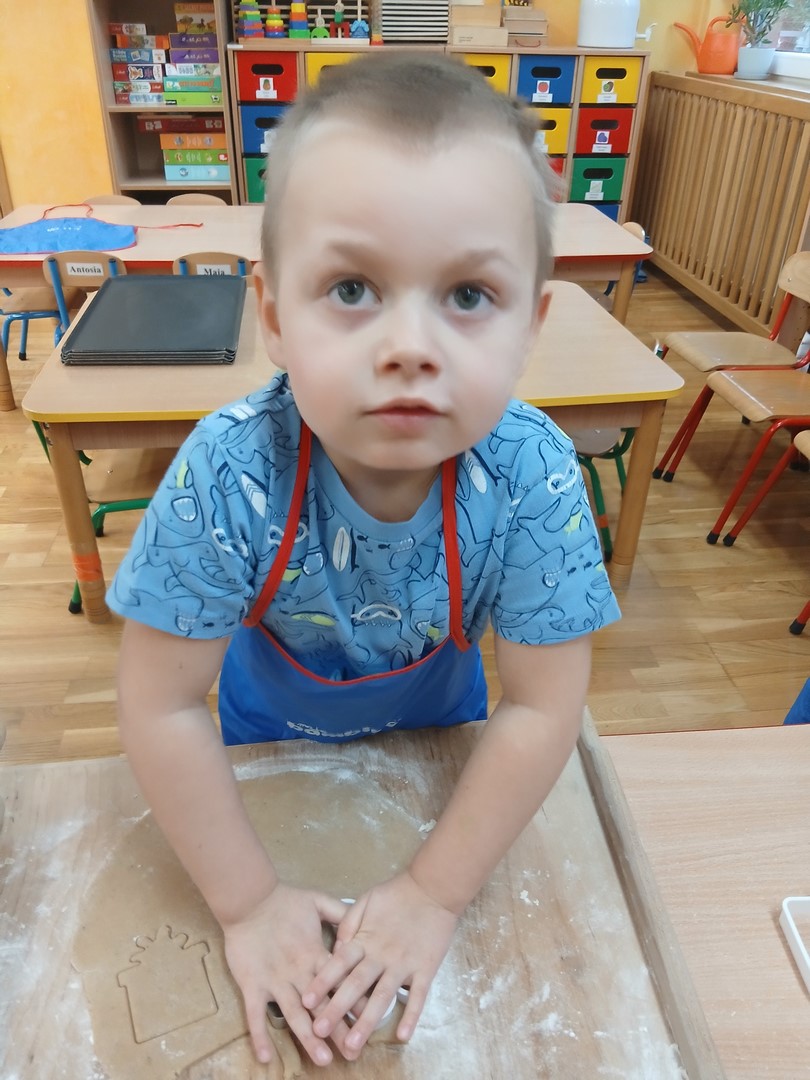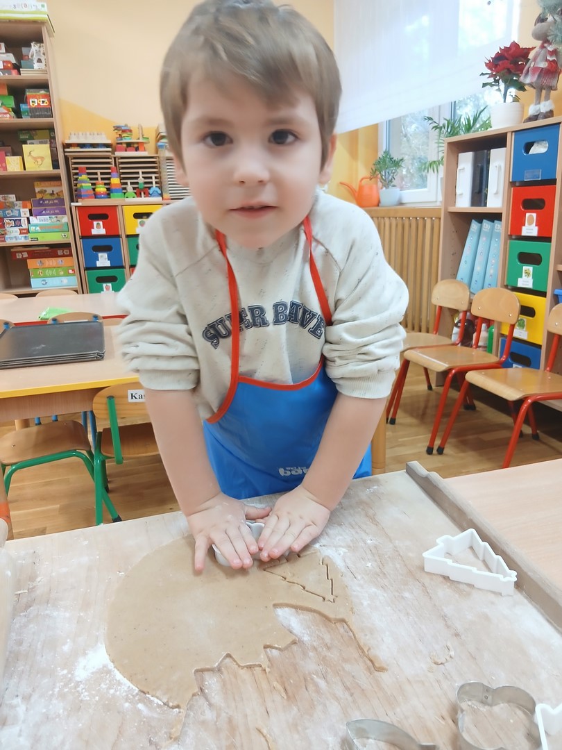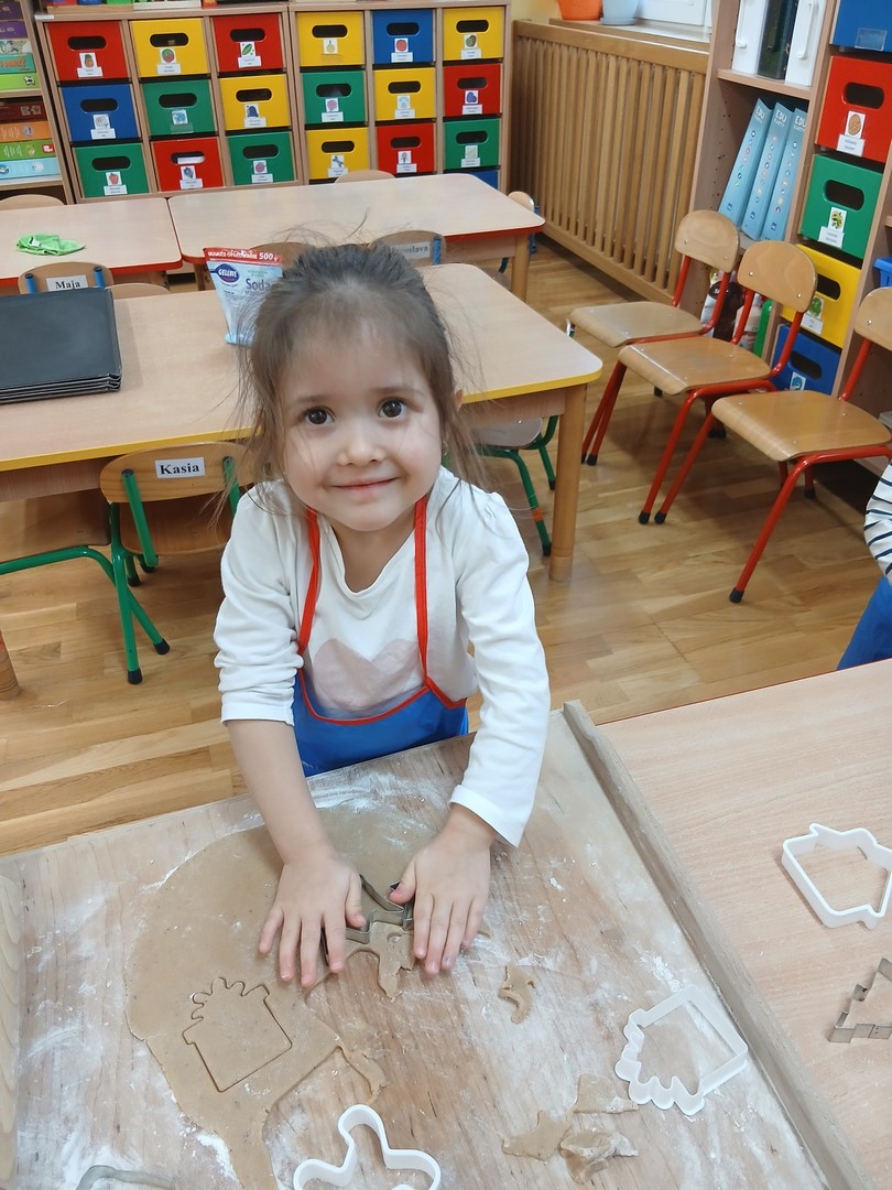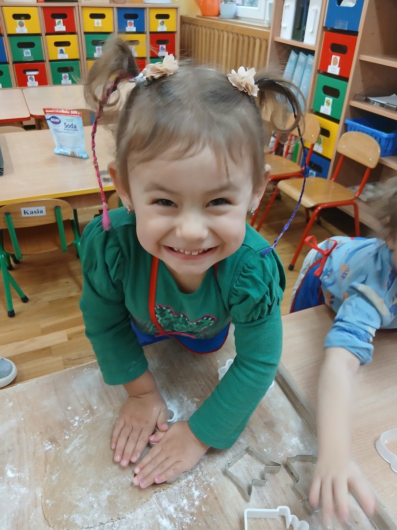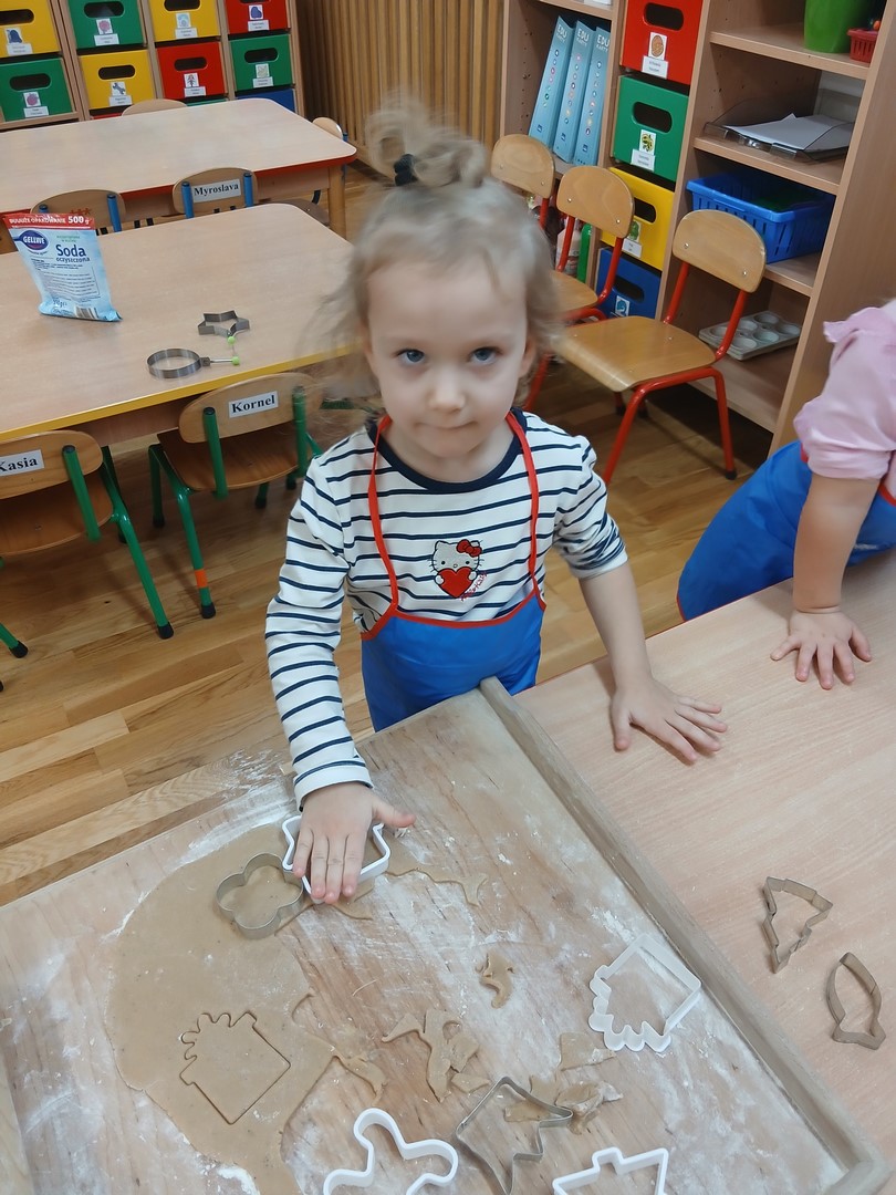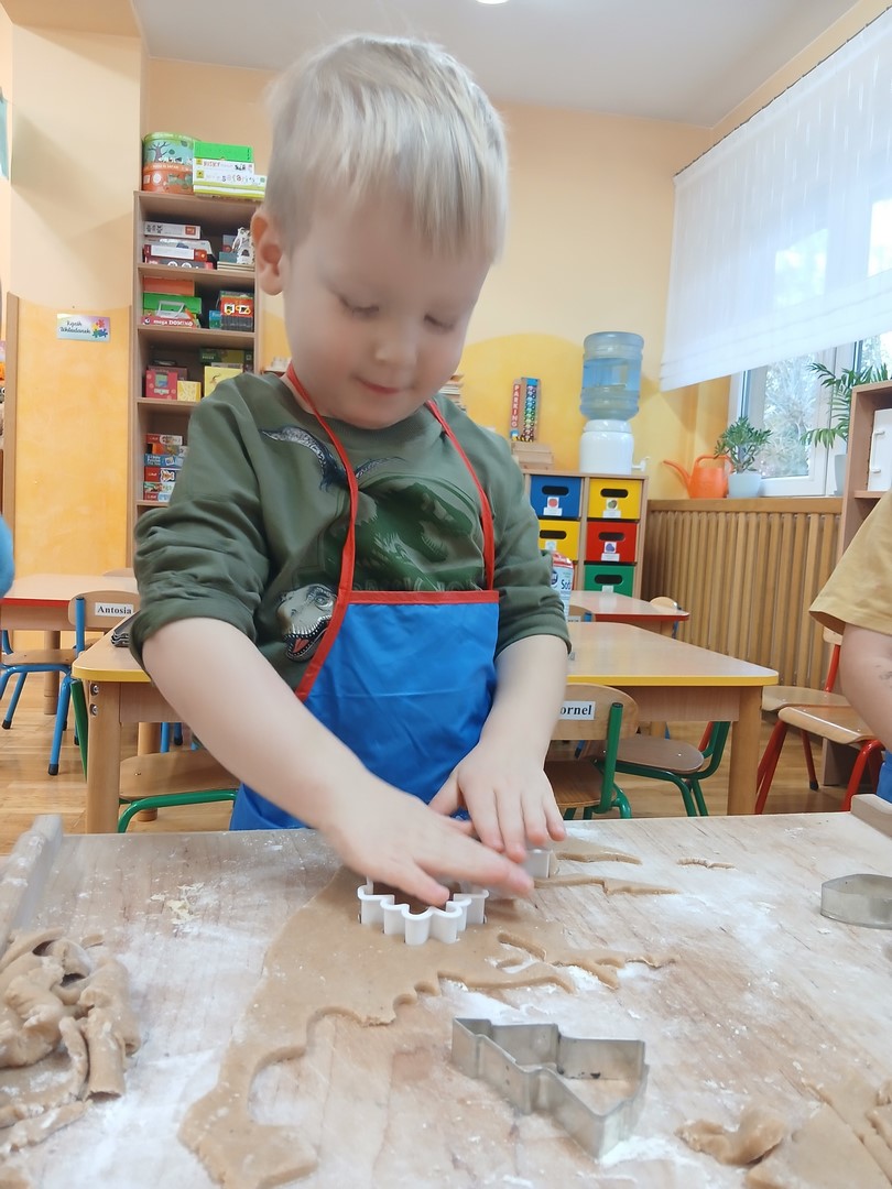 W grupie Słoneczek zapanowała wyjątkowo ciepła i świąteczna atmosfera. Dzieci z wielkim zaangażowaniem uczestniczyły w pieczeniu oraz dekorowaniu pierniczków. Najpierw poznały składniki potrzebne do przygotowania ciasta, a następnie wspólnie wałkowały, wykrawały różnorodne kształty i z niecierpliwością czekały na efekty pieczenia.