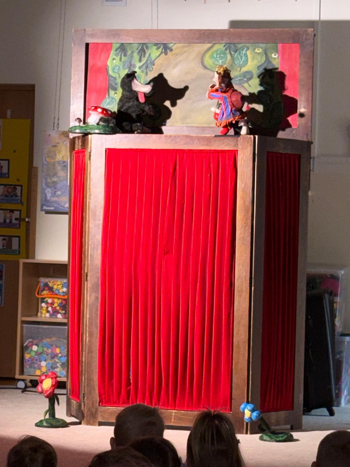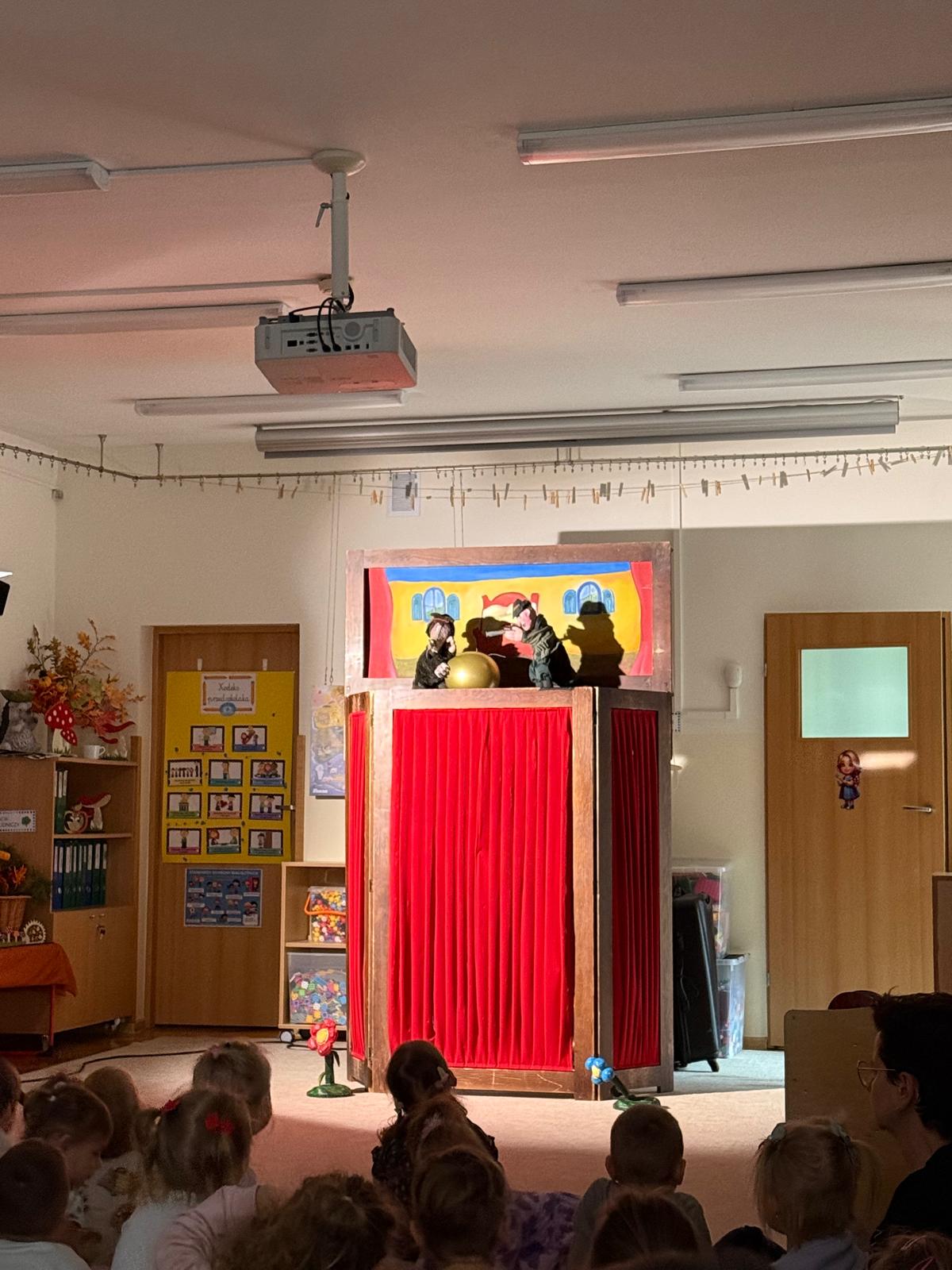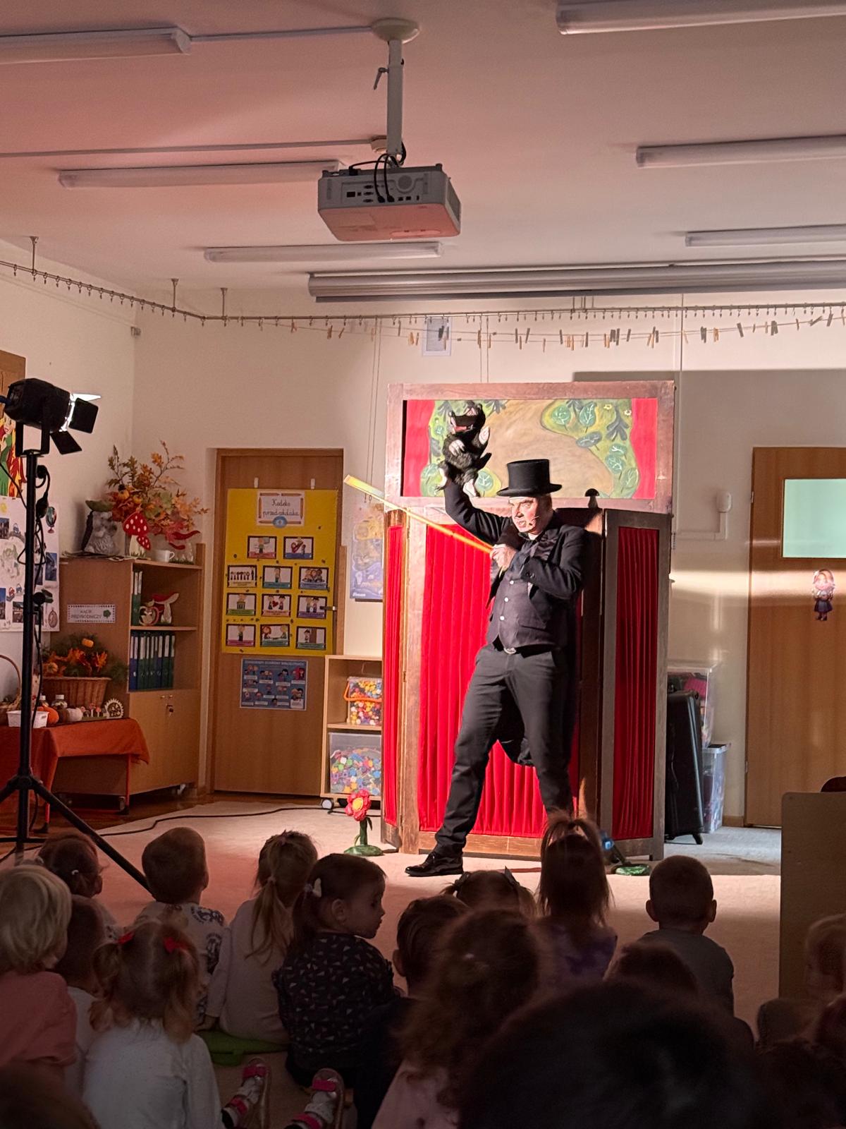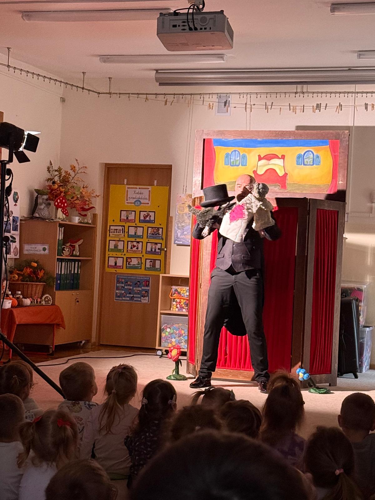 W piątek 14.11.2025 nasze przedszkole ponownie odwiedził Pan Tomasz Falkowski, który zaprezentował dzieciom niezwykły spektakl „Czerwony Kapturek”.
