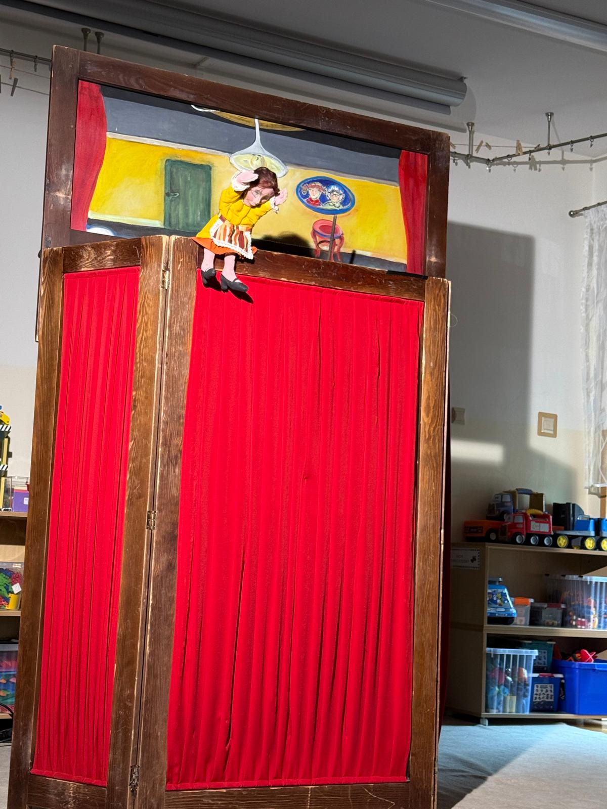 Czy dobrze znana bajka może nas jeszcze czymś zaskoczyć? Oczywiście — pod warunkiem, że jej wyczarowaniem zajmuje się prawdziwy Magik teatru! Podczas przedstawienia pojawił się wilk, babcia, mama, myśliwy oraz sam Czerwony Kapturek, który jednak w niczym nie przypominał grzecznej dziewczynki znanej z opowieści braci Grimm. Ta wersja historii pełna była humoru, niespodzianek i pomysłowych zwrotów akcji. Spektakl został przygotowany w formie tradycyjnego teatru pacynek. Pan Tomasz z niezwykłą zręcznością wcielał się w każdą z postaci, błyskawicznie zmieniając lalki na dłoniach.