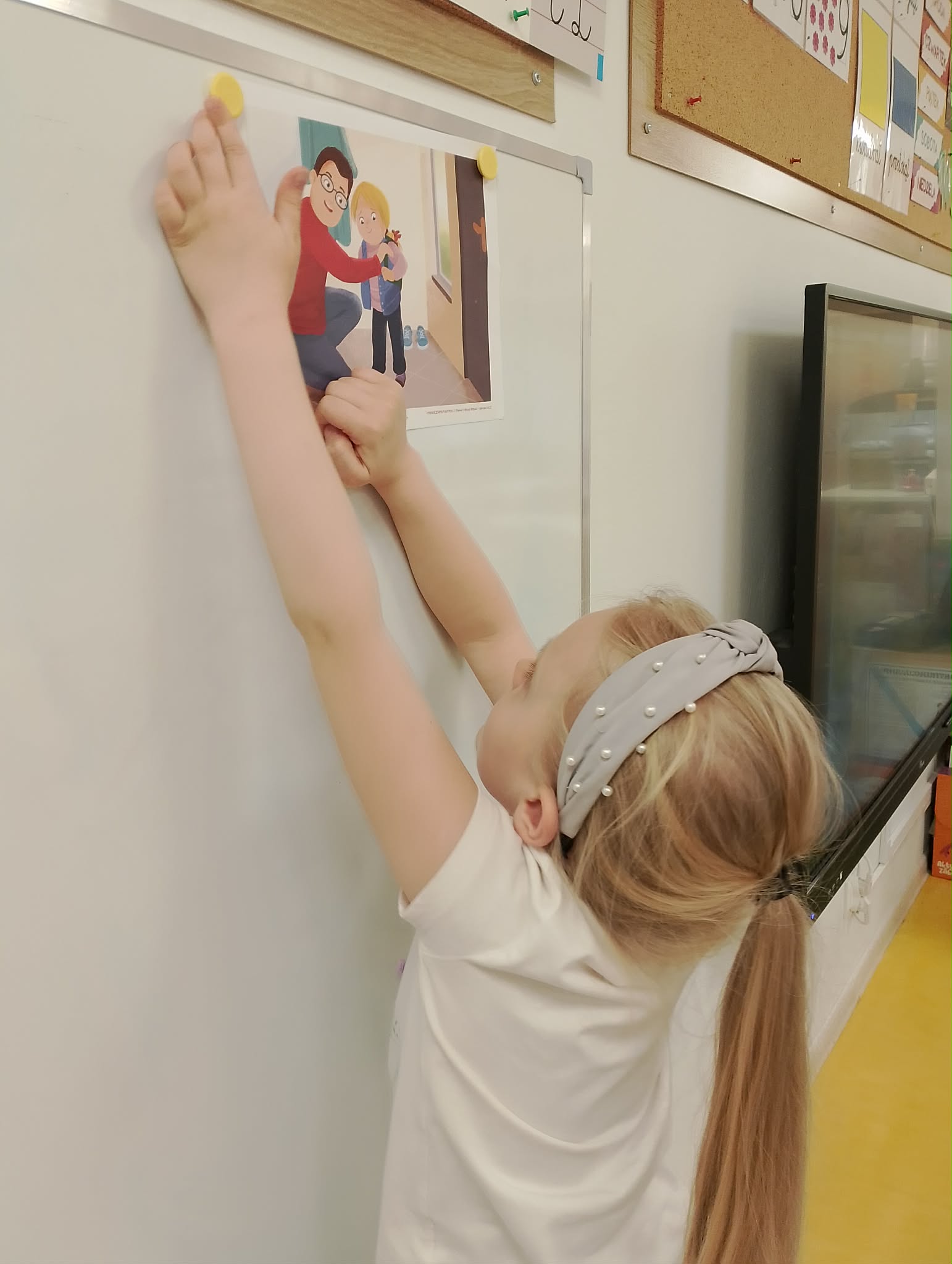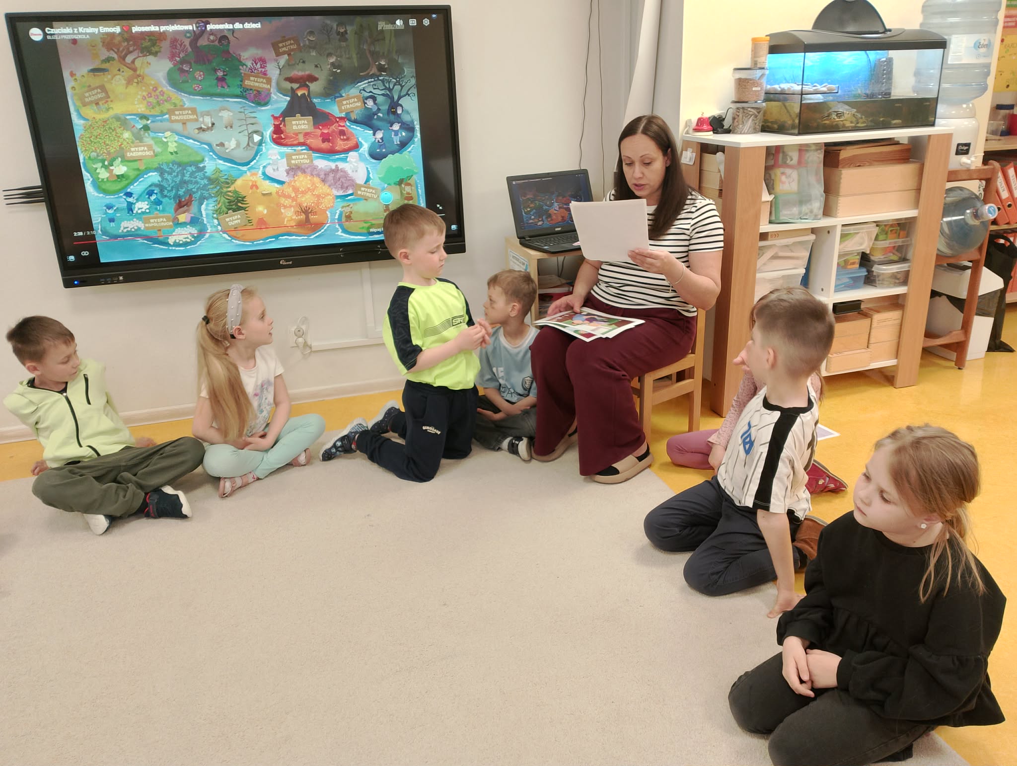 Dzieci z grupy Chmurki wzięły udział w kolejnych zajęciach z programu edukacyjnego „Czuciaki z Krainy Emocji”. Tym razem poznały nową postać – Tremka z Wyspy Wstydu, który wprowadził je w świat emocji związanych ze wstydem i tremą. Zajęcia miały na celu pomóc dzieciom lepiej zrozumieć te uczucia oraz nauczyć się, jak sobie z nimi radzić w codziennych sytuacjach.
