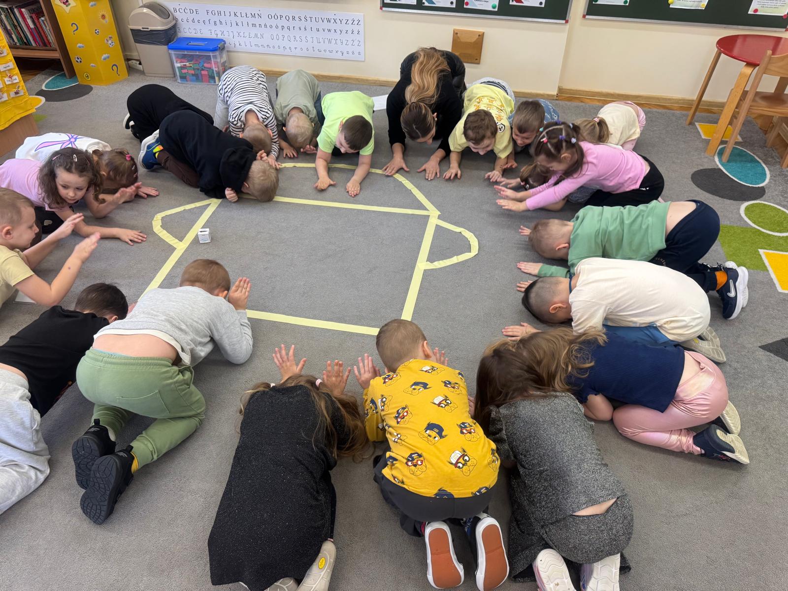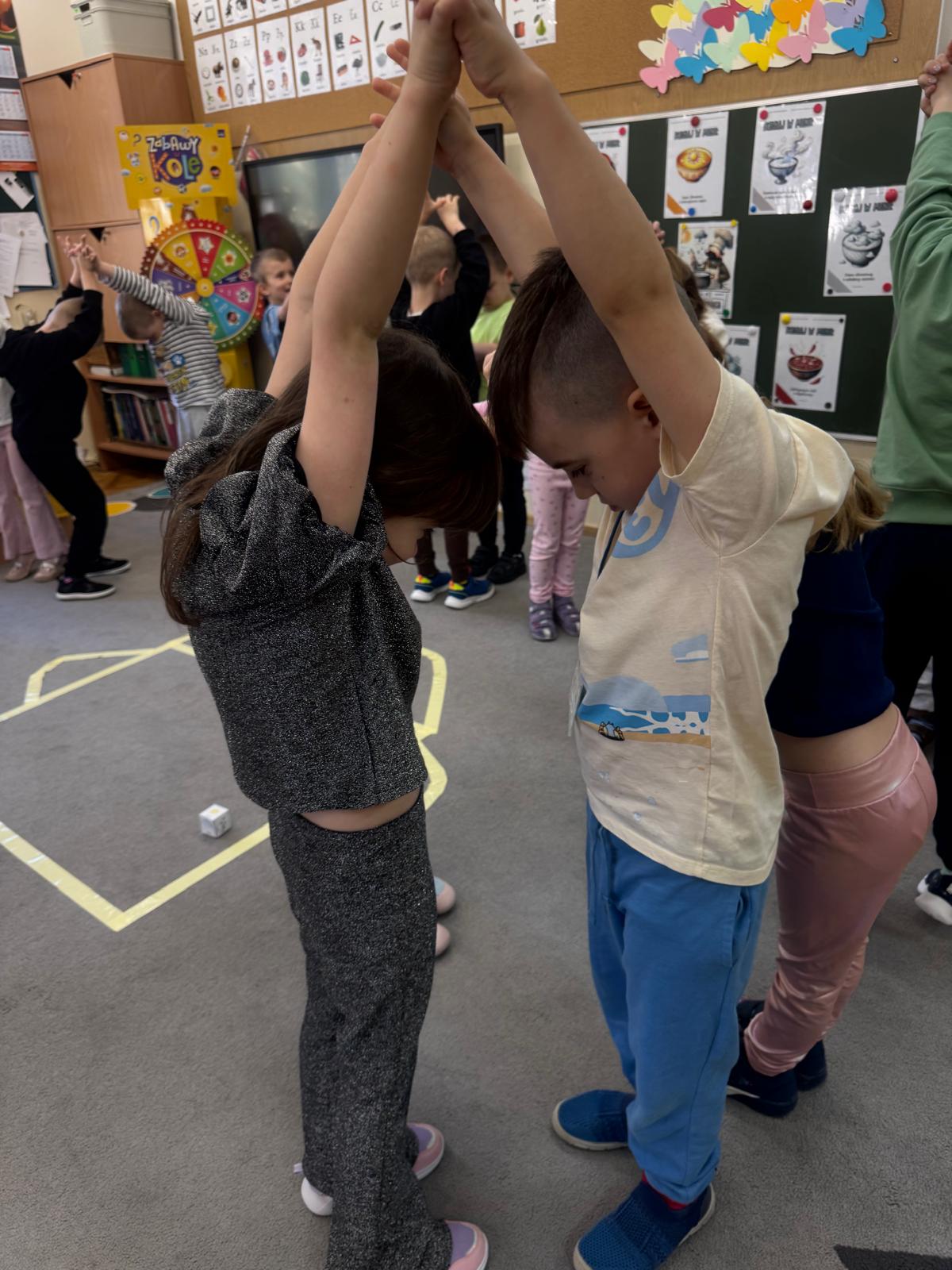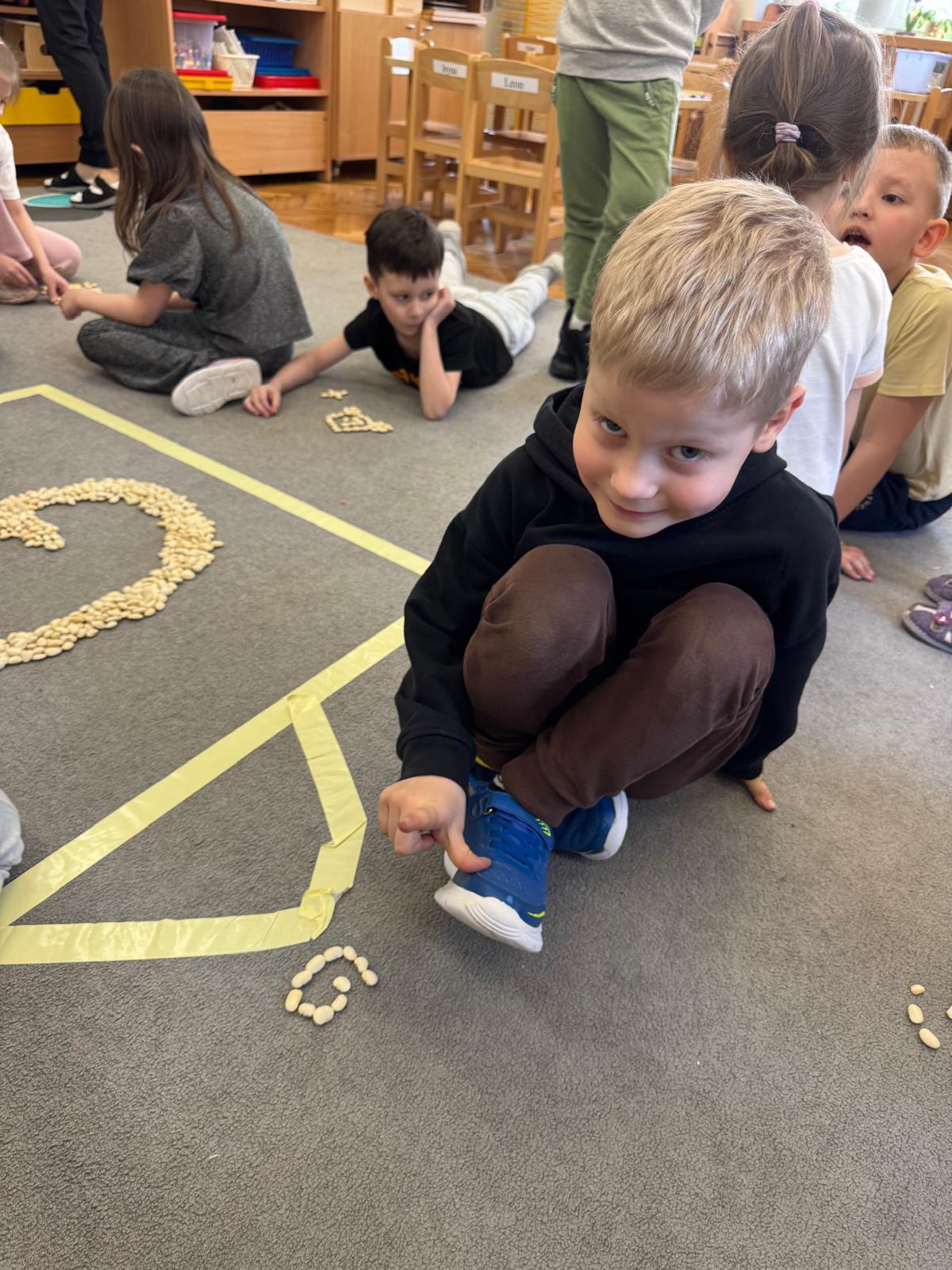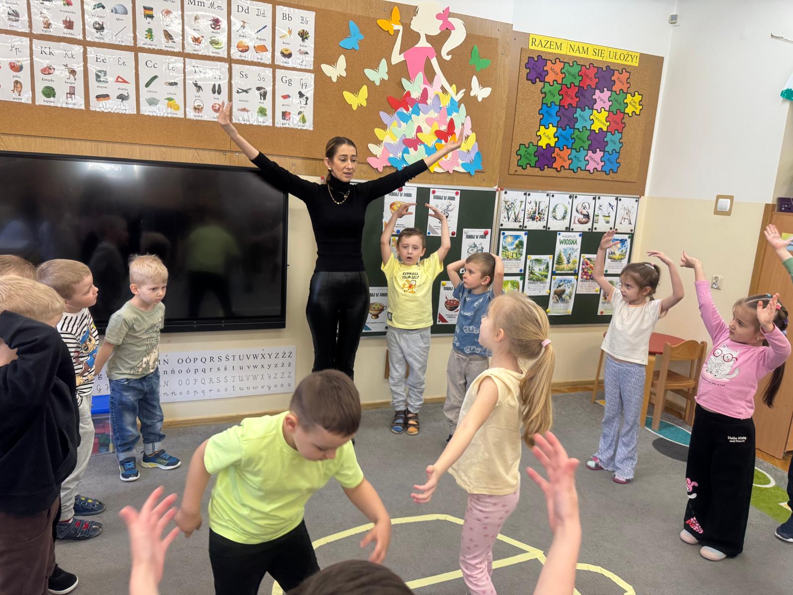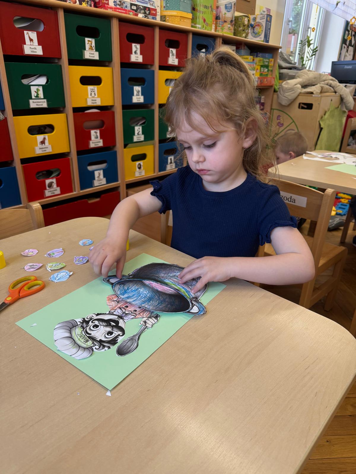 Na początku zajęć dzieci poznały znaczenie tego powiedzenia. Poprzez zabawę w zagadki dowiedziały się, jak zmienna potrafi być pogoda w marcu - od słońca, przez deszcz, aż po śnieg. Przedszkolaki świetnie poradziły sobie z ich odgadywaniem, wykazując się dużą wiedzą i spostrzegawczością. Następnie wspólnie bawiliśmy się w grę z kostką, na której znajdowały się symbole pogodowe. Dzieci z radością rozpoznawały wylosowane zjawiska i aktywnie uczestniczyły w zabawie. Utrwaliliśmy również poznaną w tym tygodniu literę „g” - dzieci z dużym zaangażowaniem układały jej kształt z ziaren grochu. Kolejnym punktem dnia była praca plastyczna - mali artyści stworzyli kucharzy mieszających w garnkach różne rodzaje pogody. Powstały bardzo pomysłowe i kolorowe prace. Na zakończenie zajęć dzieci wzięły udział w zabawie ruchowej z chustą animacyjną. Ich zadaniem było utrzymanie „deszczyku” na chuście, co sprawiło wszystkim wiele radości i śmiechu.