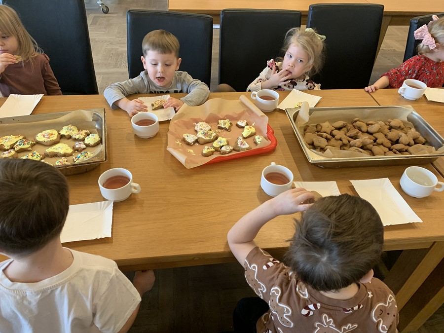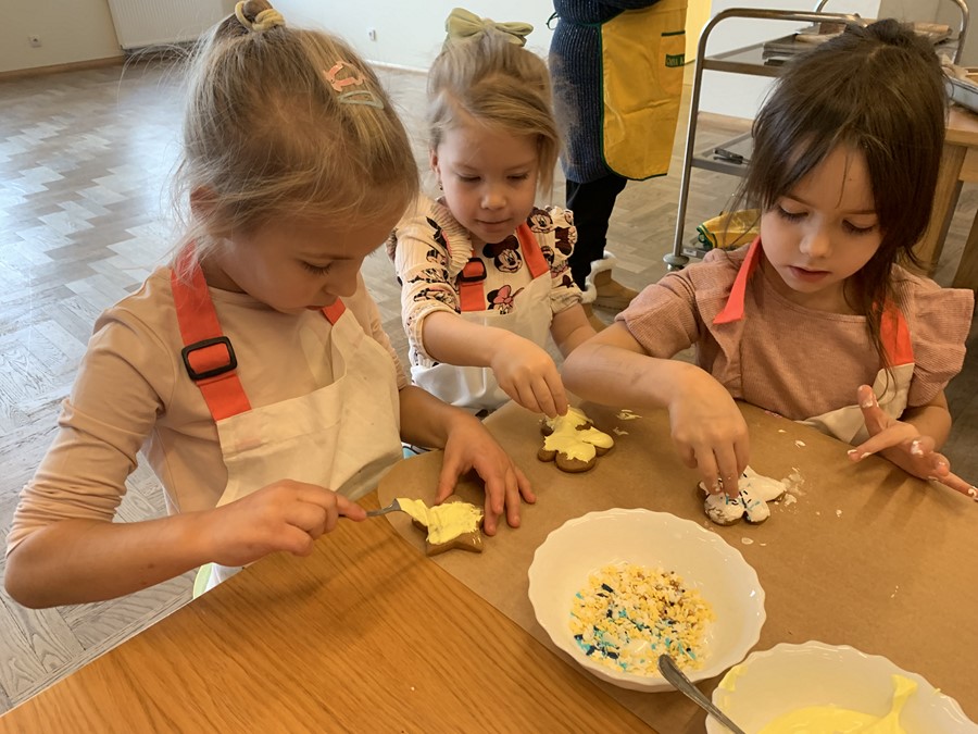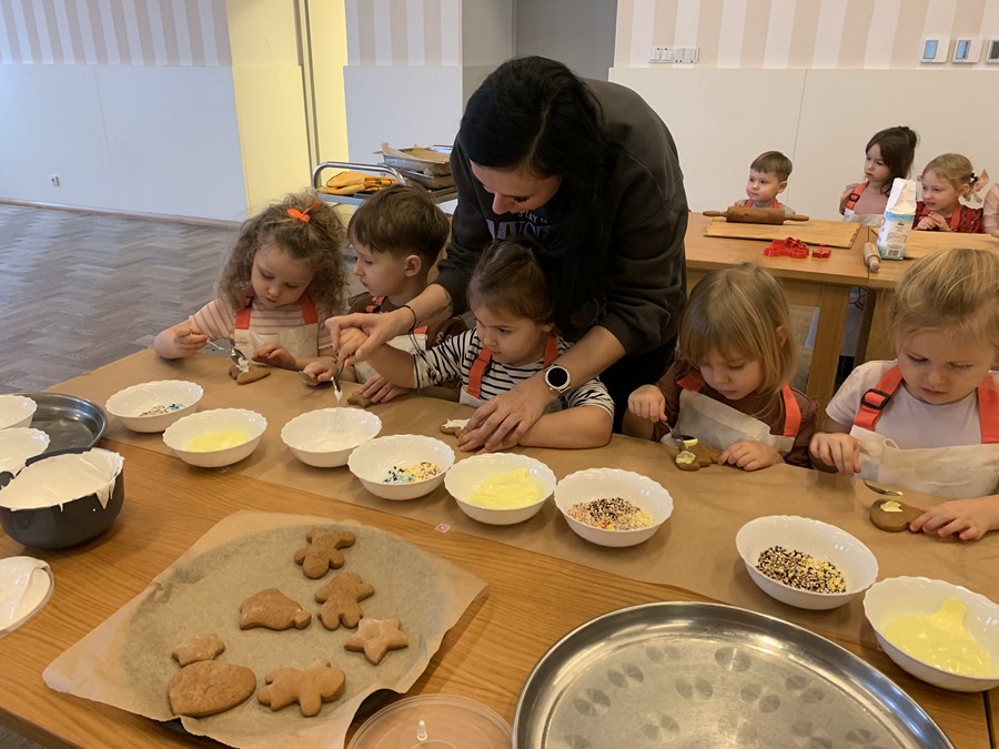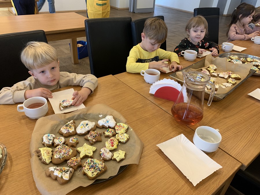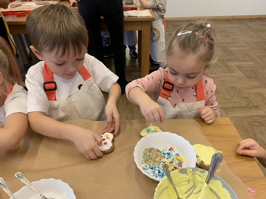 Grudzień to magiczny czas, kiedy wielkimi krokami zbliżają się Święta Bożego Narodzenia. To czas pełen radości, piękna, magii i czarów. Aby podkreślić wyjątkowy charakter tych świąt i przygotowań do nich odbyliśmy warsztaty pierniczkowe z Kołem Gospodyń „Woliczanki”. 11 grudnia stawiliśmy się w Domu Kultury na Wolicy, gdzie pod okiem pań z KGW dzieci wałkowały ciasto, wykrawały kształty oraz dekorowały upieczone pierniczki kolorowymi lukrami i posypkami. W sali panowała ciepła, radosna atmosfera, a zapach korzennych przypraw wprowadzał wszystkich w świąteczny nastrój.