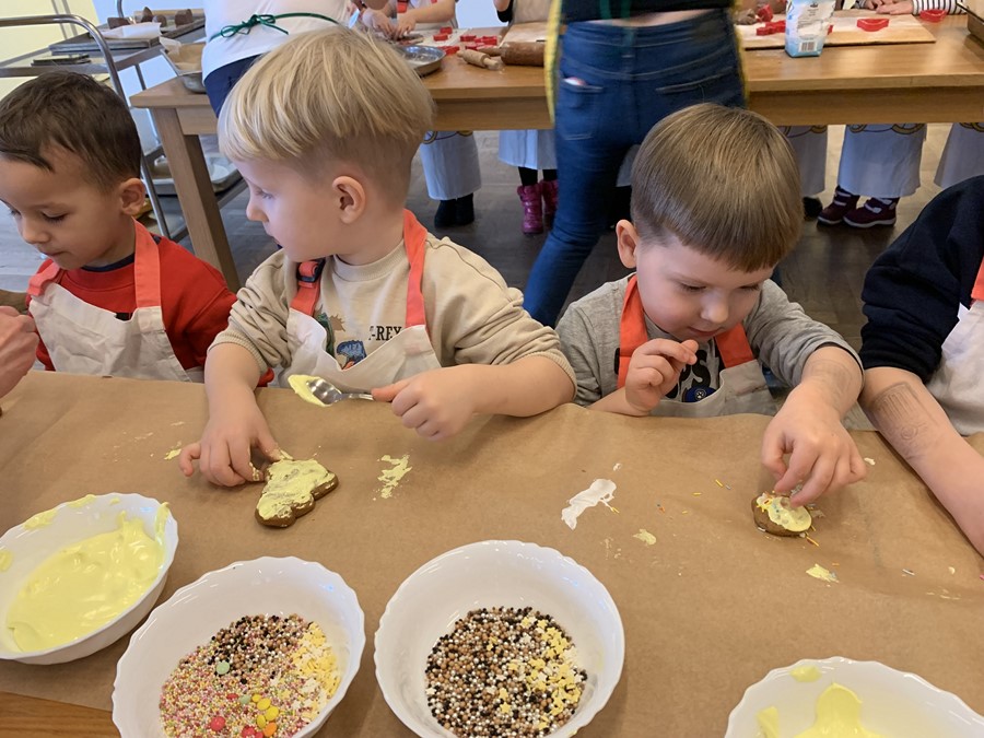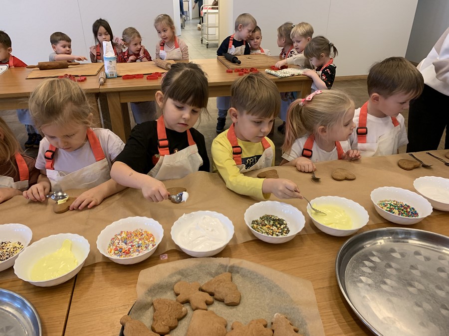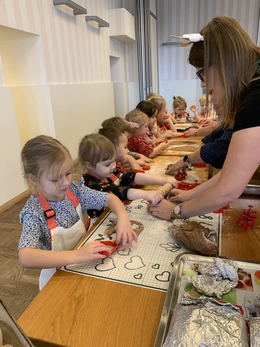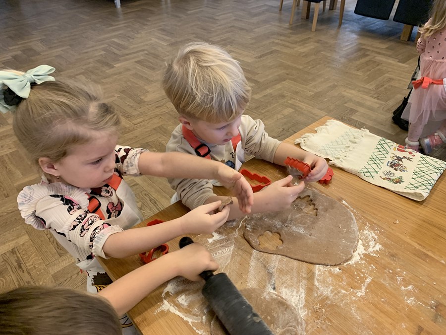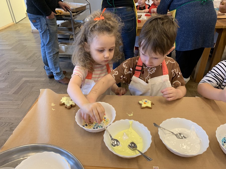 Grudzień to magiczny czas, kiedy wielkimi krokami zbliżają się Święta Bożego Narodzenia. To czas pełen radości, piękna, magii i czarów. Aby podkreślić wyjątkowy charakter tych świąt i przygotowań do nich odbyliśmy warsztaty pierniczkowe z Kołem Gospodyń „Woliczanki”. 11 grudnia stawiliśmy się w Domu Kultury na Wolicy, gdzie pod okiem pań z KGW dzieci wałkowały ciasto, wykrawały kształty oraz dekorowały upieczone pierniczki kolorowymi lukrami i posypkami. W sali panowała ciepła, radosna atmosfera, a zapach korzennych przypraw wprowadzał wszystkich w świąteczny nastrój.