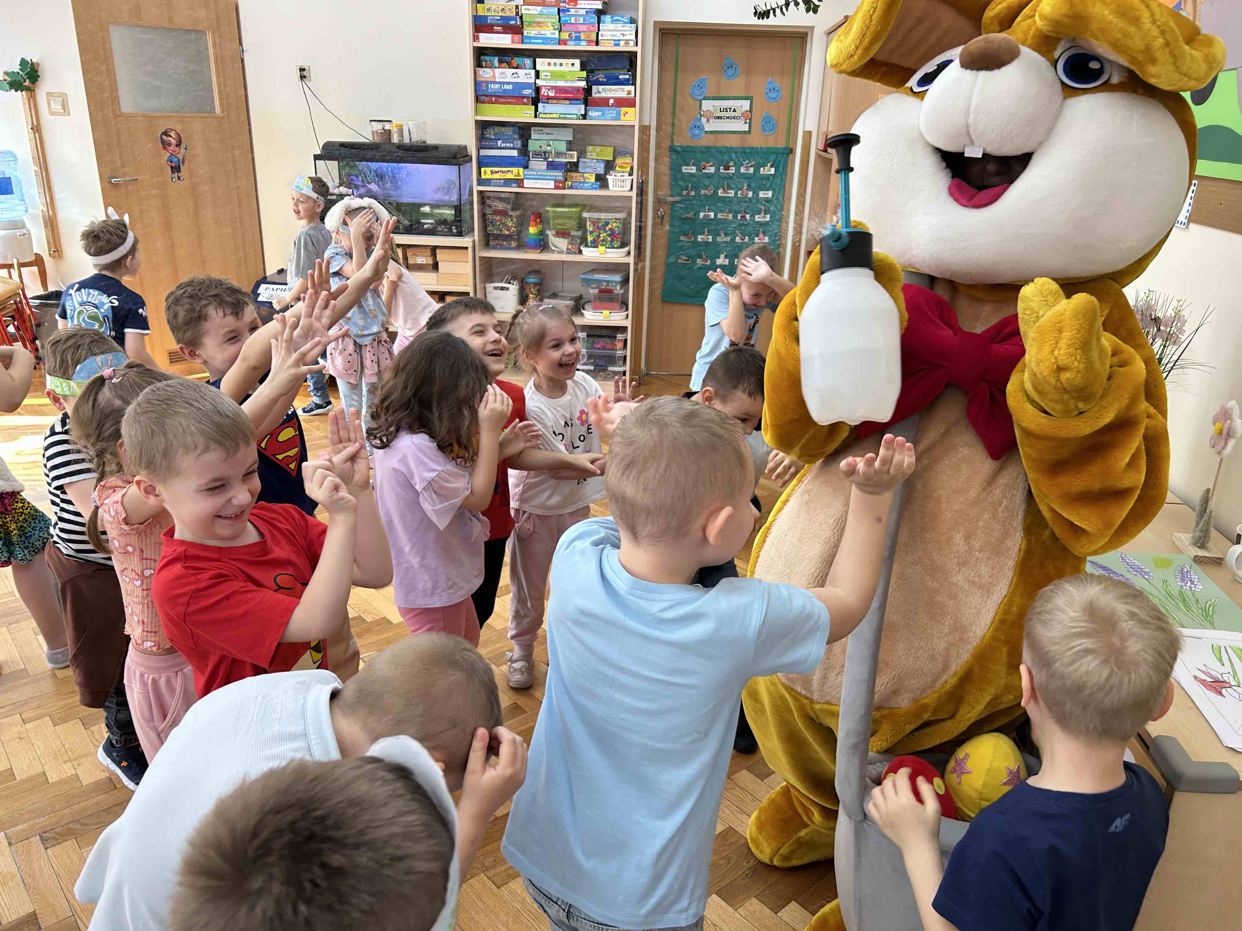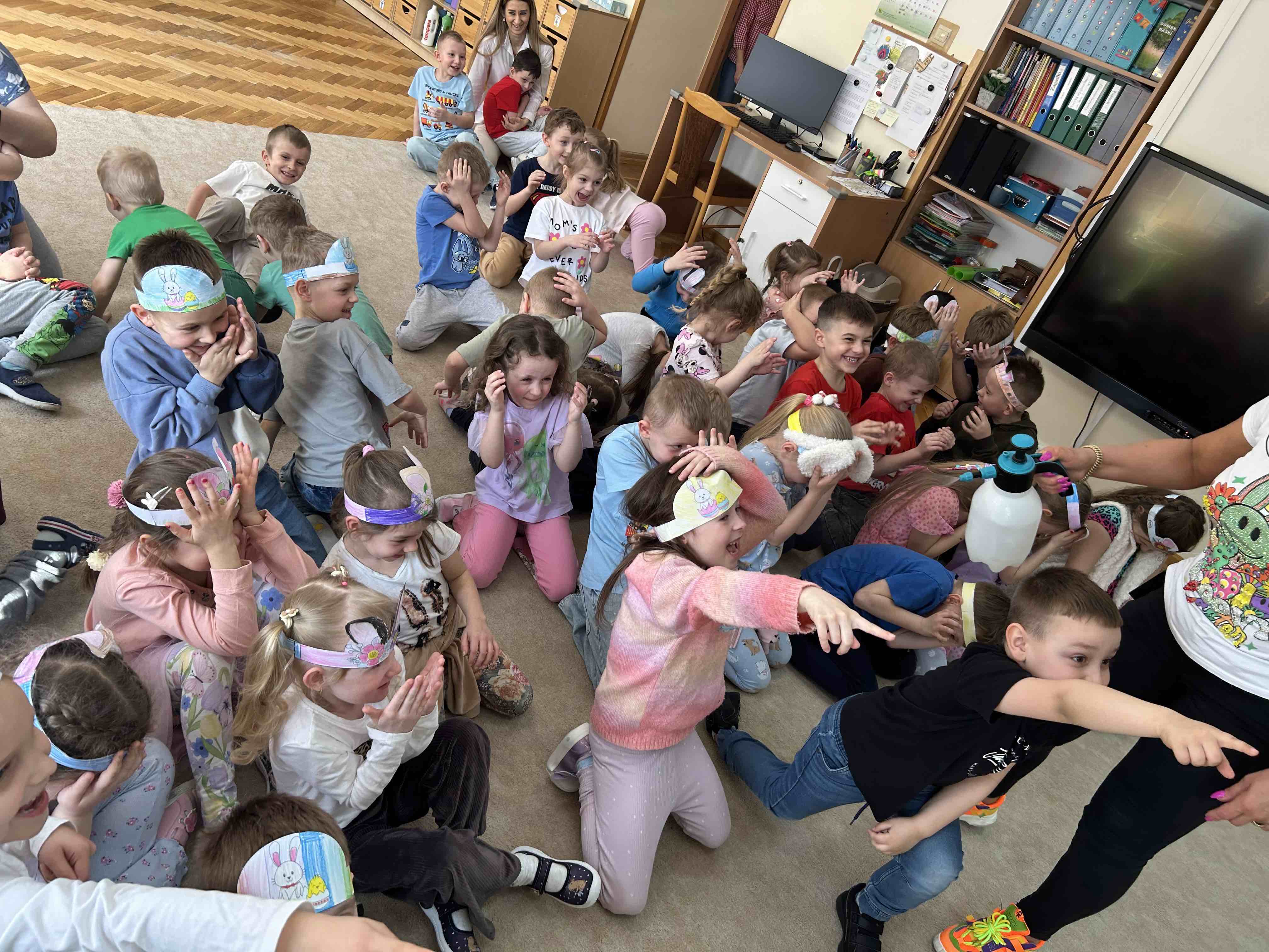 W naszym przedszkolu pojawił się wyjątkowy gość - wielkanocny zajączek! Dzieci z ogromną radością powitały go podczas świątecznego spotkania pełnego kolorów, muzyki i uśmiechu. Zajączek opowiedział o swoich przygotowaniach do Wielkanocy, a następnie zaprosił wszystkich do wspólnej zabawy.