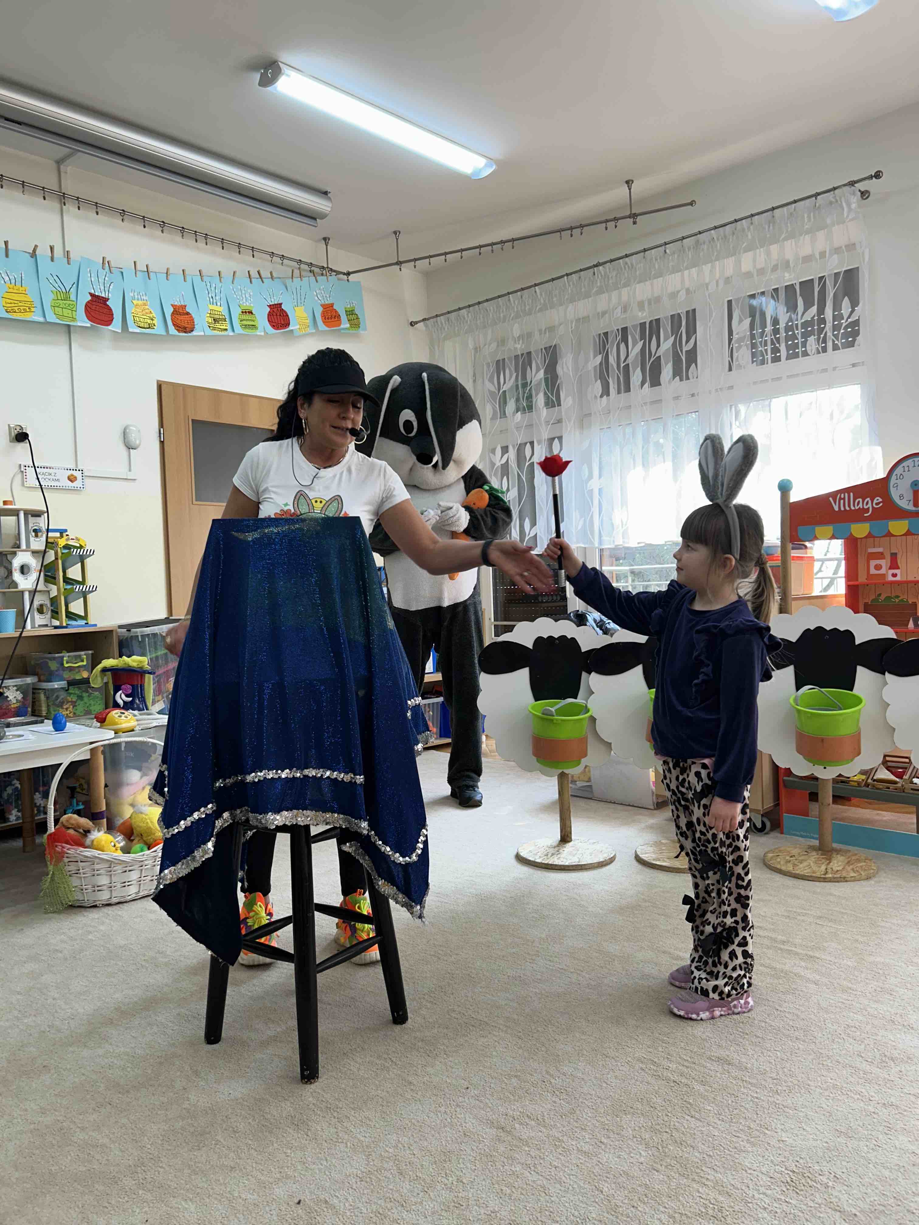 Na zakończenie czekała prawdziwa niespodzianka - pokaz magii, który zachwycił zarówno najmłodszych, jak i dorosłych. Dzieci z zapartym tchem obserwowały niezwykłe sztuczki, próbując odkryć ich sekrety. To był dzień pełen wrażeń, który na długo pozostanie w pamięci naszych przedszkolaków.
