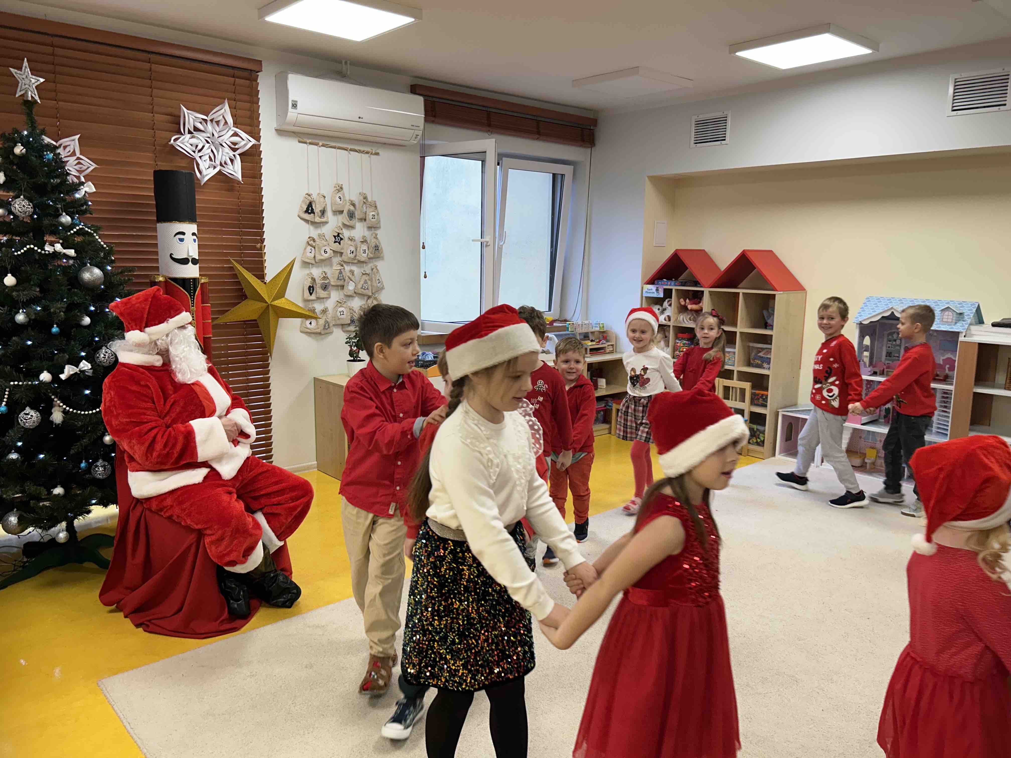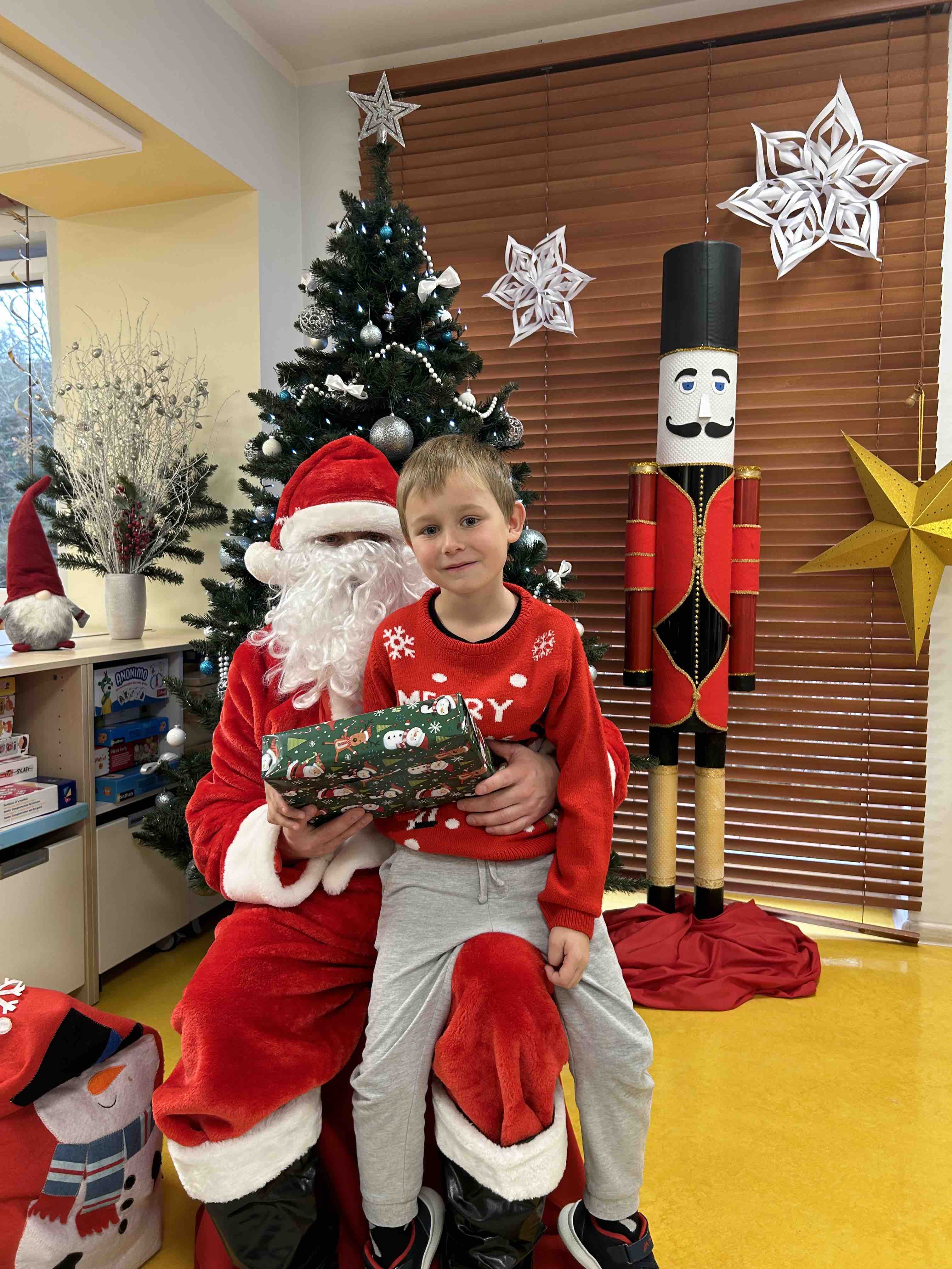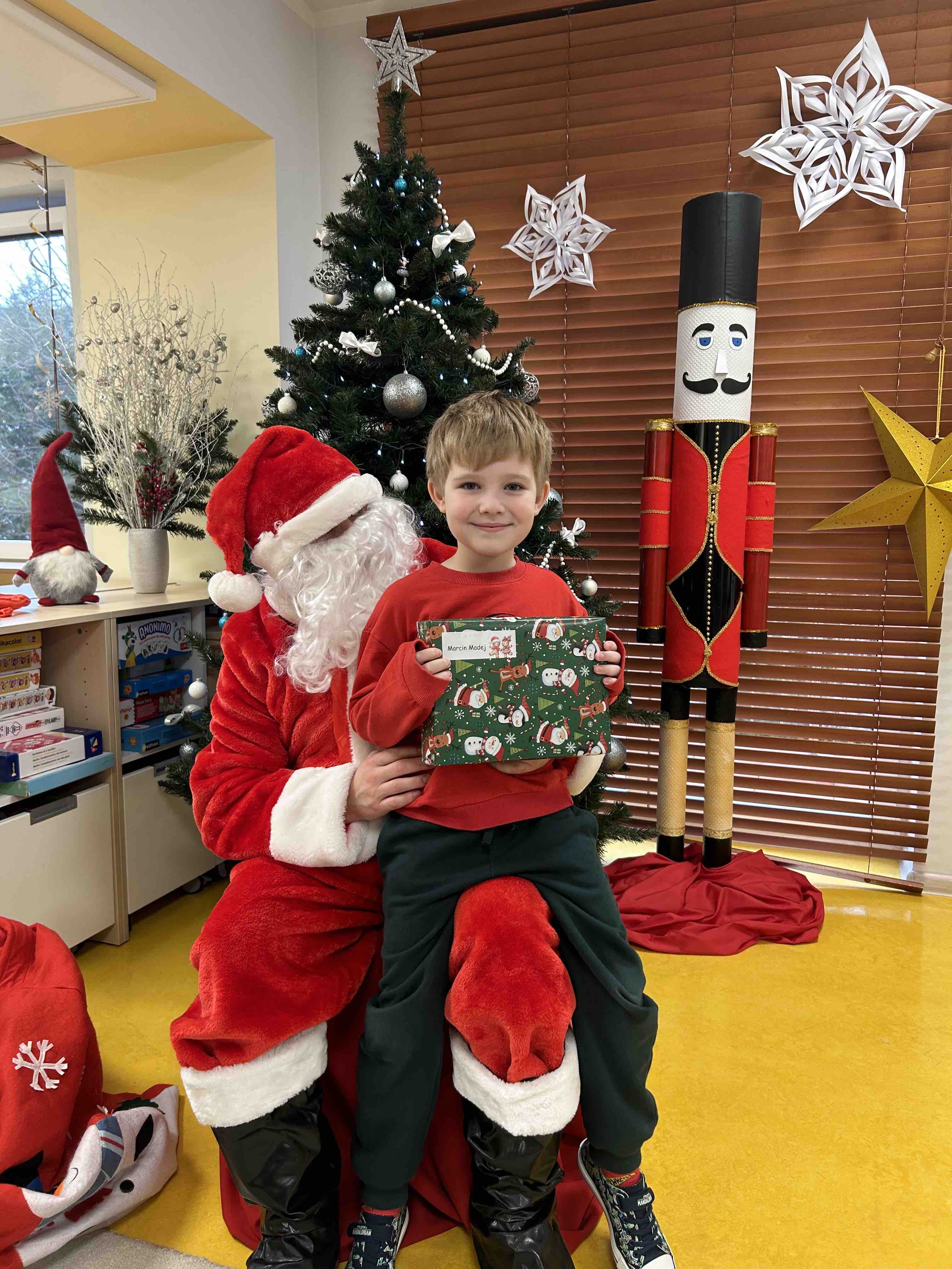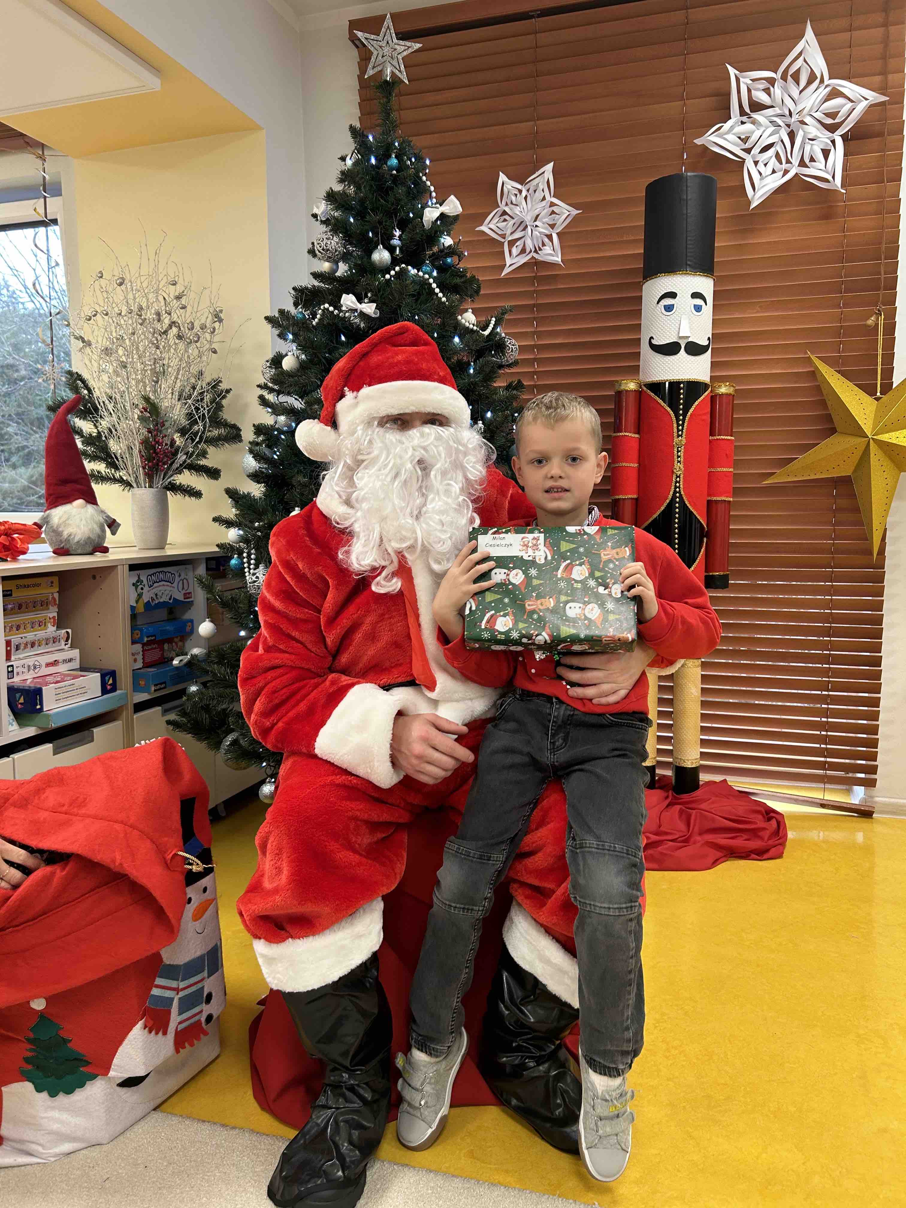 Zanim się zjawił dzieci z grupy chmurek przygotowały dla niego słodką niespodziankę oraz przyozdobiły salę. 6 latki zaprezentowały się śpiewając i tańcząc piosenkę pt. "Mikołaj kochany". Następnie wszystkie dzieci otrzymały prezenty. Niektóre przedszkolaki przygotowały dla Świętego Mikołaja piękne rysunki, które mu wręczyły.