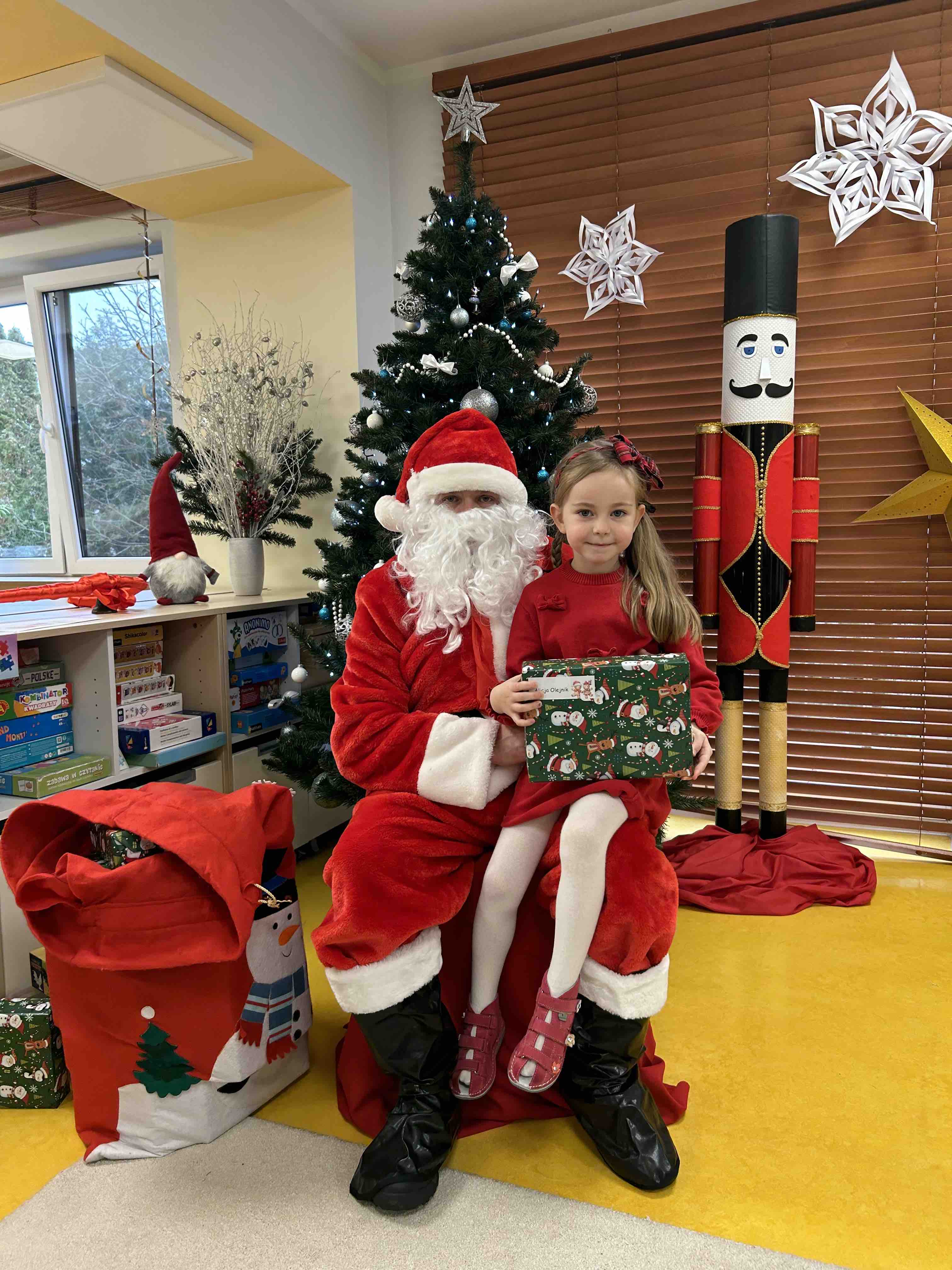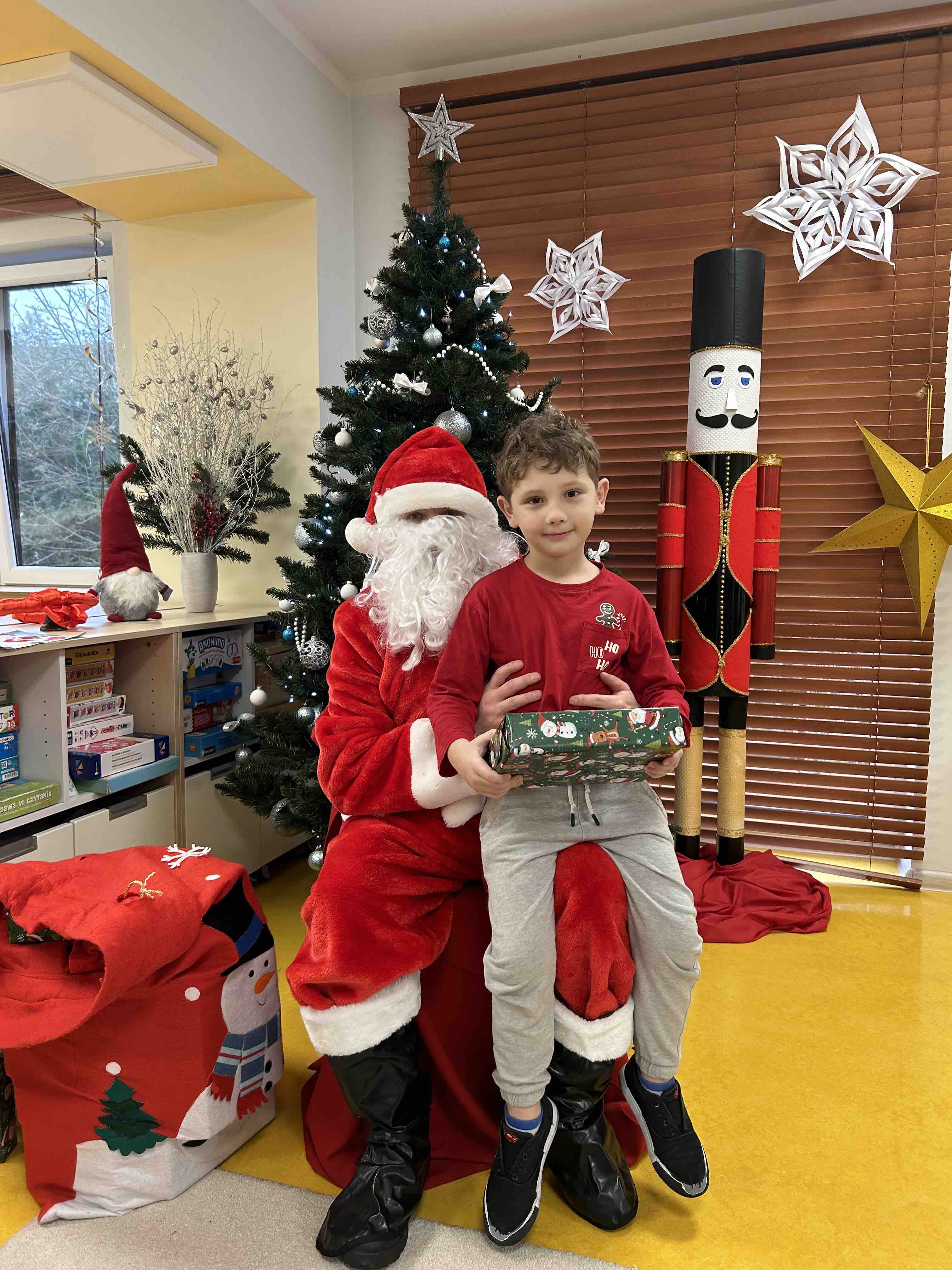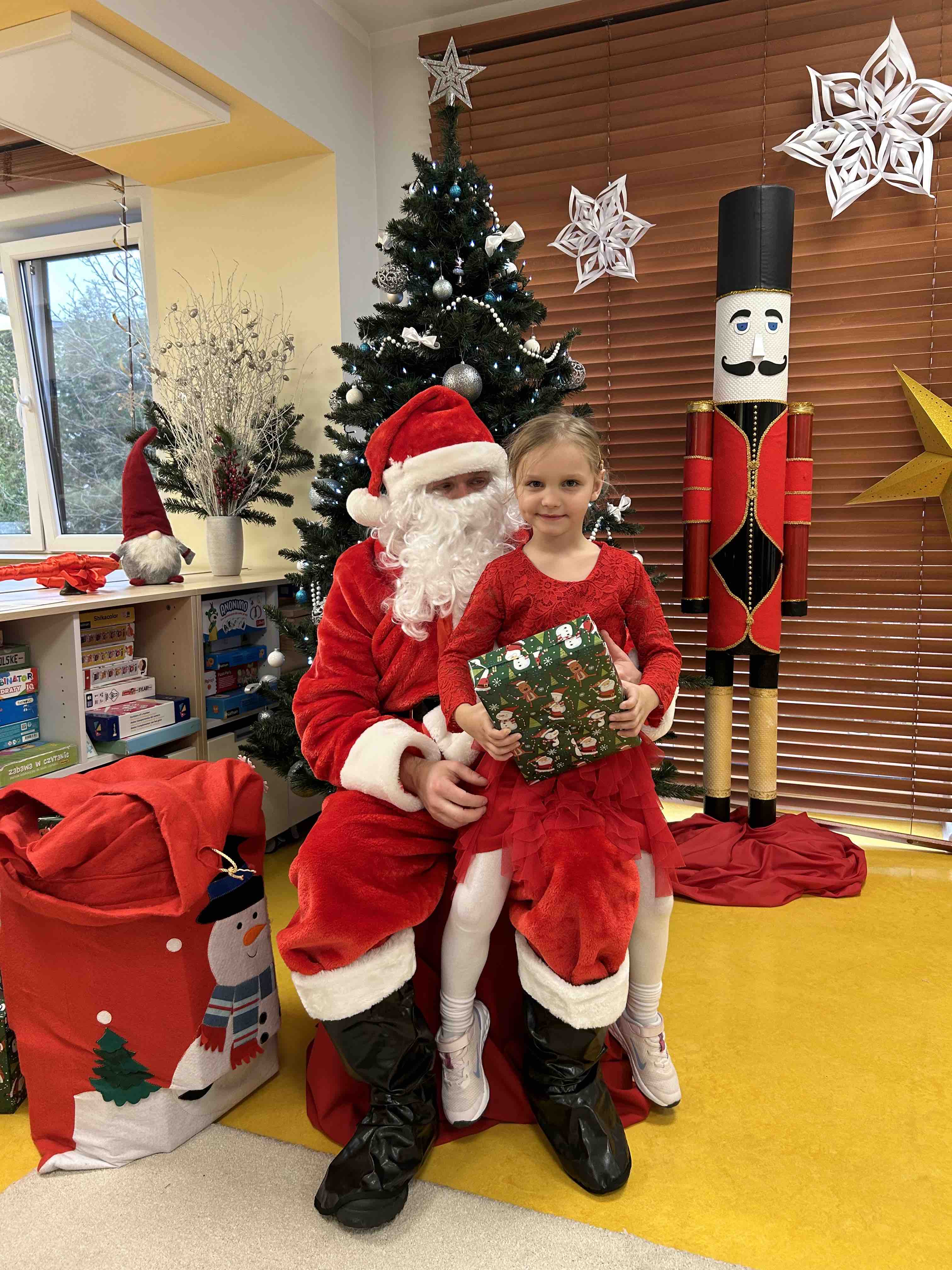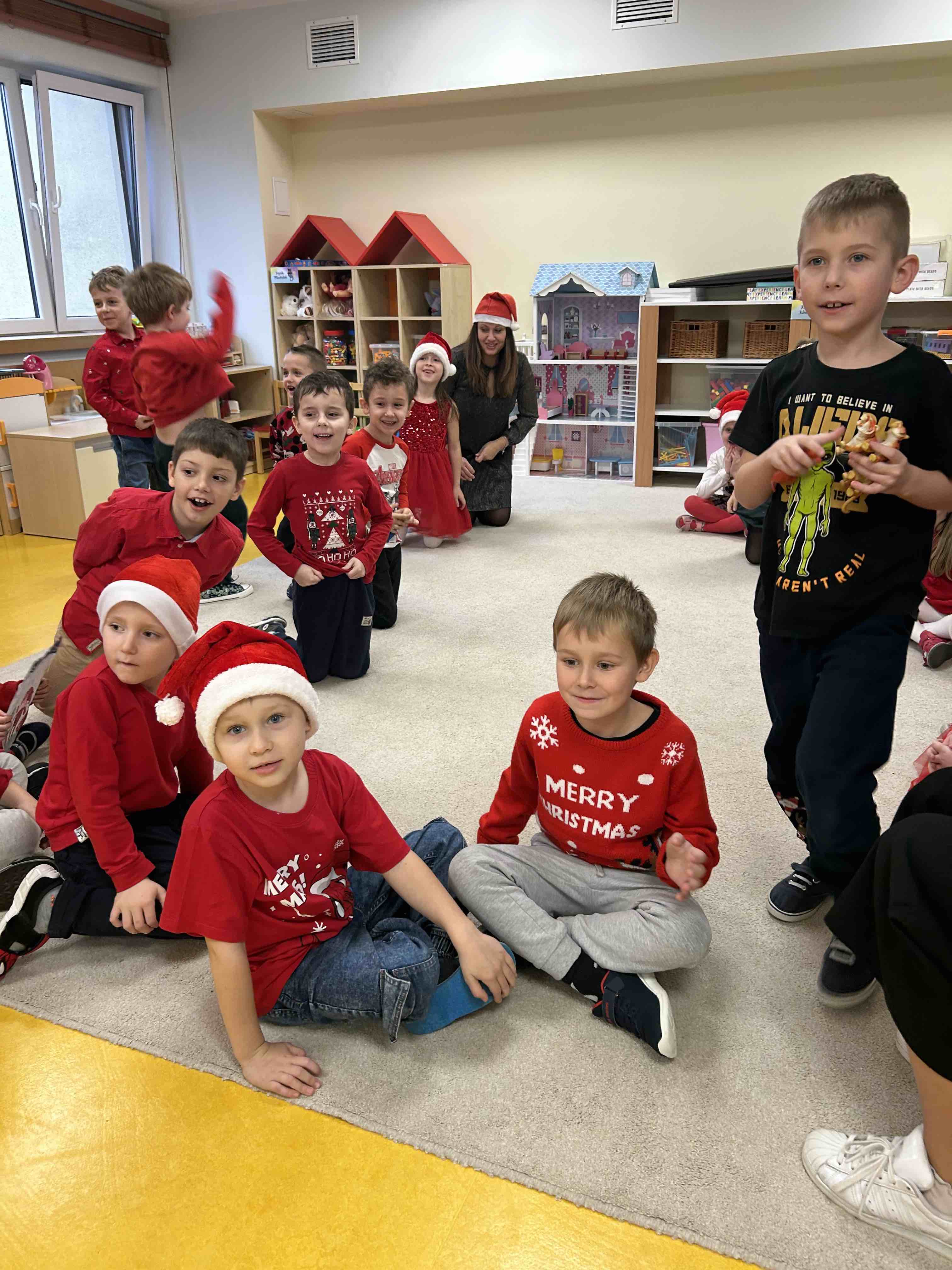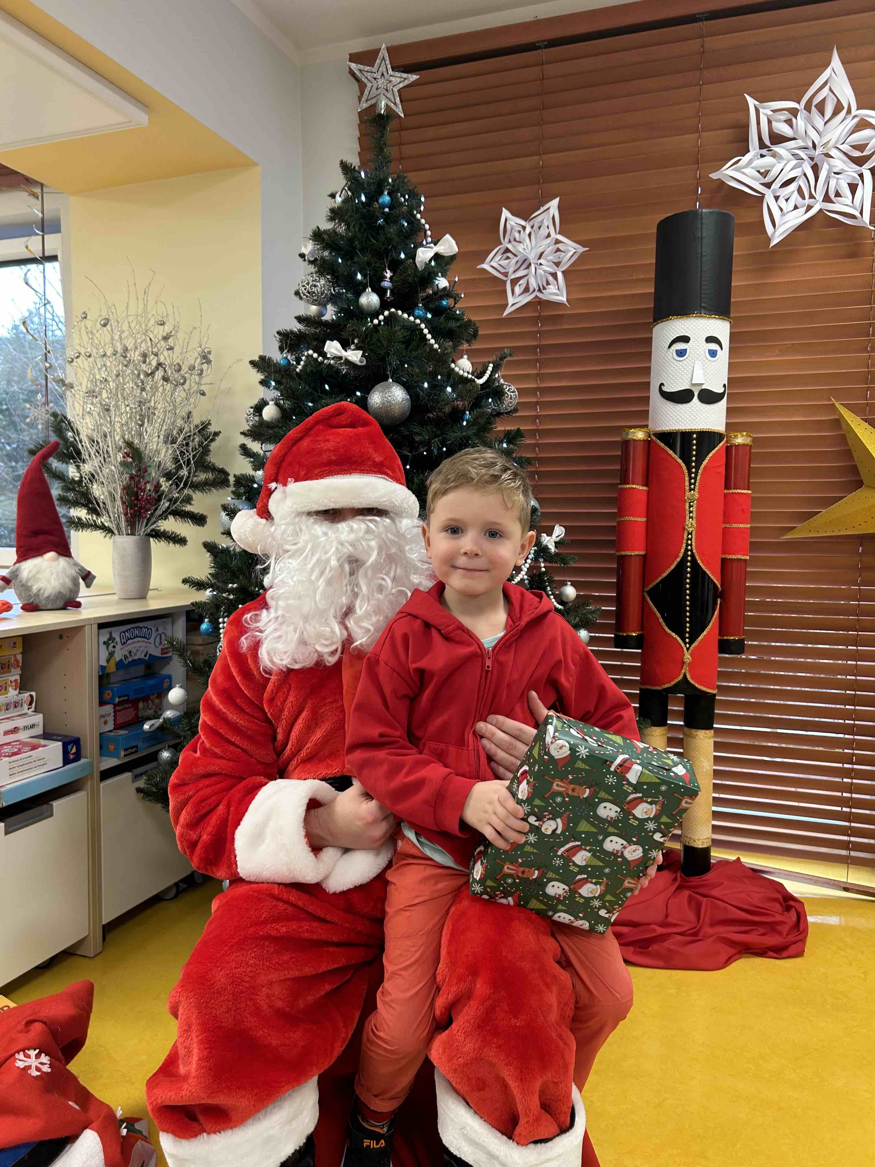 Zanim się zjawił dzieci z grupy chmurek przygotowały dla niego słodką niespodziankę oraz przyozdobiły salę. 6 latki zaprezentowały się śpiewając i tańcząc piosenkę pt. "Mikołaj kochany". Następnie wszystkie dzieci otrzymały prezenty. Niektóre przedszkolaki przygotowały dla Świętego Mikołaja piękne rysunki, które mu wręczyły.
