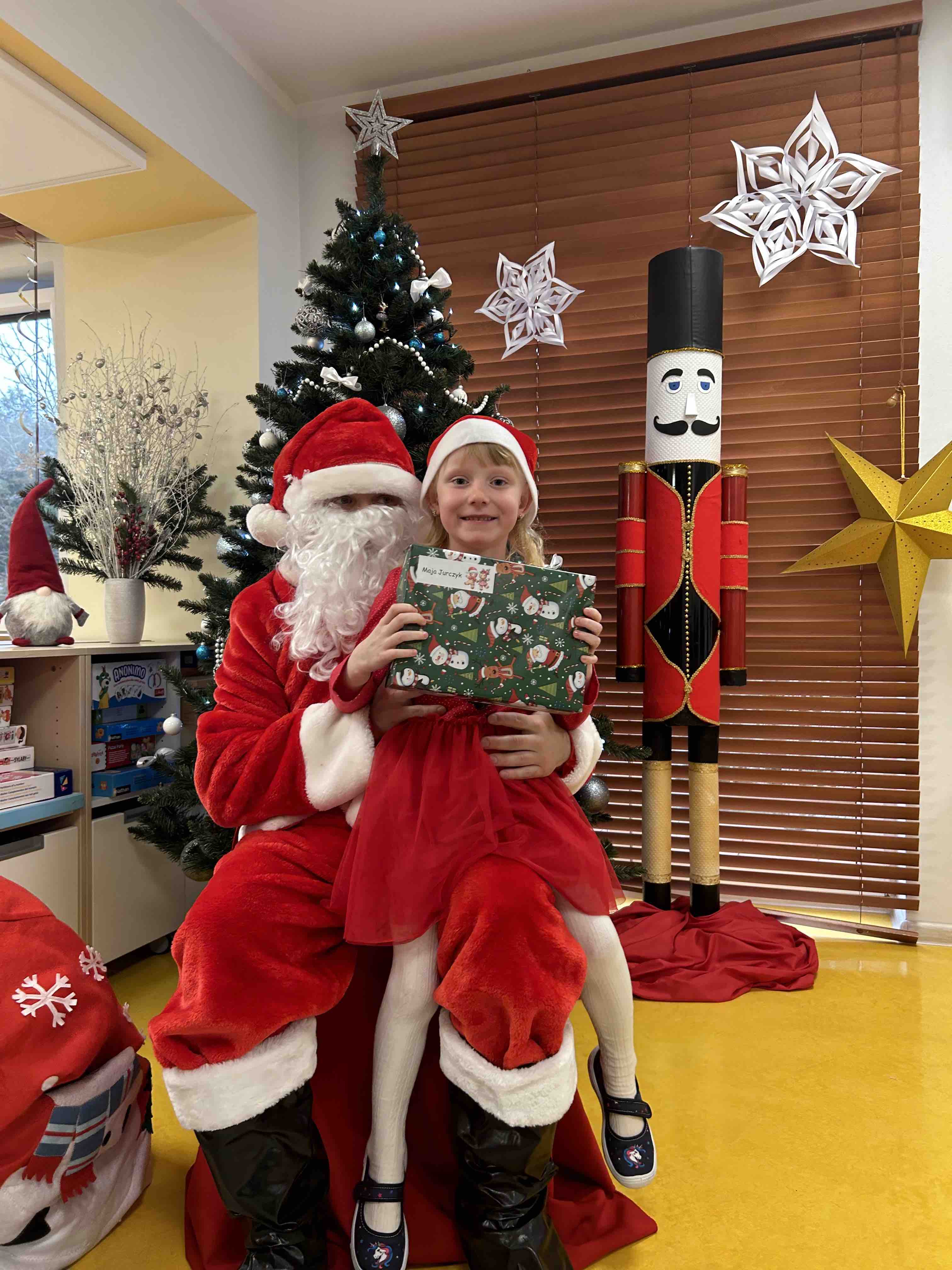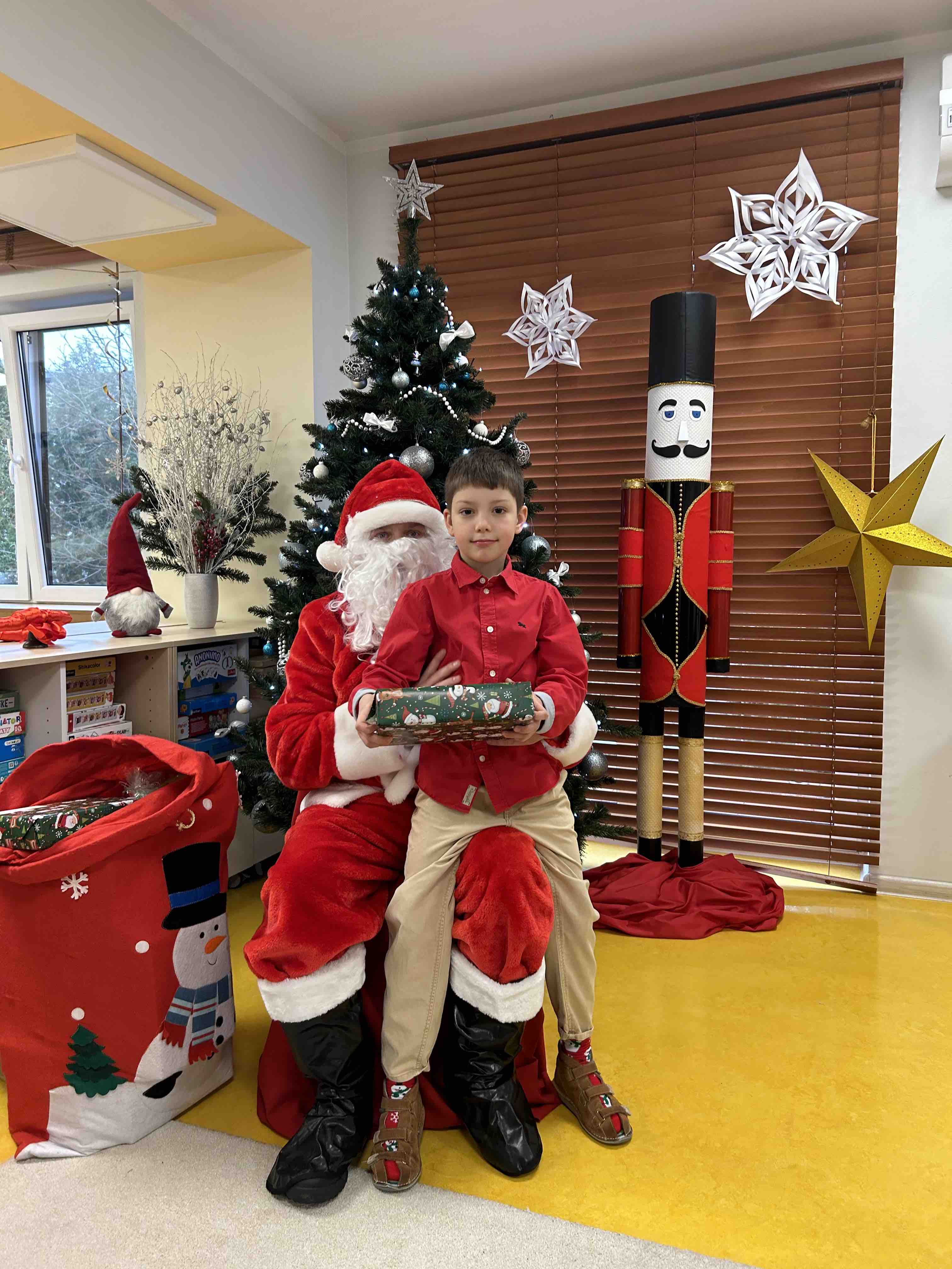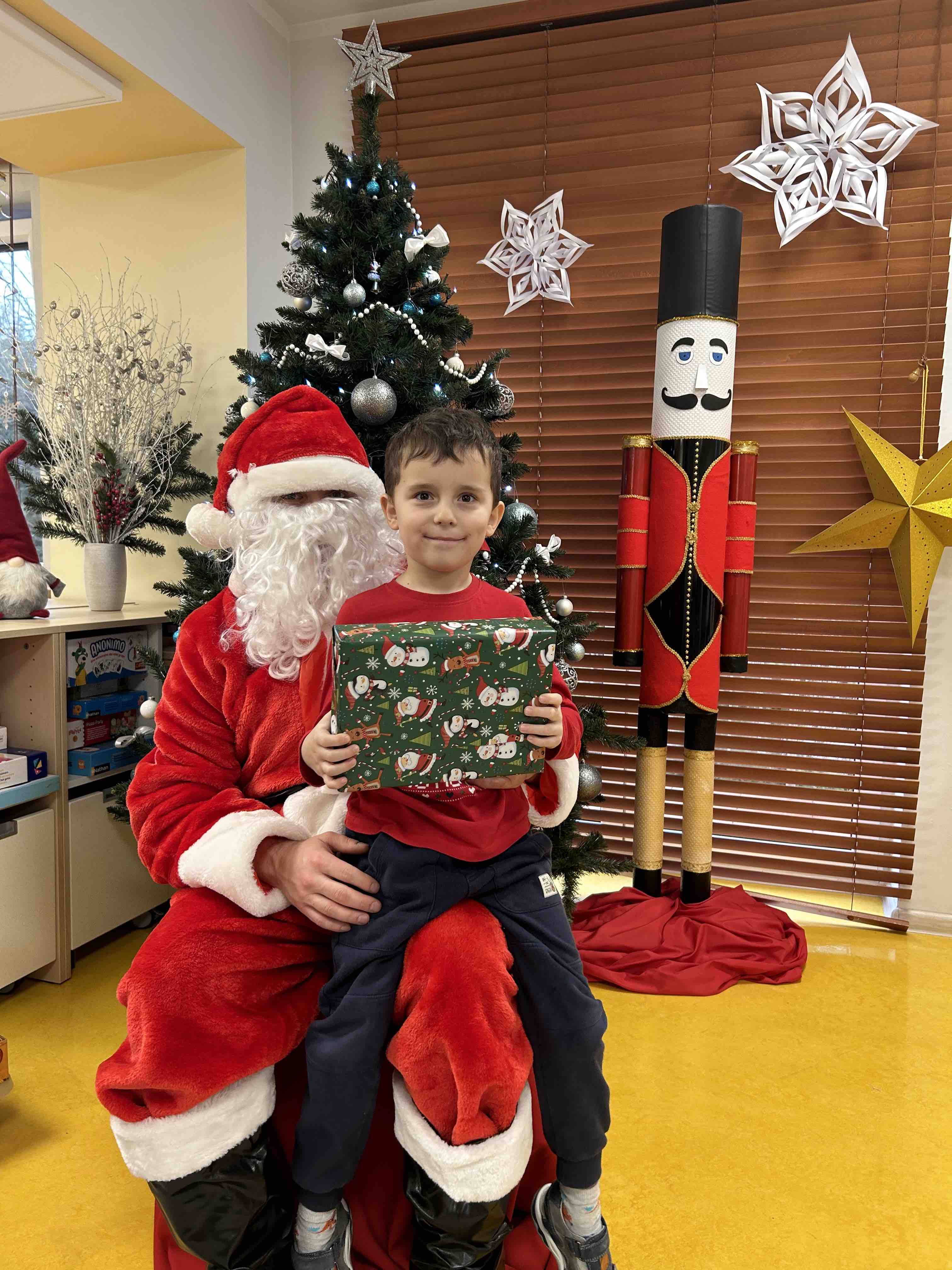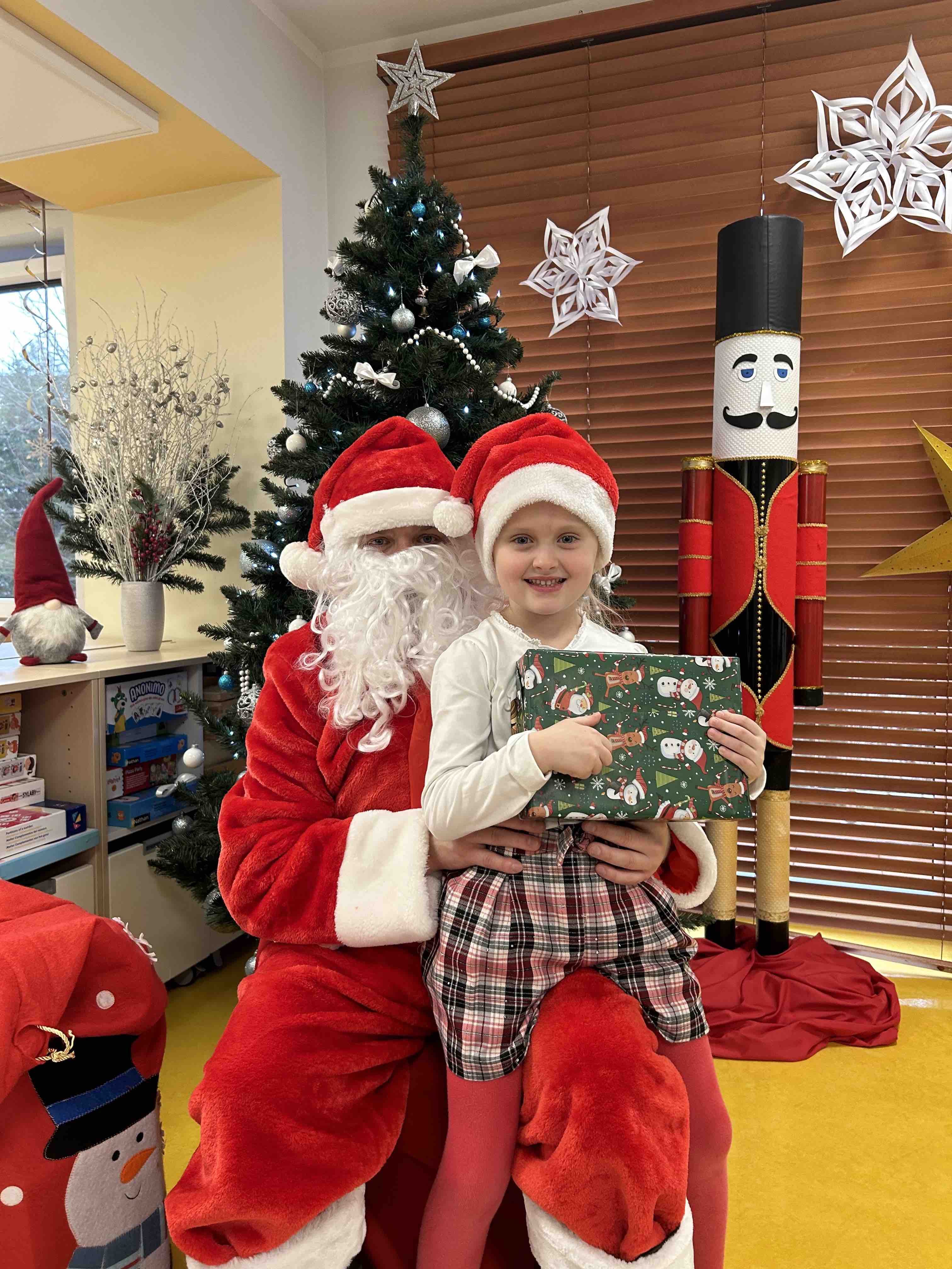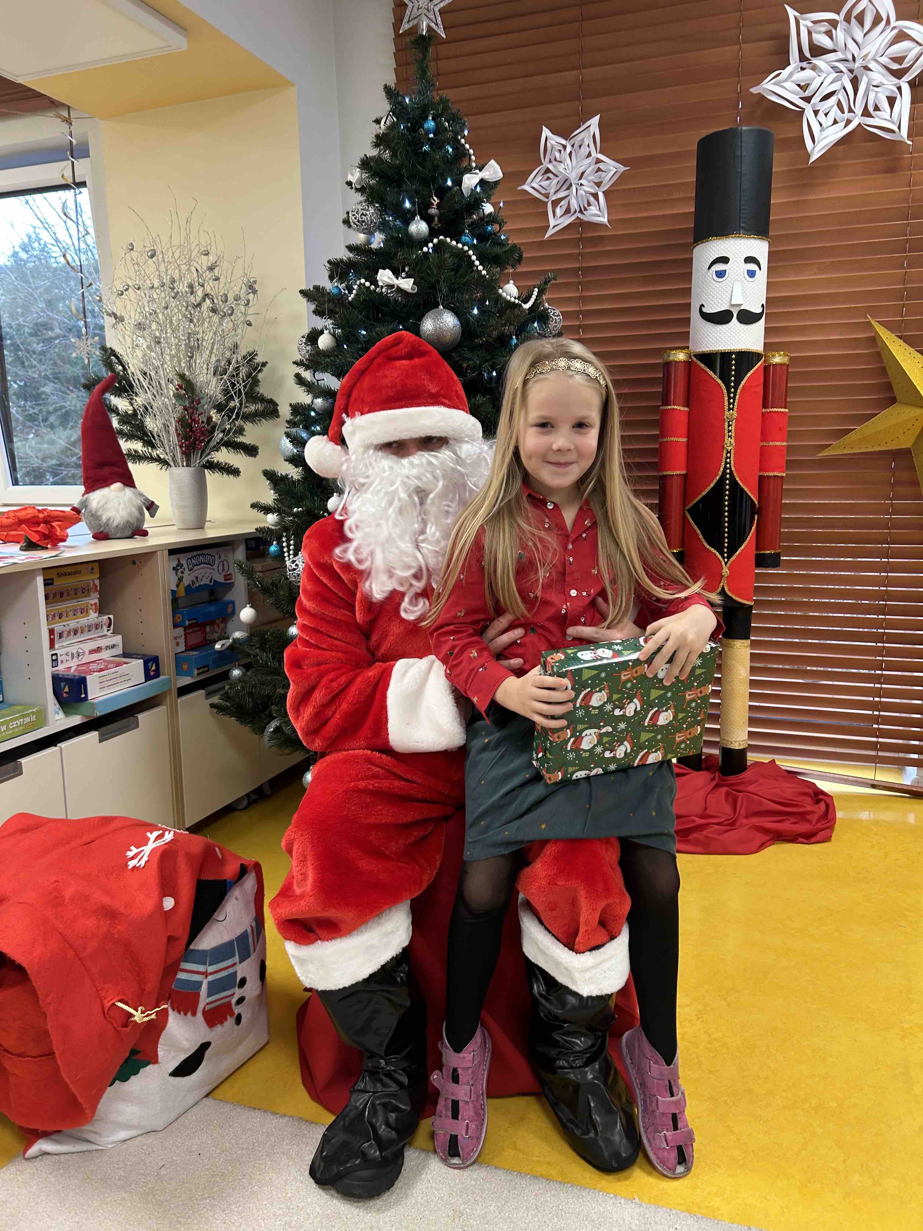 Zanim się zjawił dzieci z grupy chmurek przygotowały dla niego słodką niespodziankę oraz przyozdobiły salę. 6 latki zaprezentowały się śpiewając i tańcząc piosenkę pt. "Mikołaj kochany". Następnie wszystkie dzieci otrzymały prezenty. Niektóre przedszkolaki przygotowały dla Świętego Mikołaja piękne rysunki, które mu wręczyły.