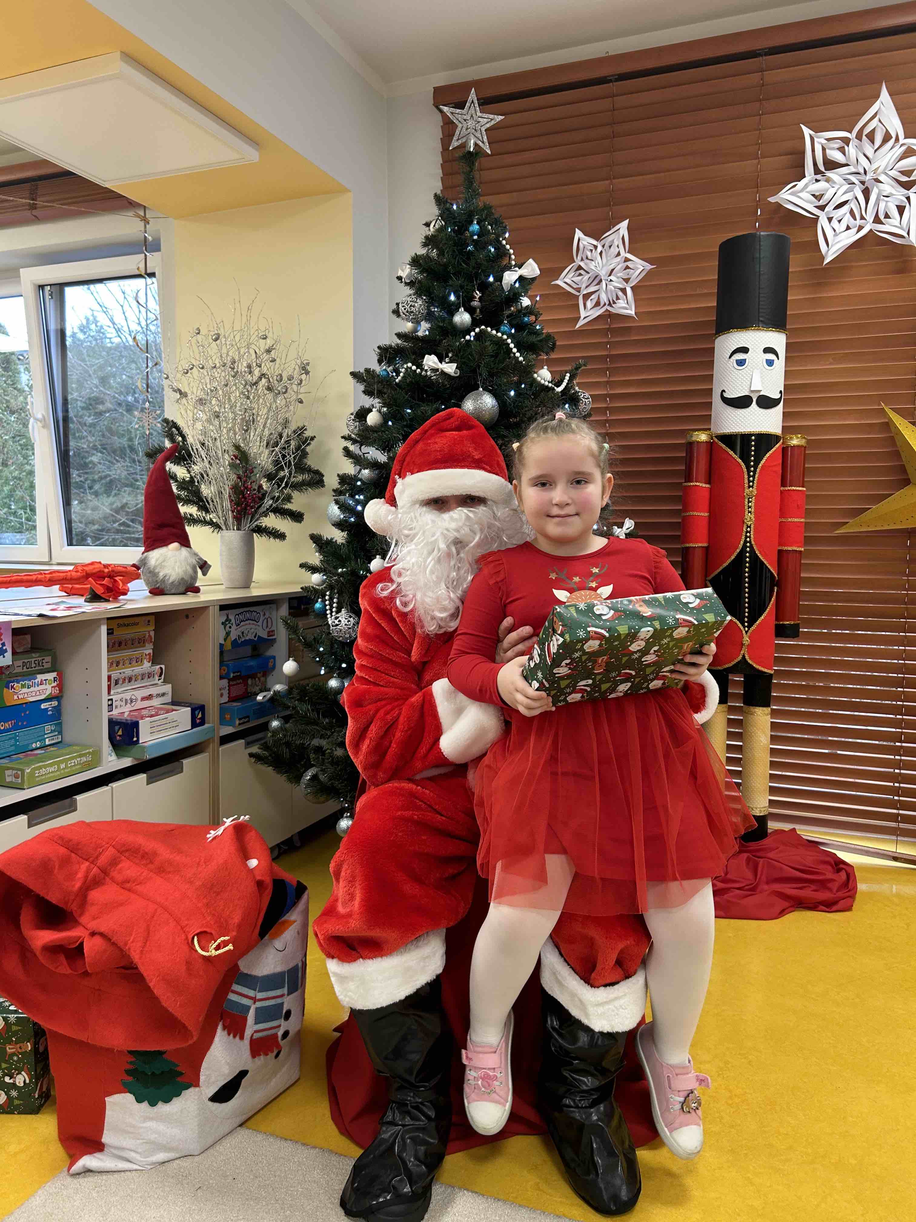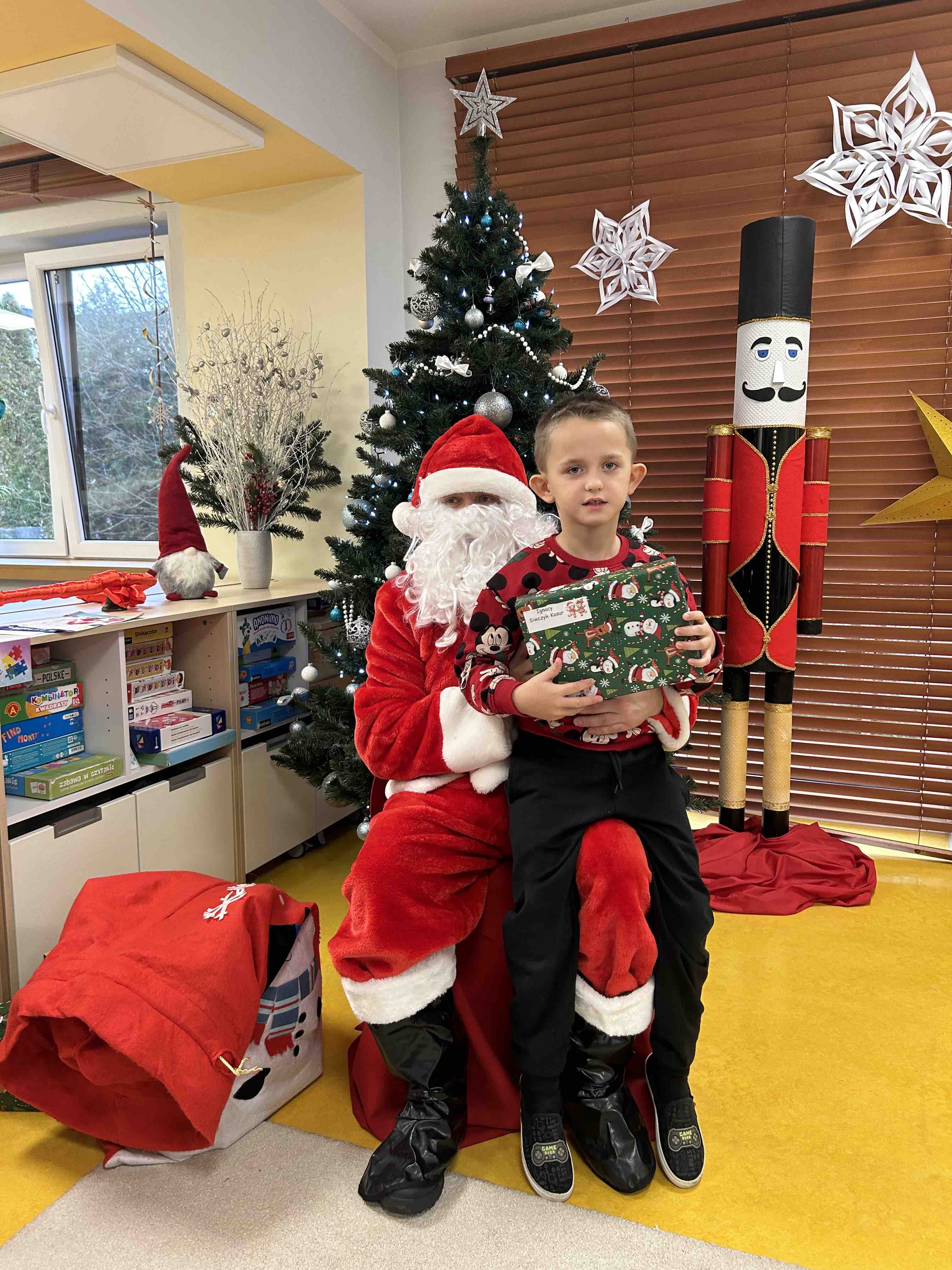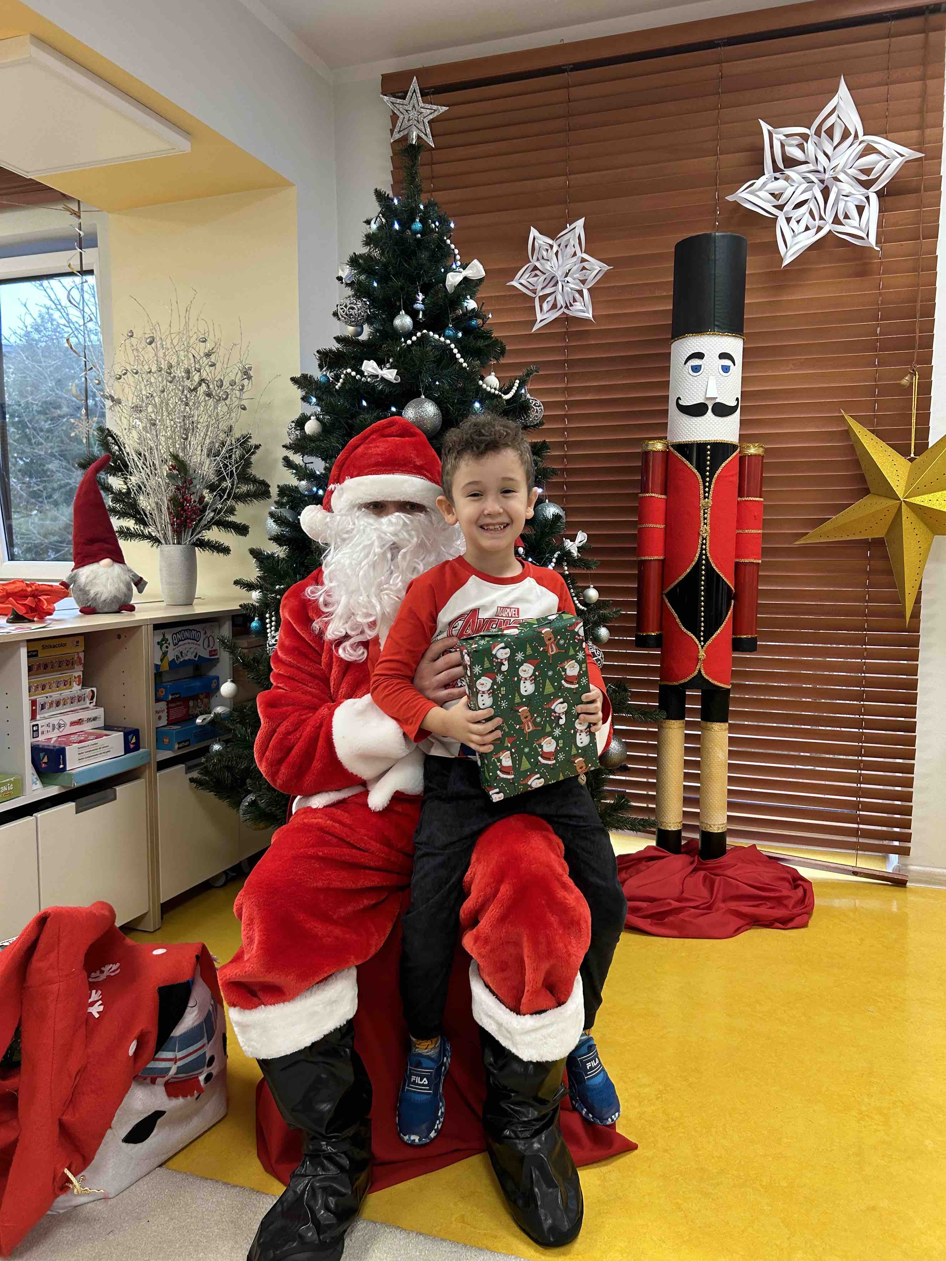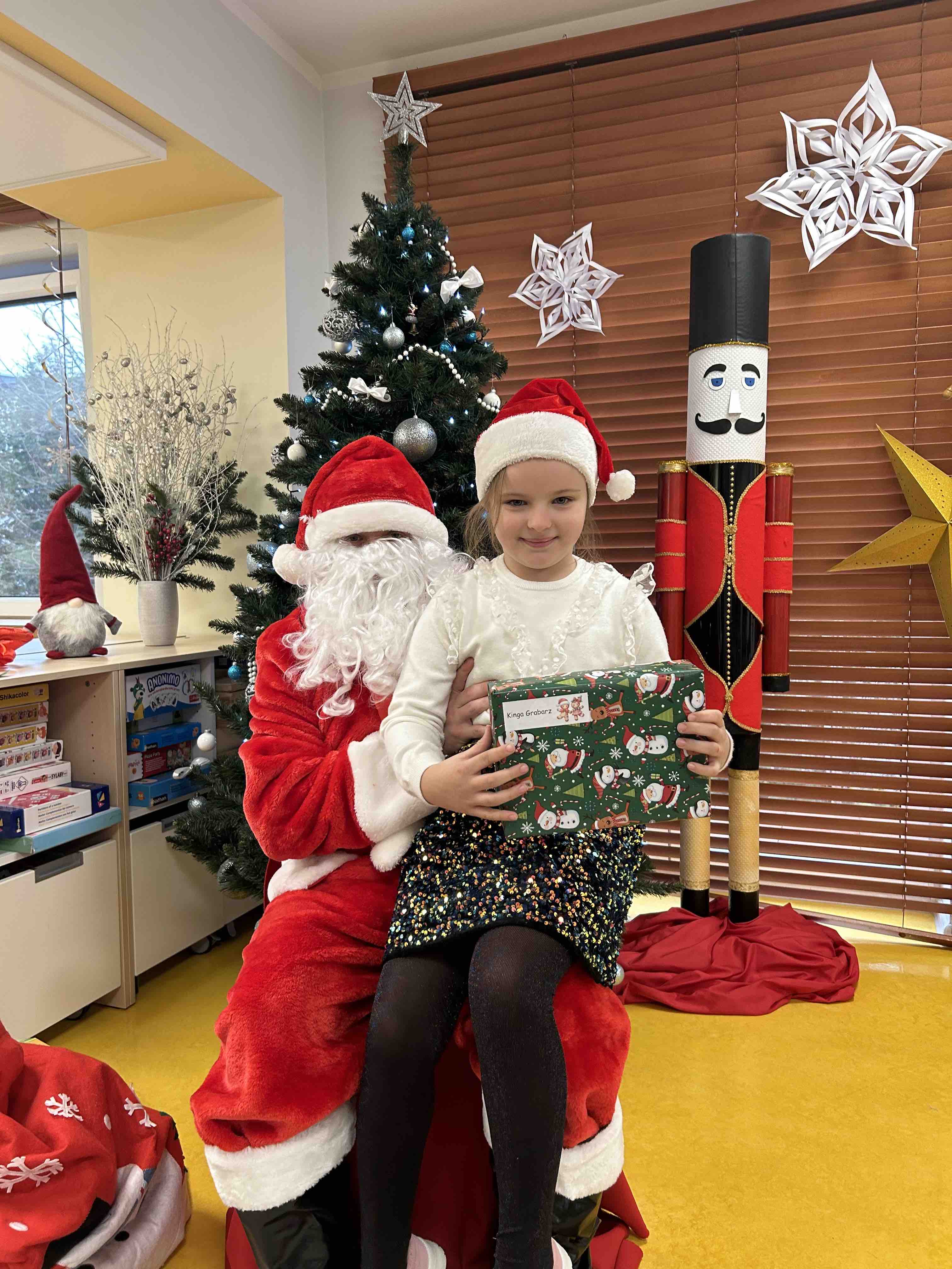 Zanim się zjawił dzieci z grupy chmurek przygotowały dla niego słodką niespodziankę oraz przyozdobiły salę. 6 latki zaprezentowały się śpiewając i tańcząc piosenkę pt. "Mikołaj kochany". Następnie wszystkie dzieci otrzymały prezenty. Niektóre przedszkolaki przygotowały dla Świętego Mikołaja piękne rysunki, które mu wręczyły.