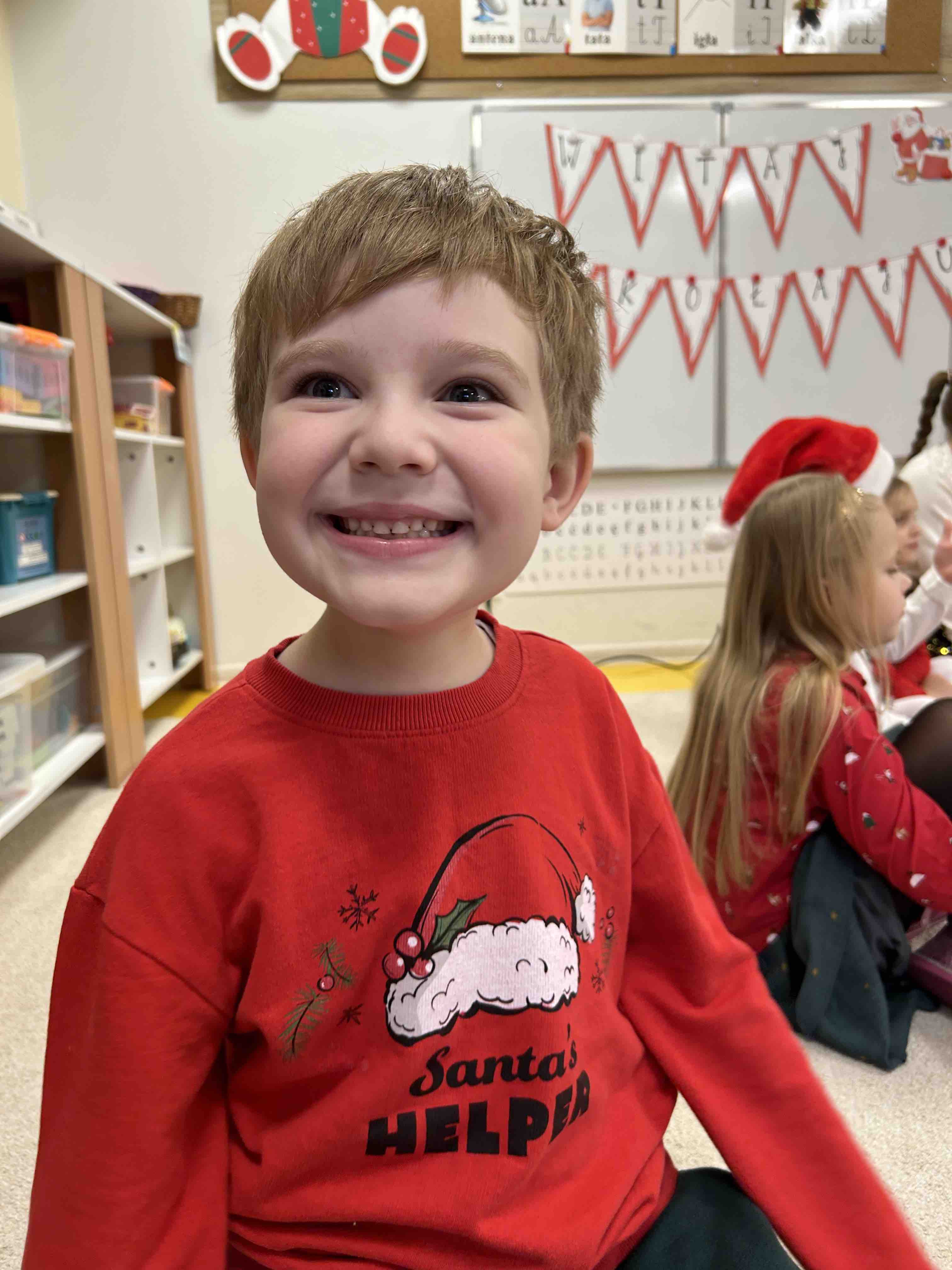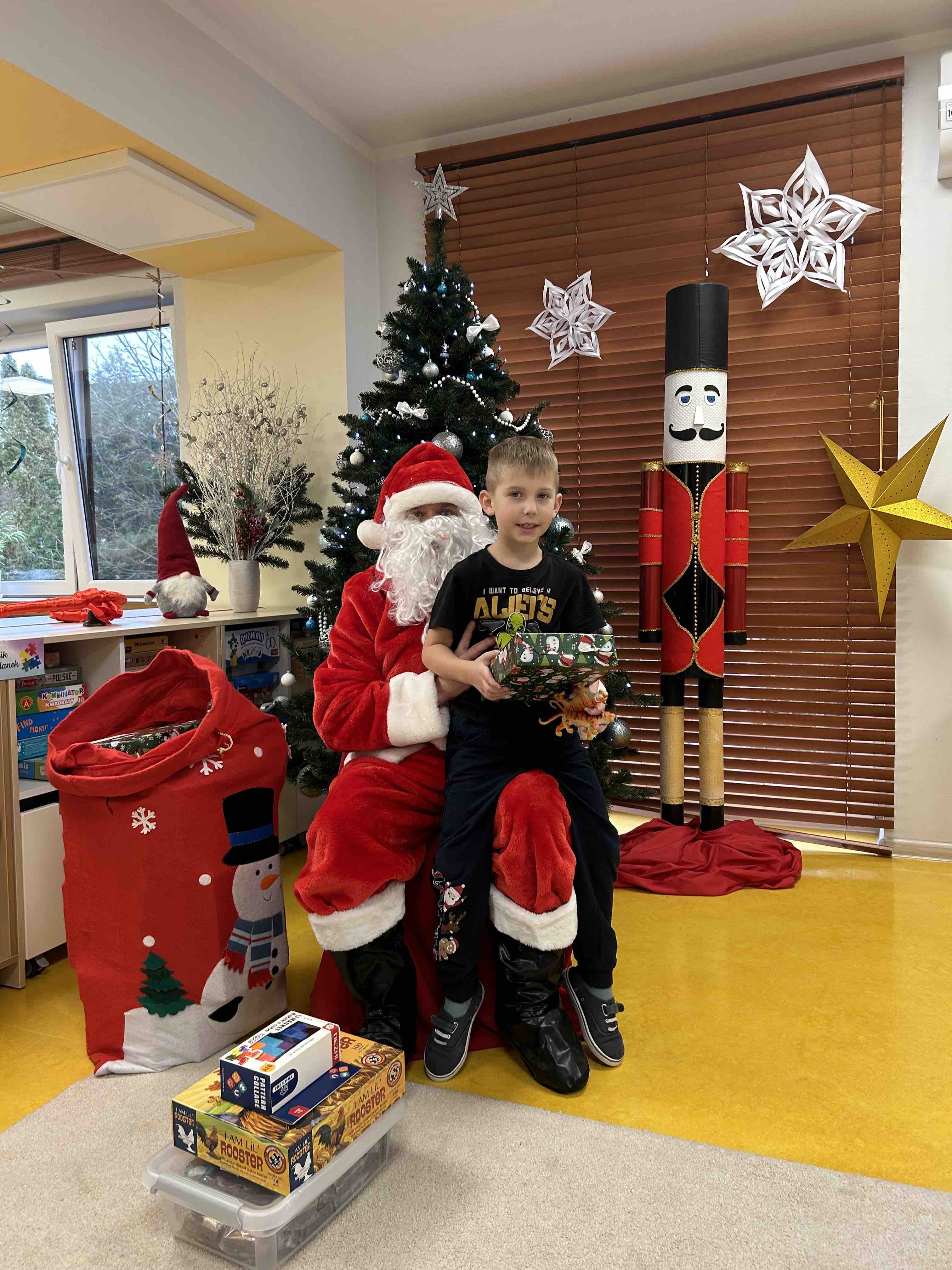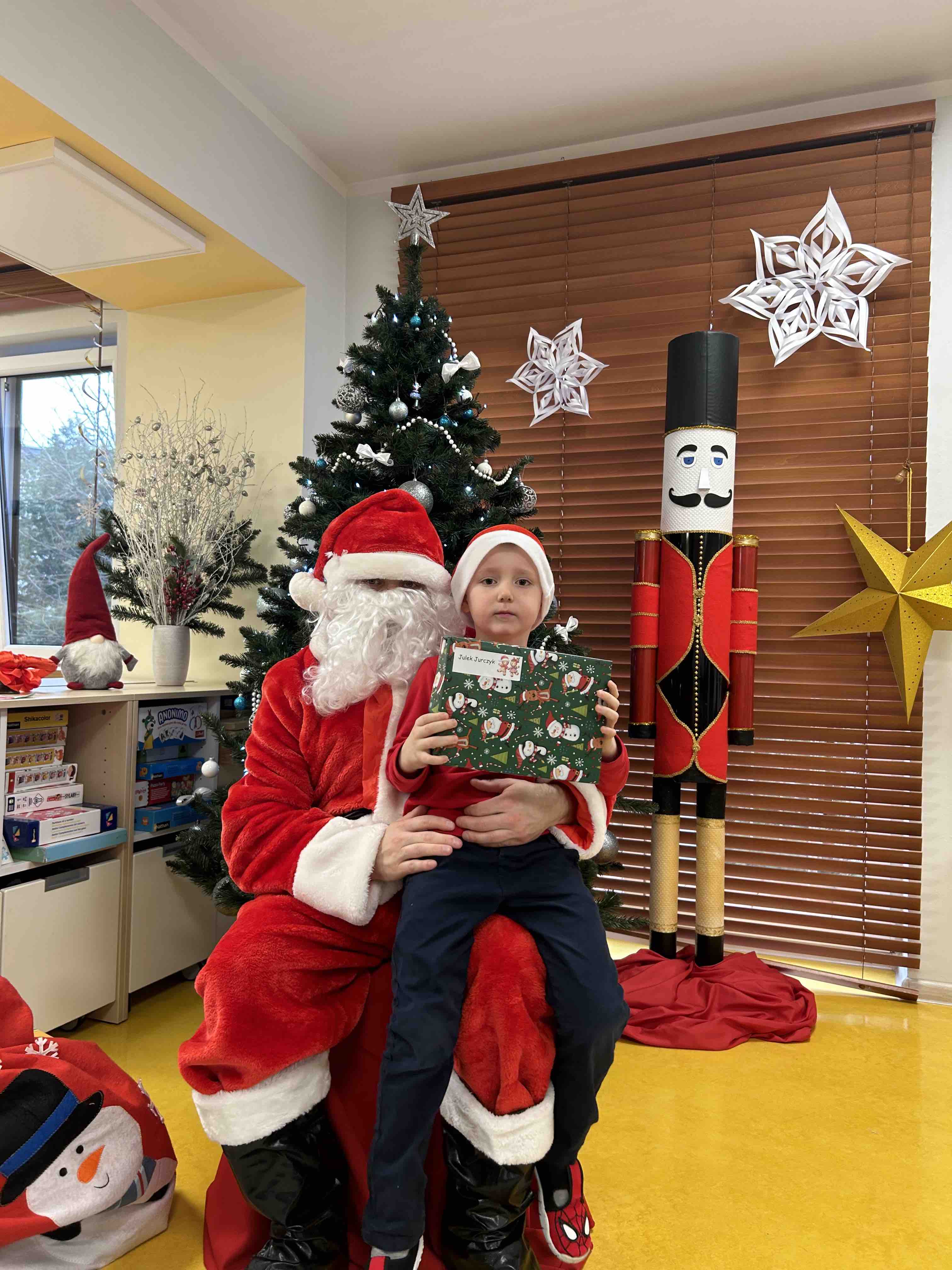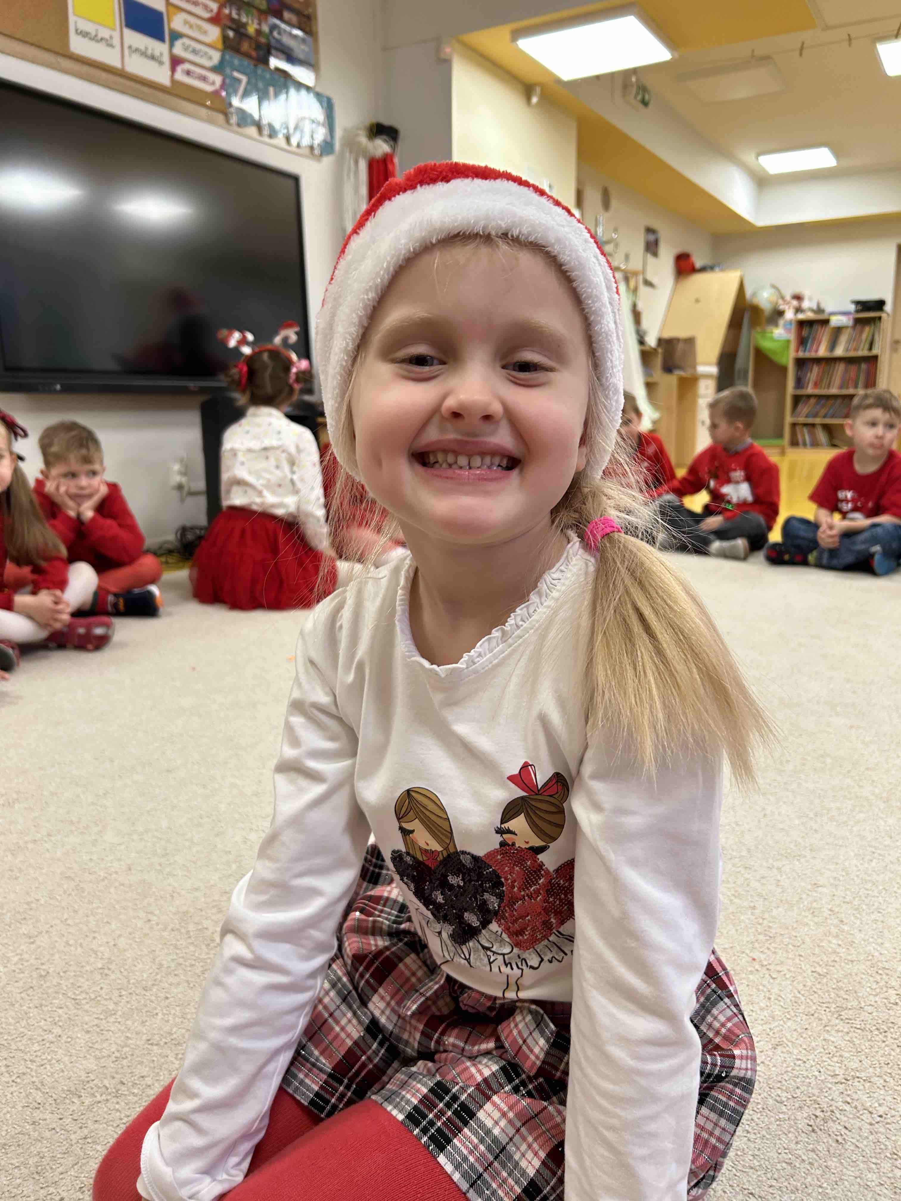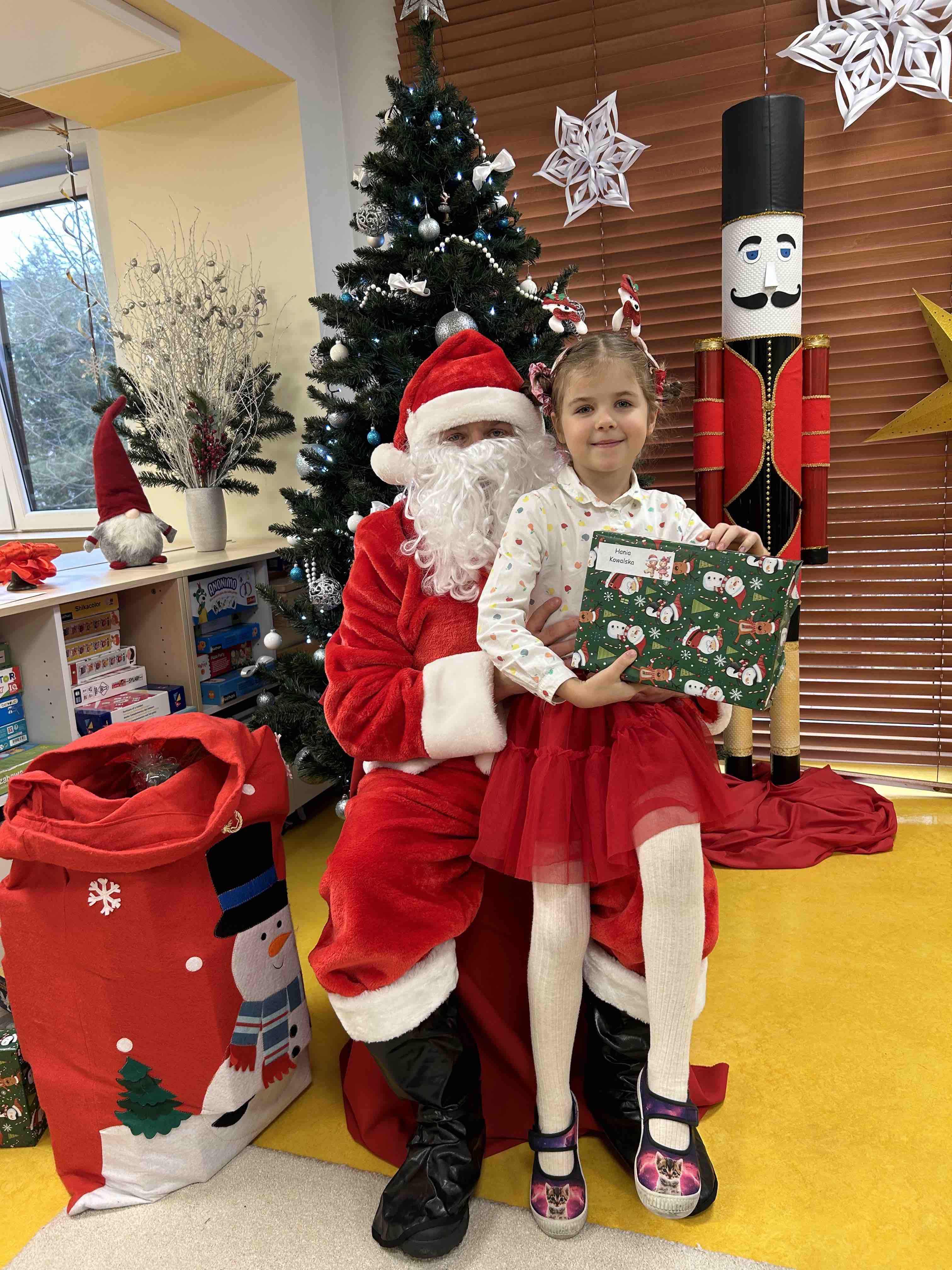 Zanim się zjawił dzieci z grupy chmurek przygotowały dla niego słodką niespodziankę oraz przyozdobiły salę. 6 latki zaprezentowały się śpiewając i tańcząc piosenkę pt. "Mikołaj kochany". Następnie wszystkie dzieci otrzymały prezenty. Niektóre przedszkolaki przygotowały dla Świętego Mikołaja piękne rysunki, które mu wręczyły.