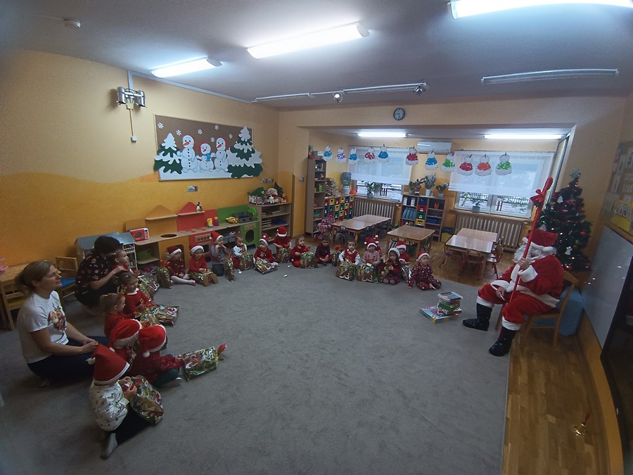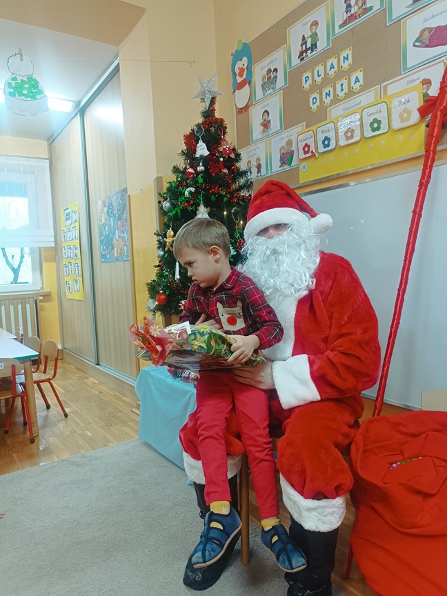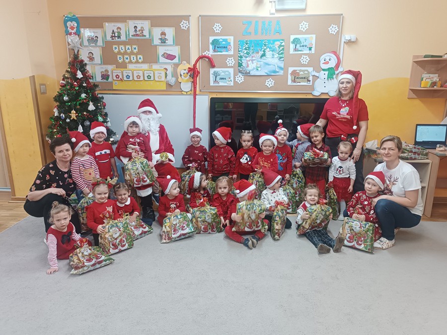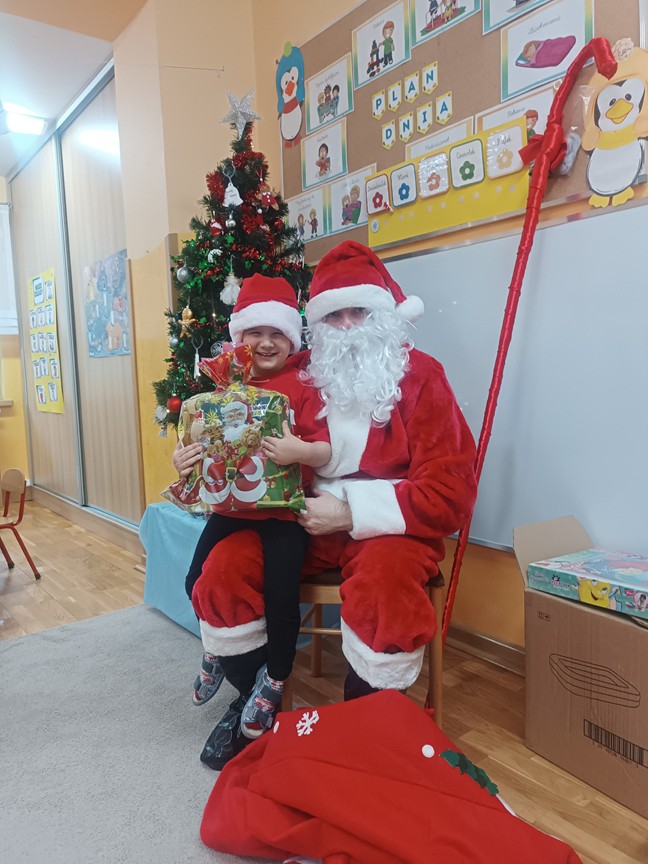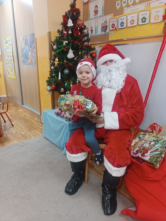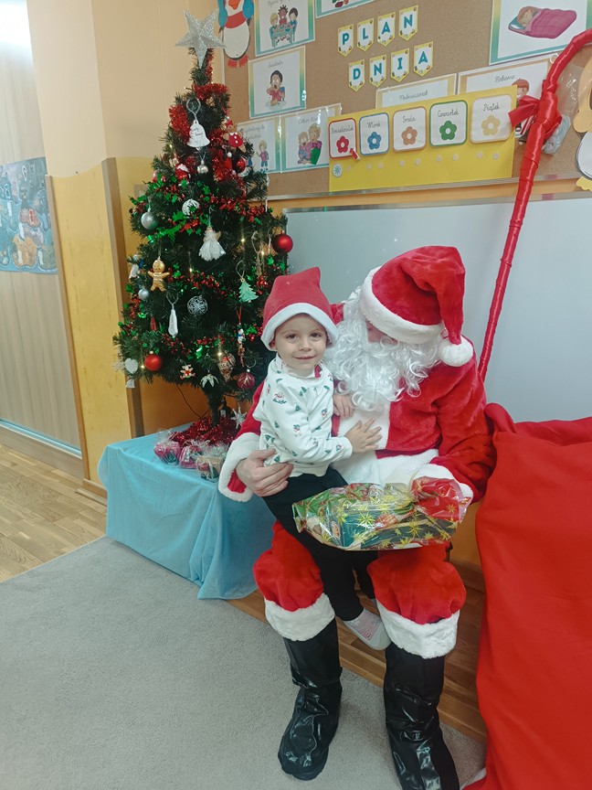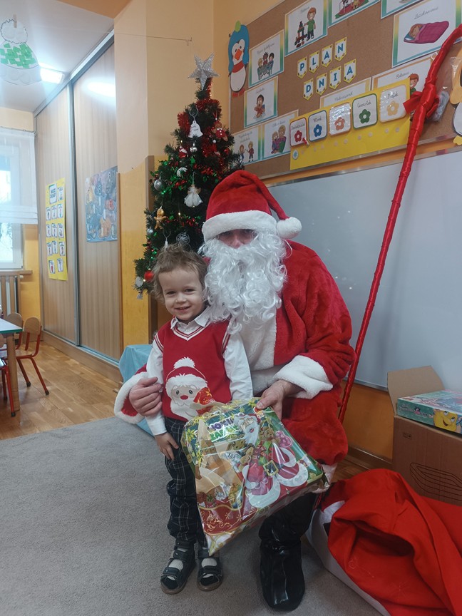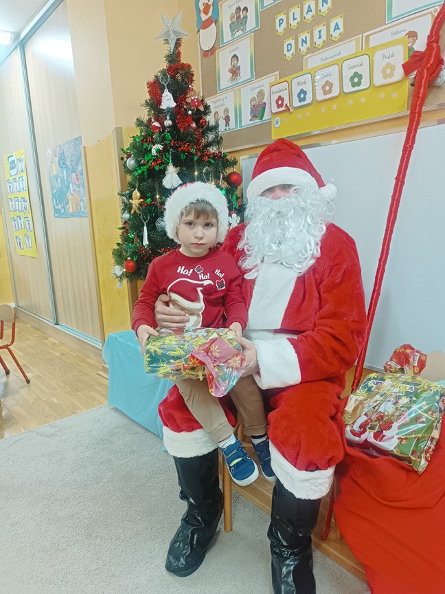 5 grudnia nasze przedszkole odwiedził bardzo miły i długo oczekiwany gość. Miał czerwony strój, długą, białą brodę i dźwigał na plecach bardzo ciężki worek, a w nim prezenty. To nie mógł być nikt inny tylko- MIKOŁAJ. Pomimo braku białego puchu, jak co roku przybył na czas. Spotkanie z długo wyczekiwanym gościem przebiegało w bardzo radosnej i przyjaznej atmosferze. Święty Mikołaj obdarował wszystkie dzieci wspaniałymi paczkami. Jak co roku dzieci miały zrobione z Mikołajem pamiątkowe zdjęcia. Na twarzach dzieci malowała się wielka radość i przejęcie, a także nadzieja na kolejne spotkanie.