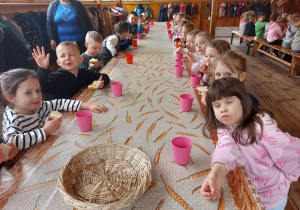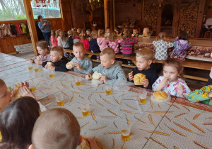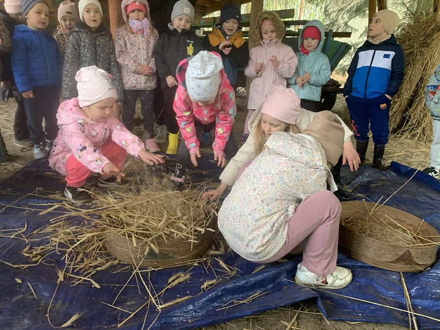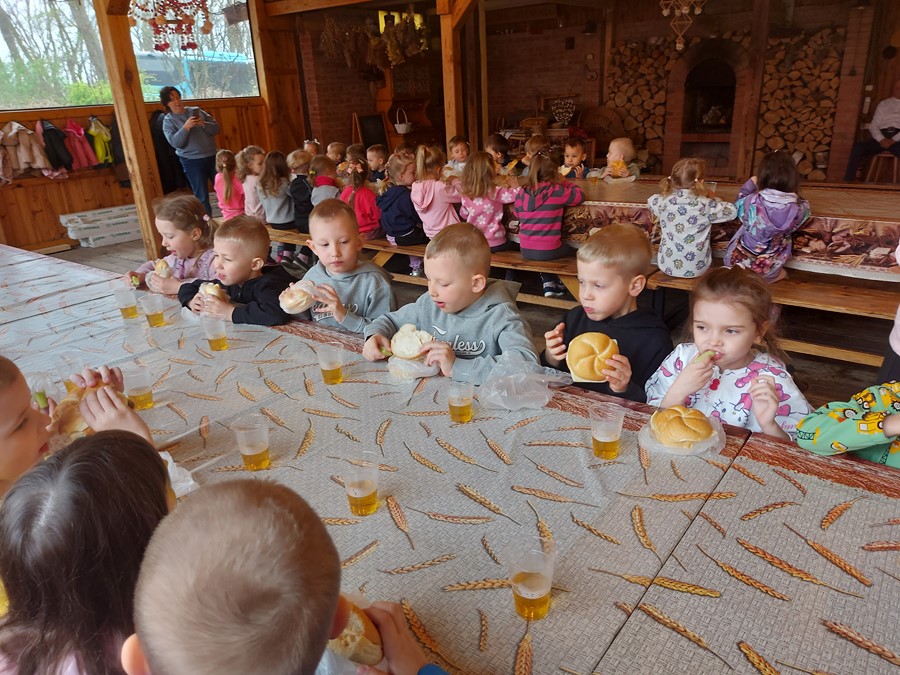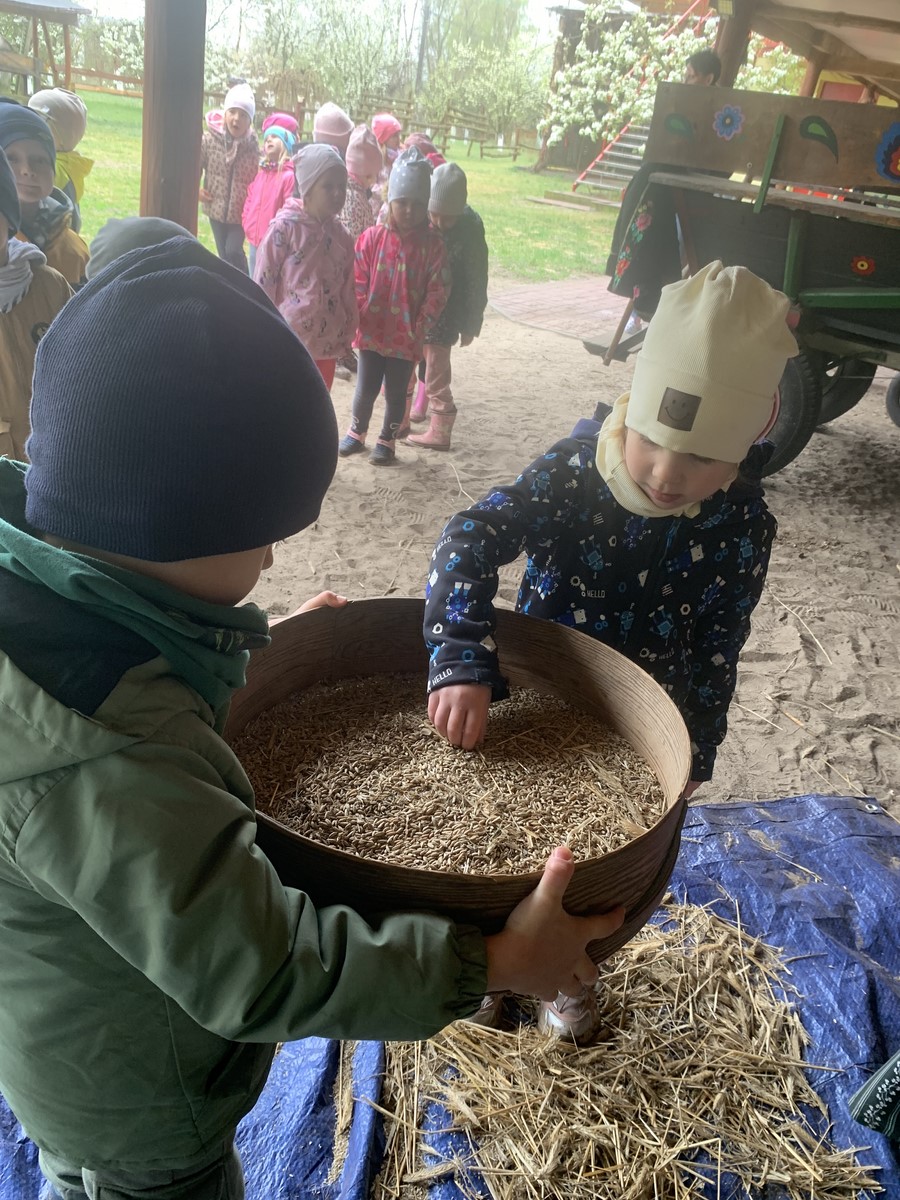 W dniu 20 kwietnia dzieci z grup „Kropelki” i „Promyczki” wybrały się na wyjątkową wycieczkę do zagrody edukacyjnej w Konarzewie, gdzie uczestniczyły w warsztatach pt. „Od ziarenka do bochenka”.