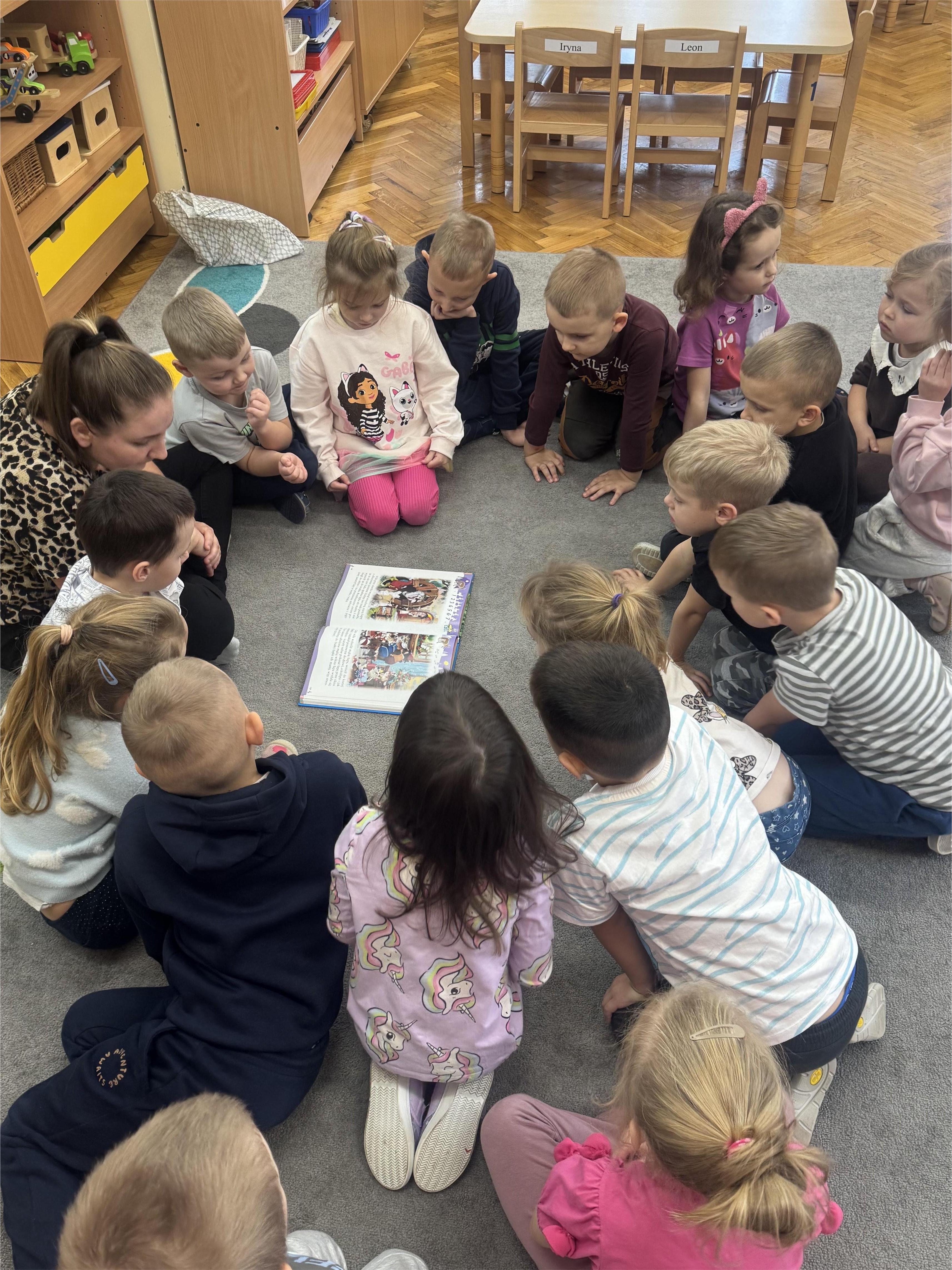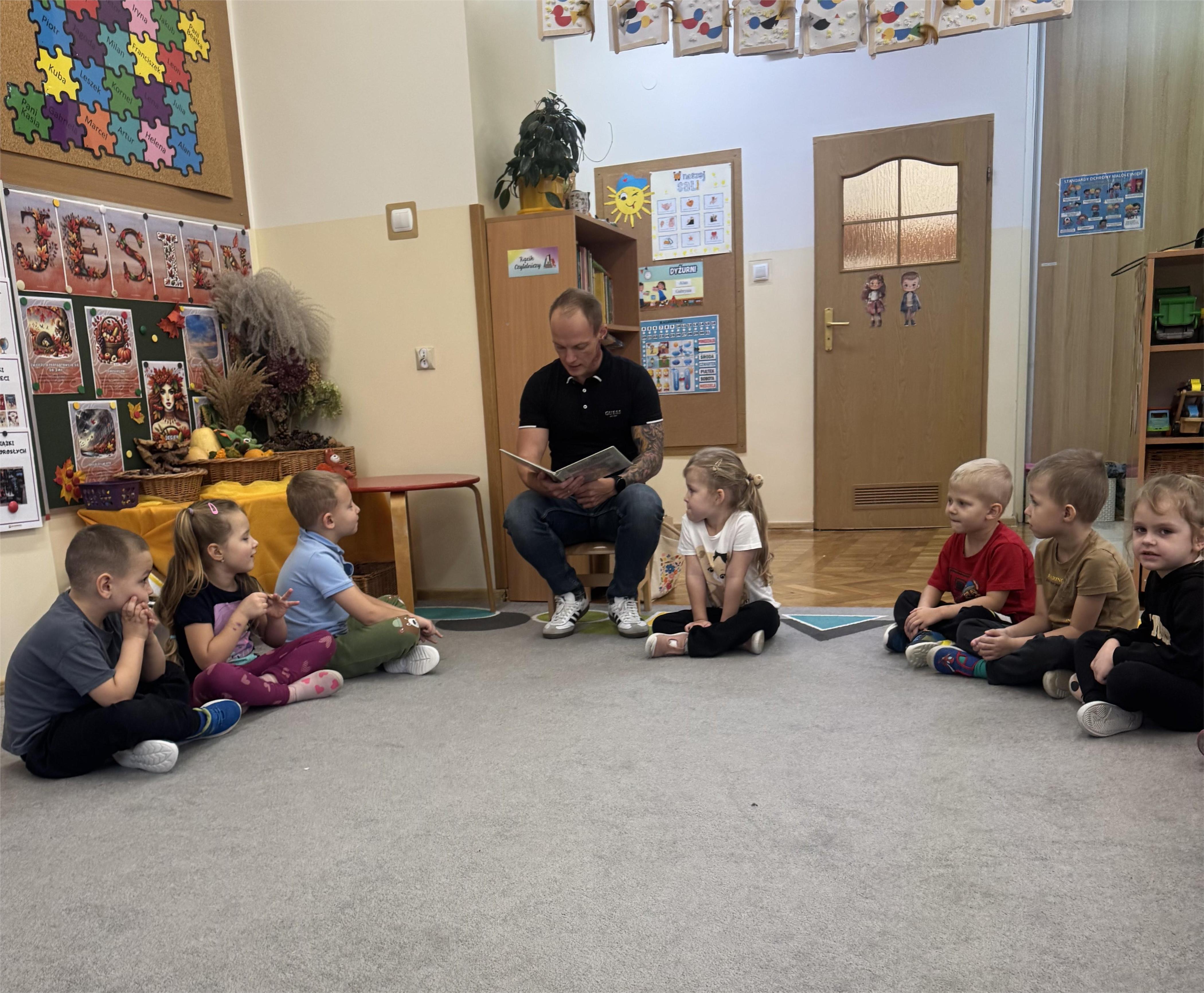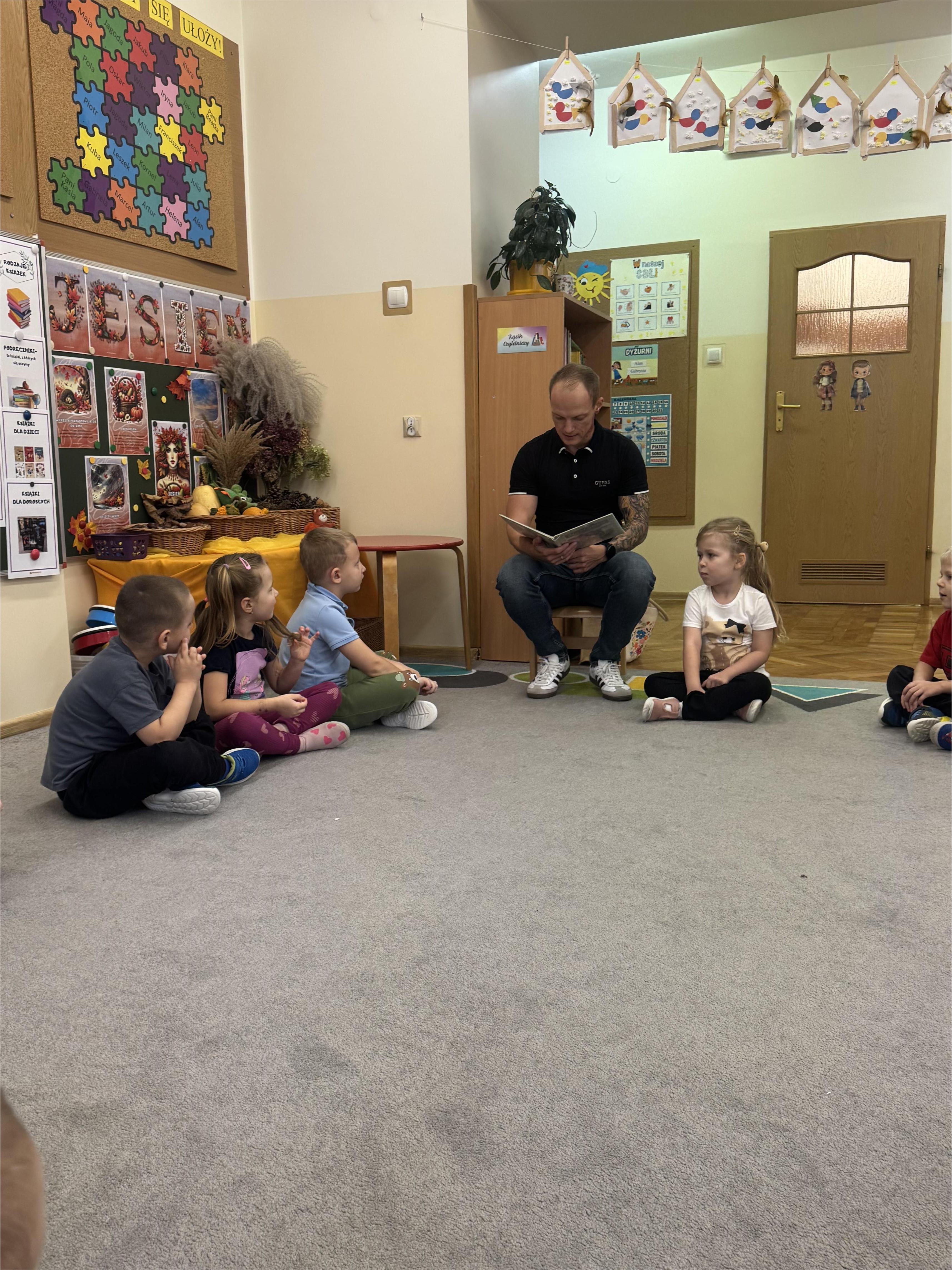 Jako pierwszy odwiedził nas tata Poli, który przeniósł dzieci w magiczny świat przygód bajkowych bohaterów Kociego domku Gabi. Jego pełna ciepła i zaangażowania interpretacja sprawiła, że przedszkolaki słuchały z ogromnym zainteresowaniem. Dzieci chętnie dzieliły się swoimi spostrzeżeniami, opowiadały o własnych książkach i zadawały pytania dotyczące wysłuchanej historii.