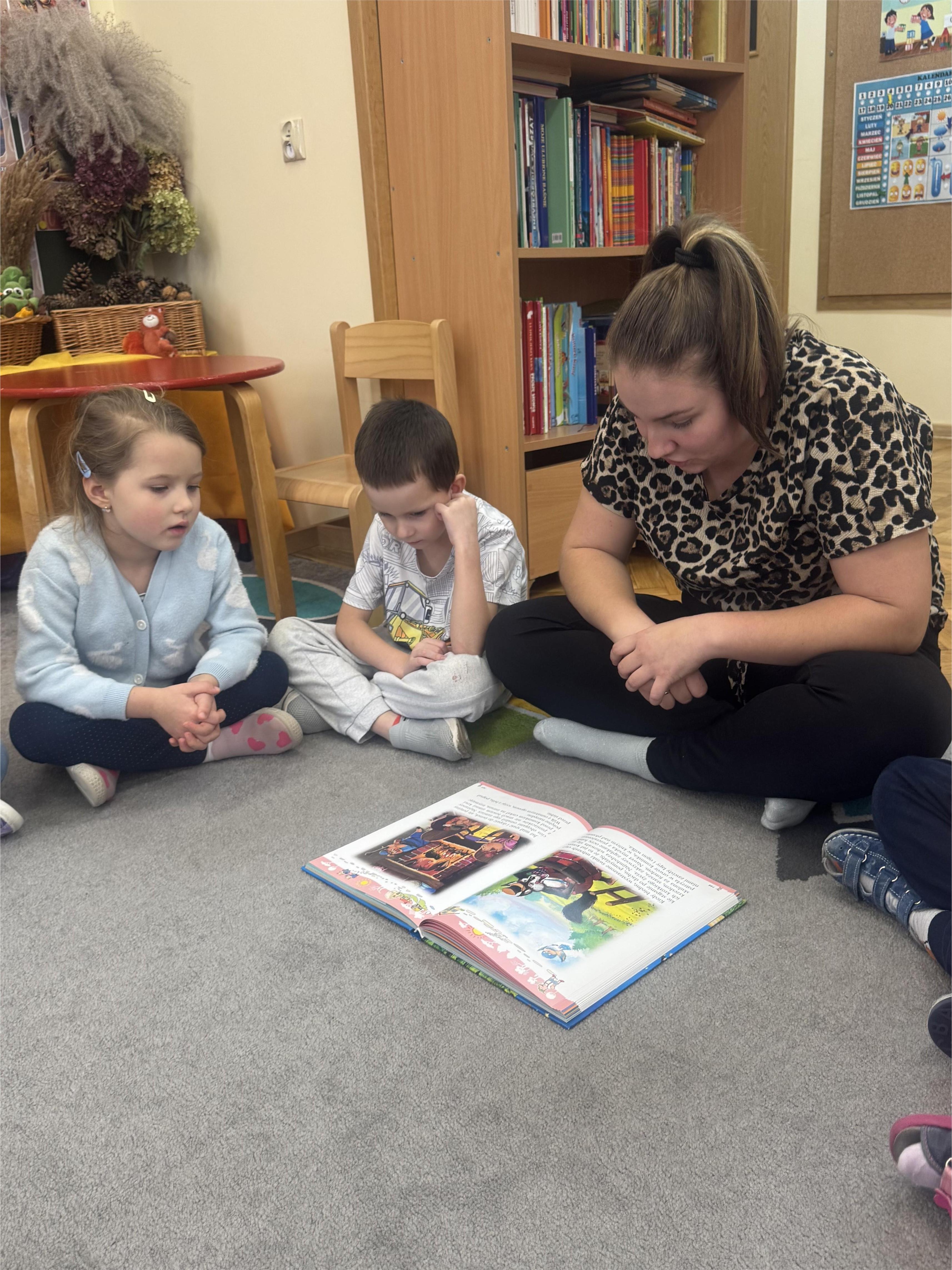 Kilka dni później gościliśmy mamę Oskara, która również przeniosła dzieci w cudowny, literacki świat. Jej czytanie wywołało na twarzach przedszkolaków wiele emocji - od uśmiechu po zadumę. Dzieci aktywnie uczestniczyły w rozmowie, z entuzjazmem opowiadały, co najbardziej podobało im się w bajce i chętnie ilustrowały jej bohaterów.